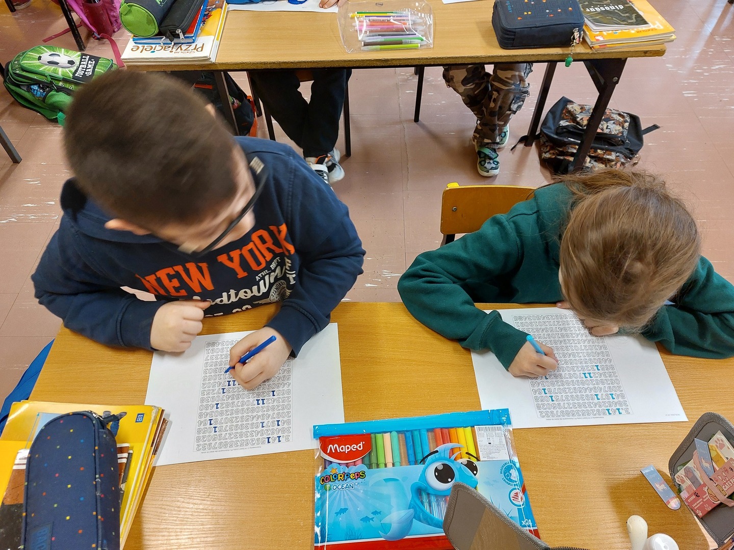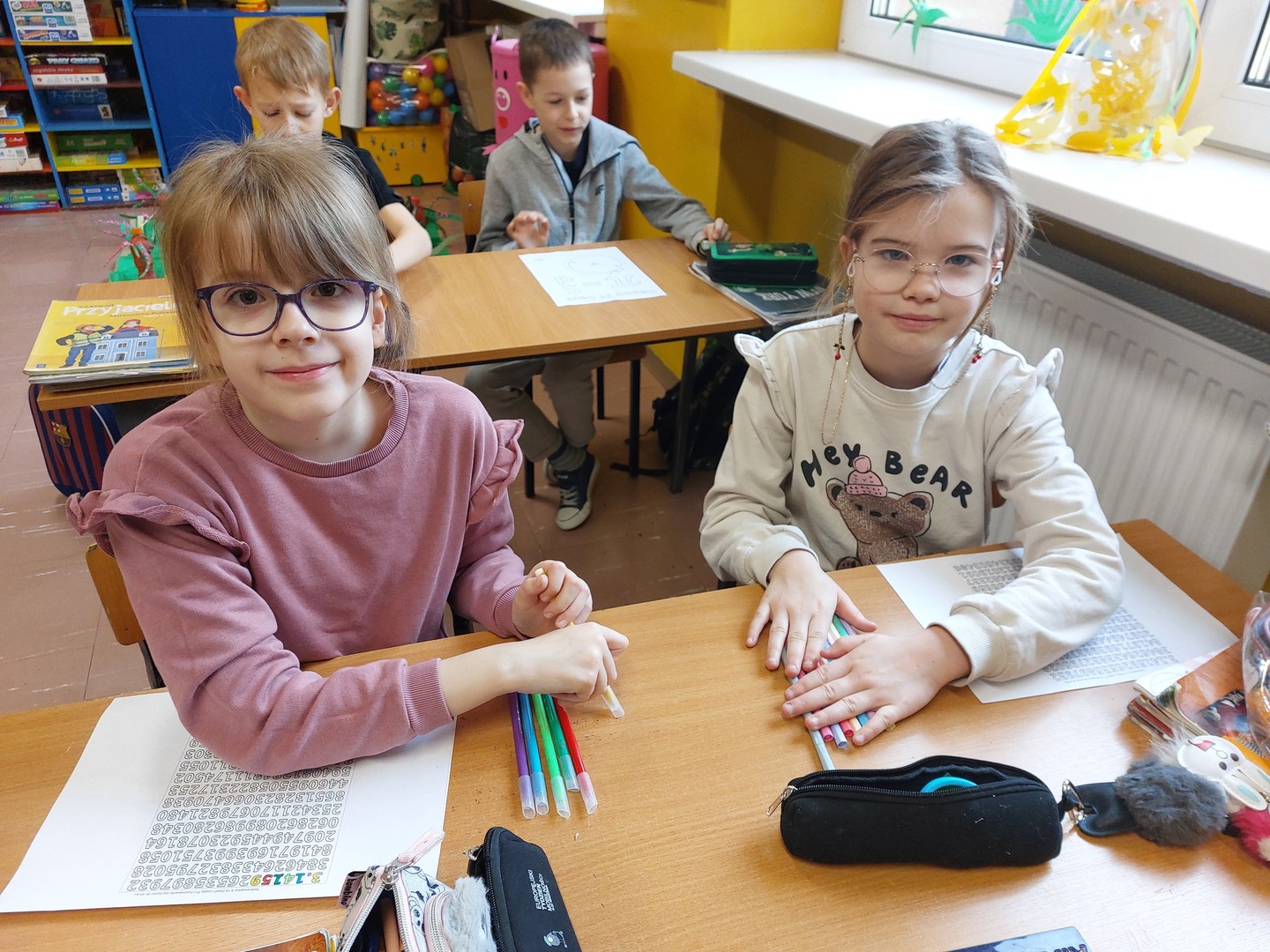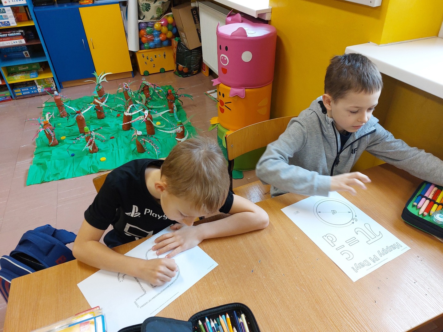 Młodsi uczniowie wykonali prace plastyczne z liczbą Pi oraz dowiedzieli się, że Ludolfina to liczba nieskończona. Drugoklasiści byli zaskoczeni, że takie liczby istnieją.