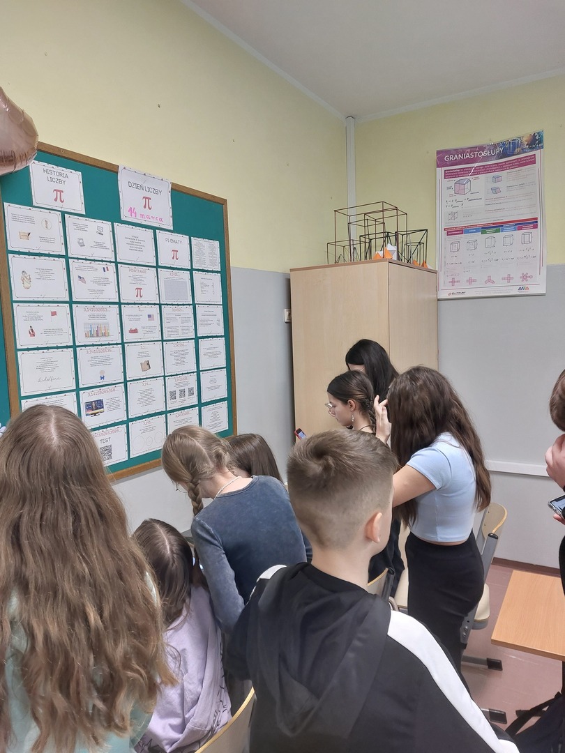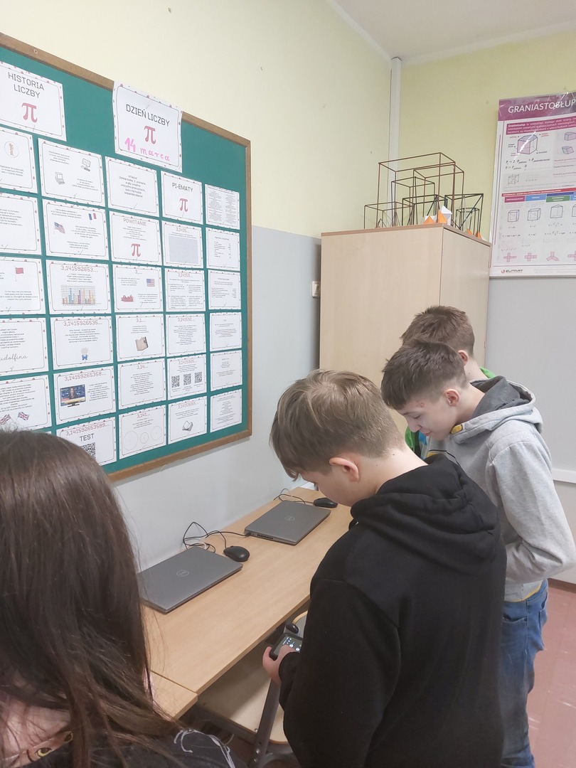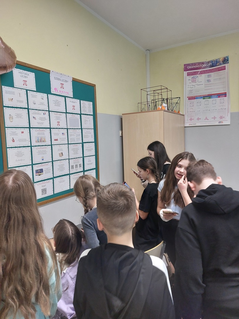 Uczniowie klas piątych i szóstych uczestniczyli w mini quzie o liczbie Pi. Skanowali kod QR i na podstawie informacji umieszczonych na gazetce klasowej w Sali 210 poznali ciekawostki o tej niezwykłej liczbie. Uczniowie, którzy najlepiej rozwiązali quiz otrzymali oceny z matematyki.