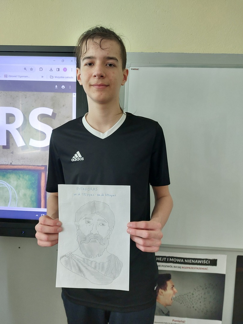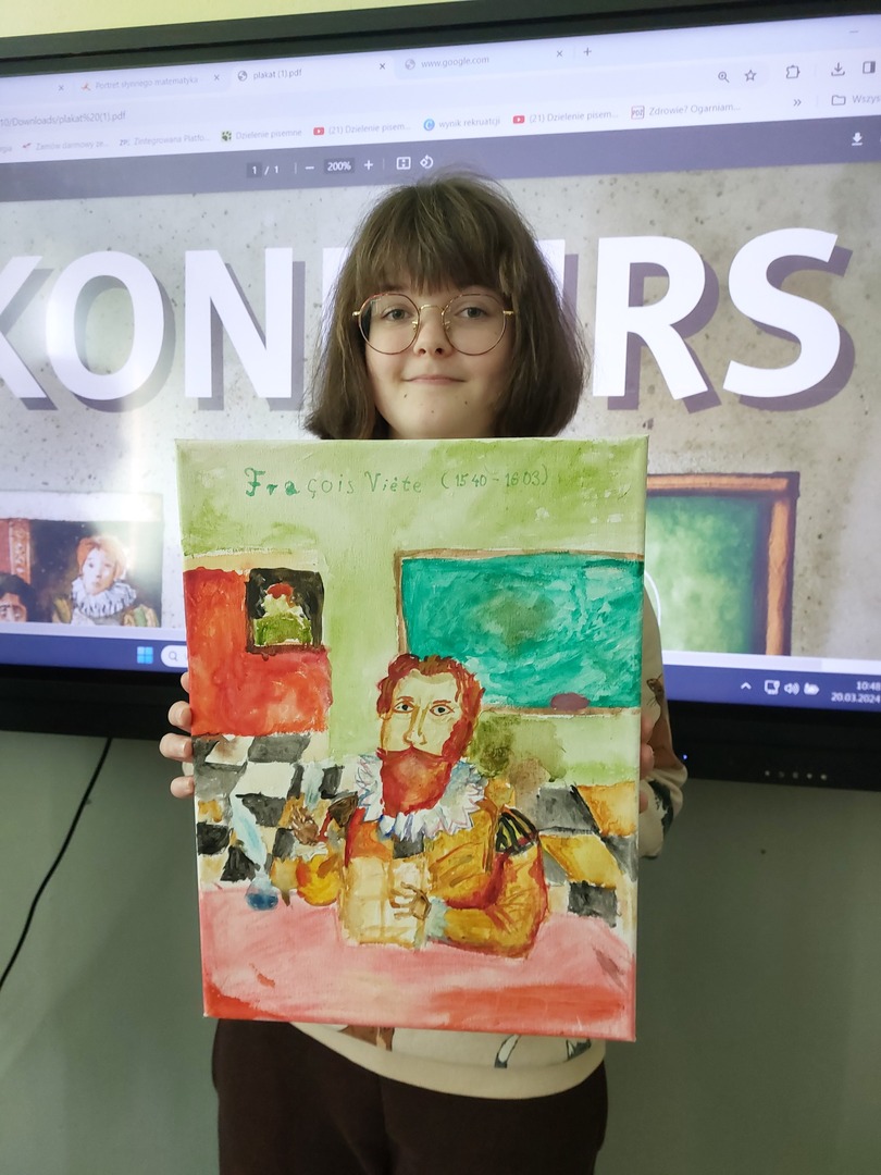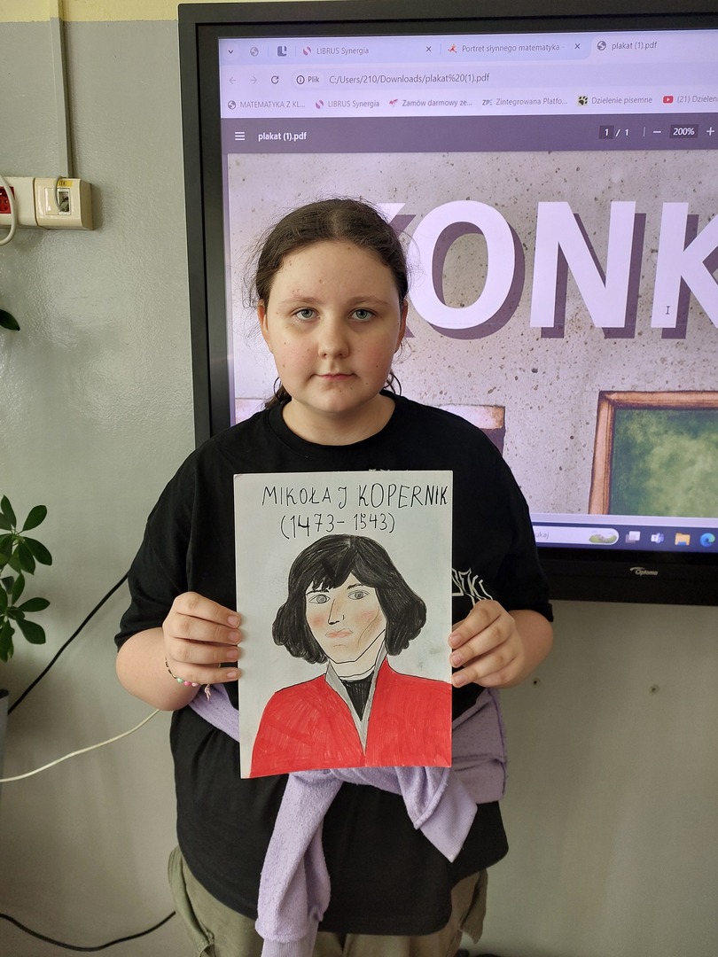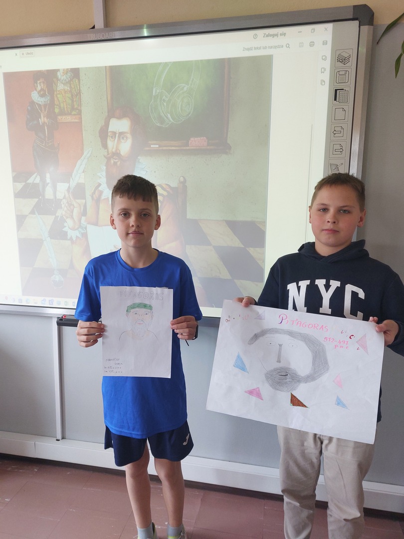 Dodatkowo, w ramach obchodów dnia matematyki 18 uczniów klas IV - VI wykonało piękne portrety słynnych matematyków. Prace zostały wysłane do organizatora konkursu, a z utworzonych kopii zostanie utworzona wystawa.