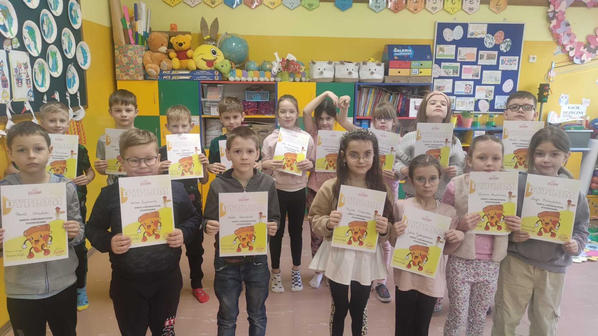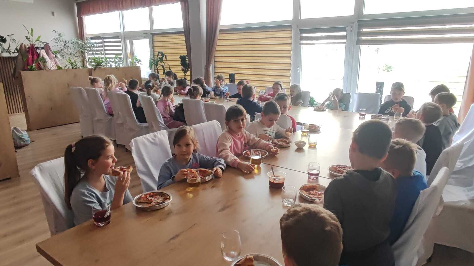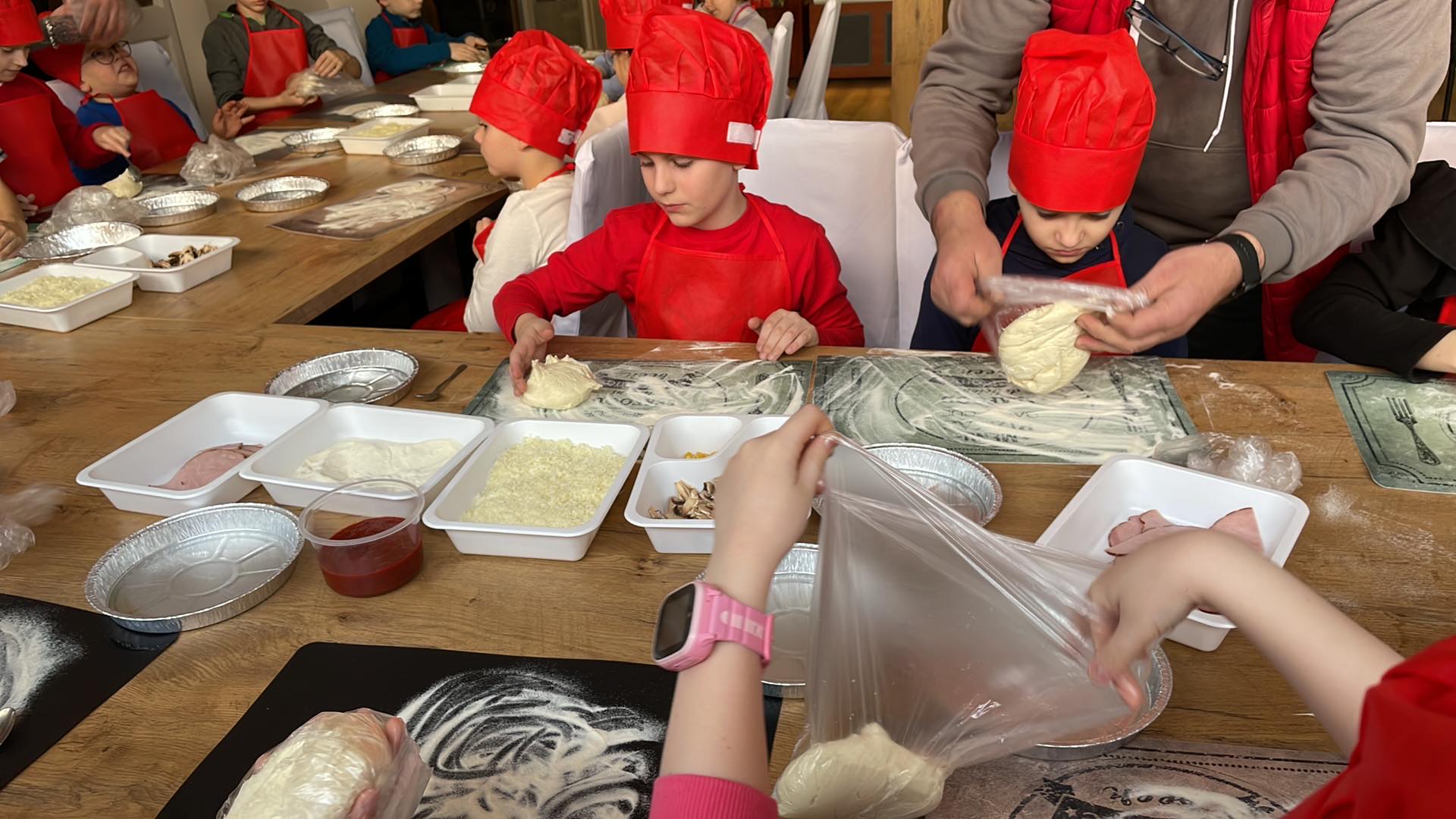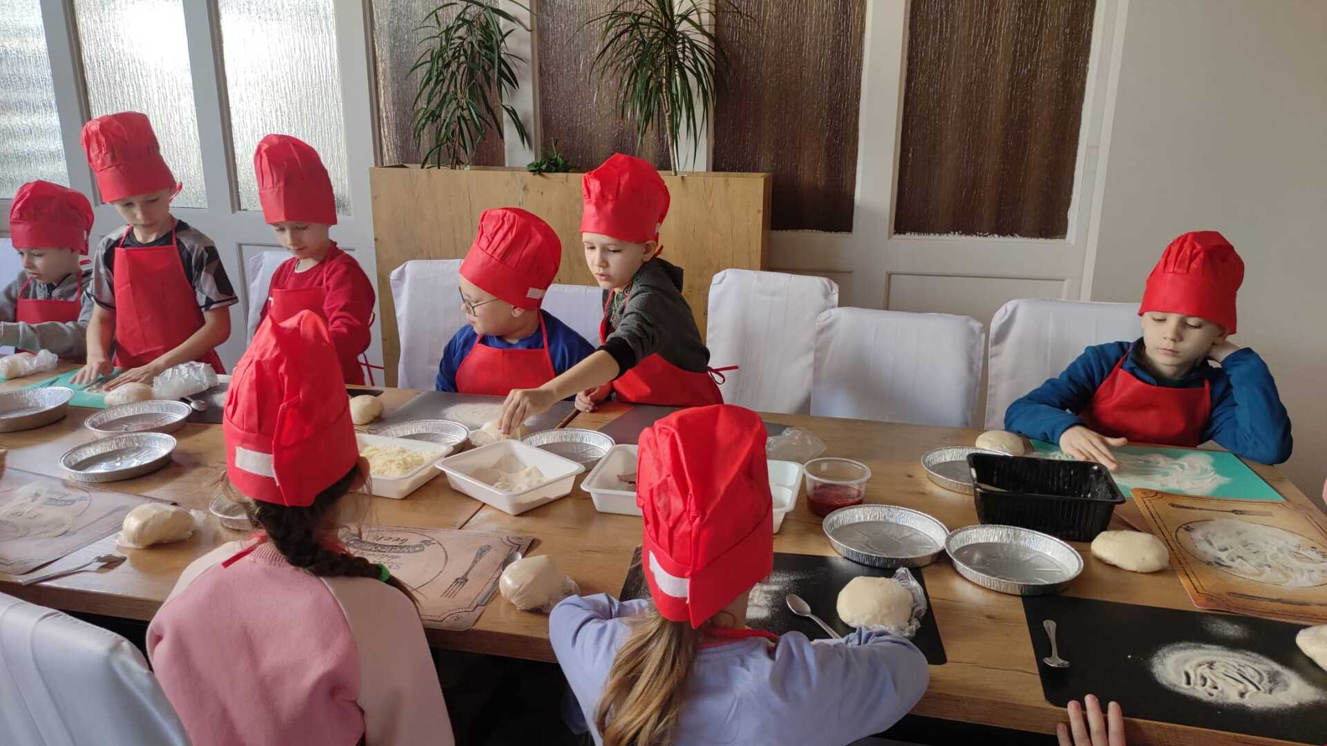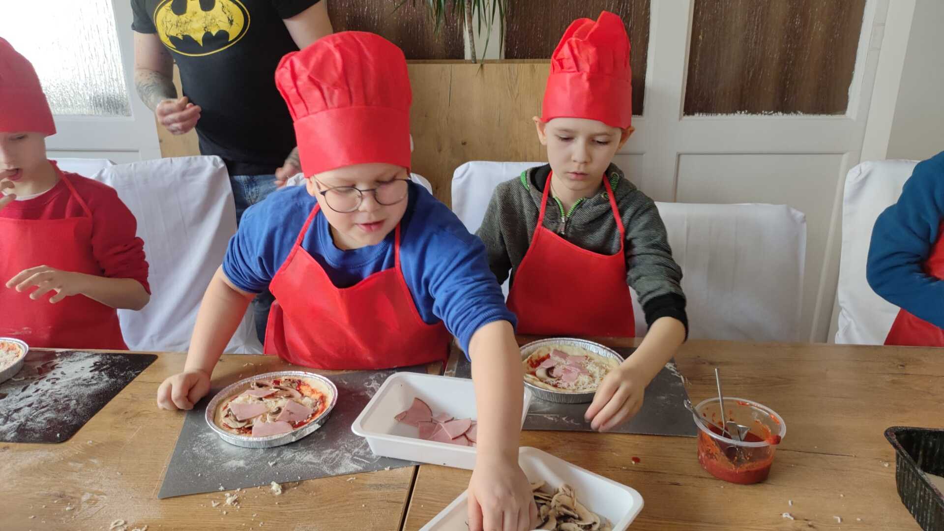 Po zapoznaniu się z techniką wykonania pizzy, dzieci wcieliły się w rolę kucharzy i przyrządziły swoje własne pizze z ulubionymi składnikami. Kiedy okrągłe przysmaki piekły się w gorącym piecu, uczniowie mieli czas by przypomnieć sobie zasady właściwego zachowywania się w restauracji i kulturalnego sposobu spożywania posiłków oraz zadbać o higienę rąk przed posiłkiem. Następnie przystąpiliśmy do degustacji. Wszyscy zgodnie stwierdzili, że pizza była bardzo smaczna.