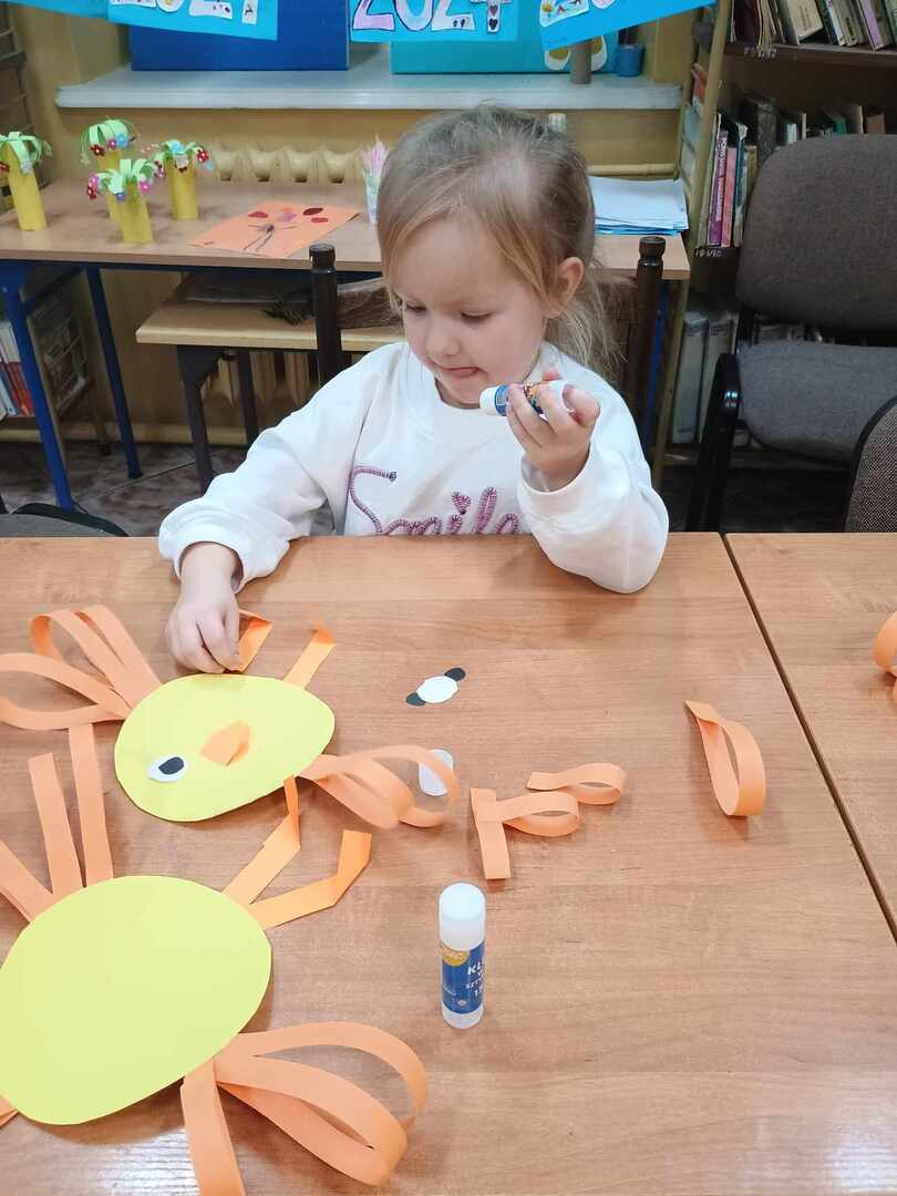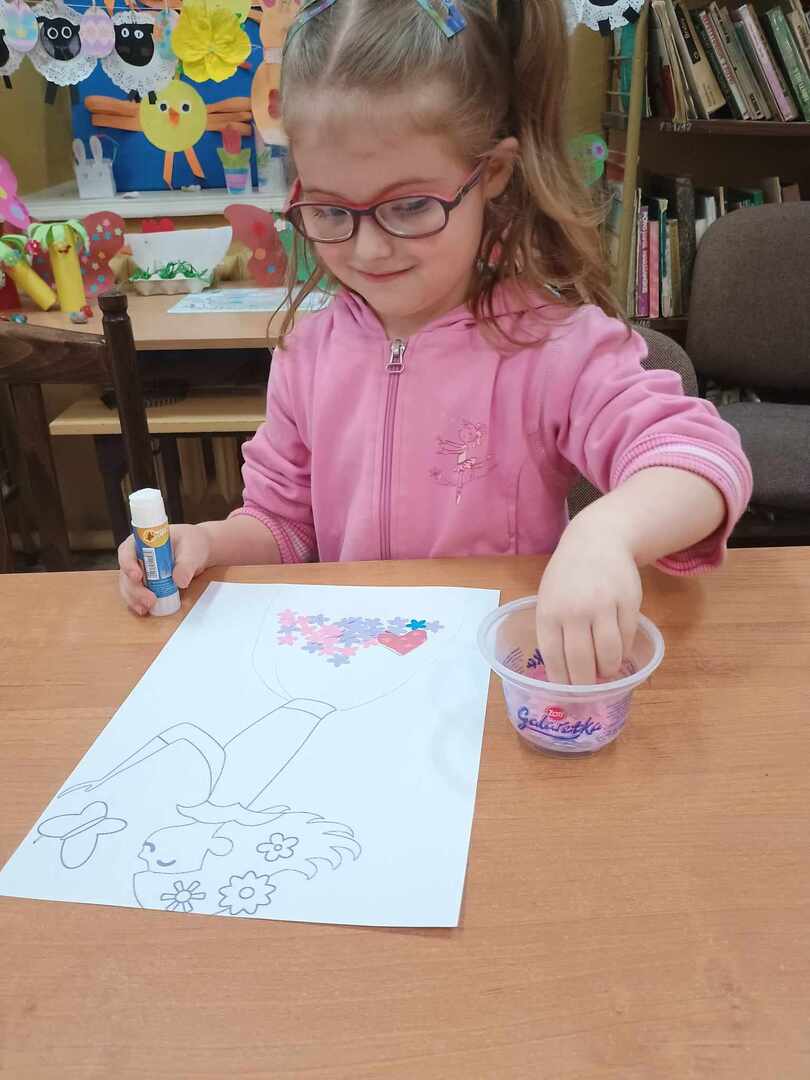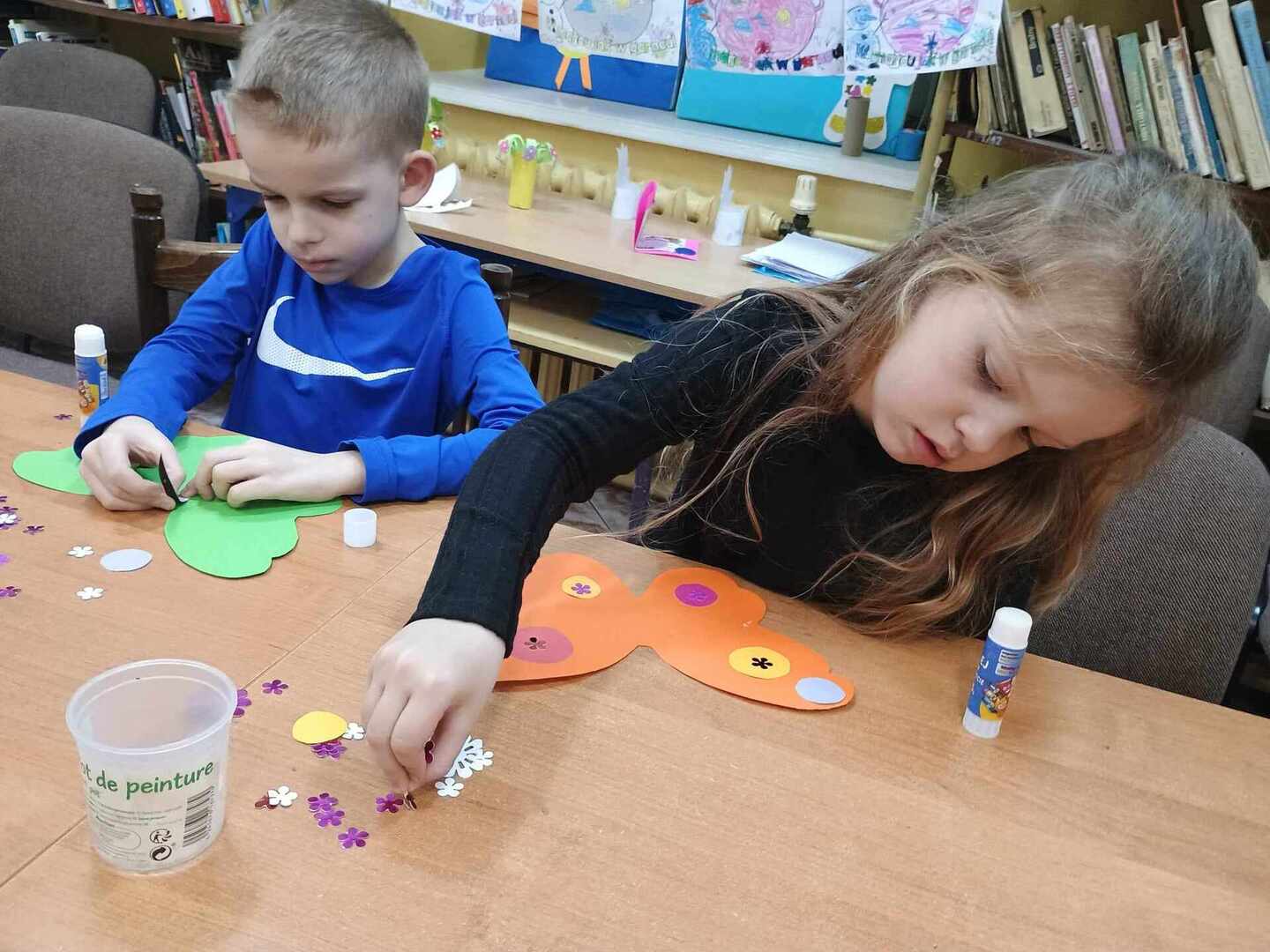 Podczas zajęć wykonywały również wiosenne kwiaty, bociany, motyle. Zajęcia przebiegały w miłej, przyjemnej atmosferze. Wspólna zabawa i praca pozwoliła nam poczuć atmosferę wiosny i nadchodzących świąt Wielkie Nocy.