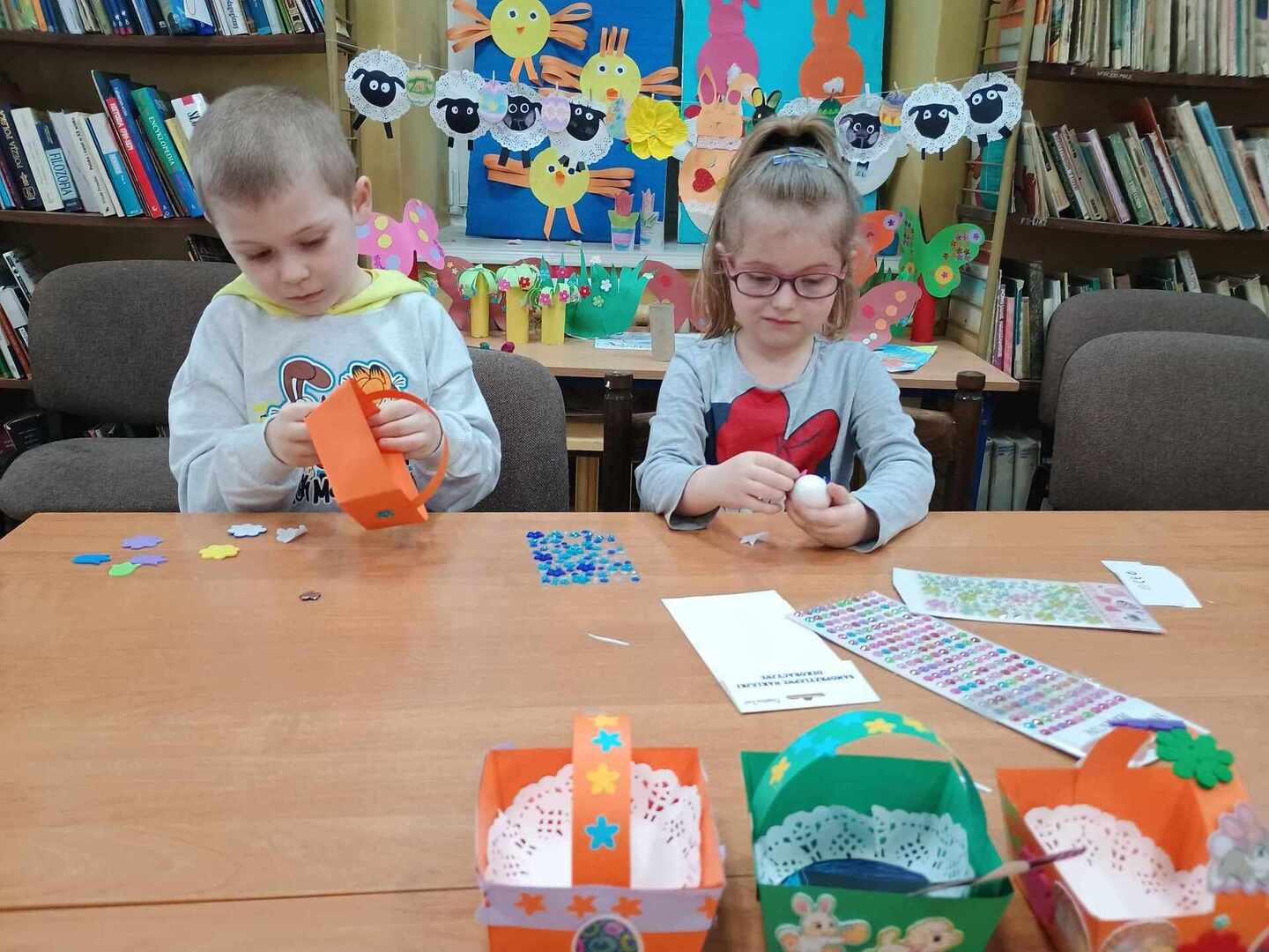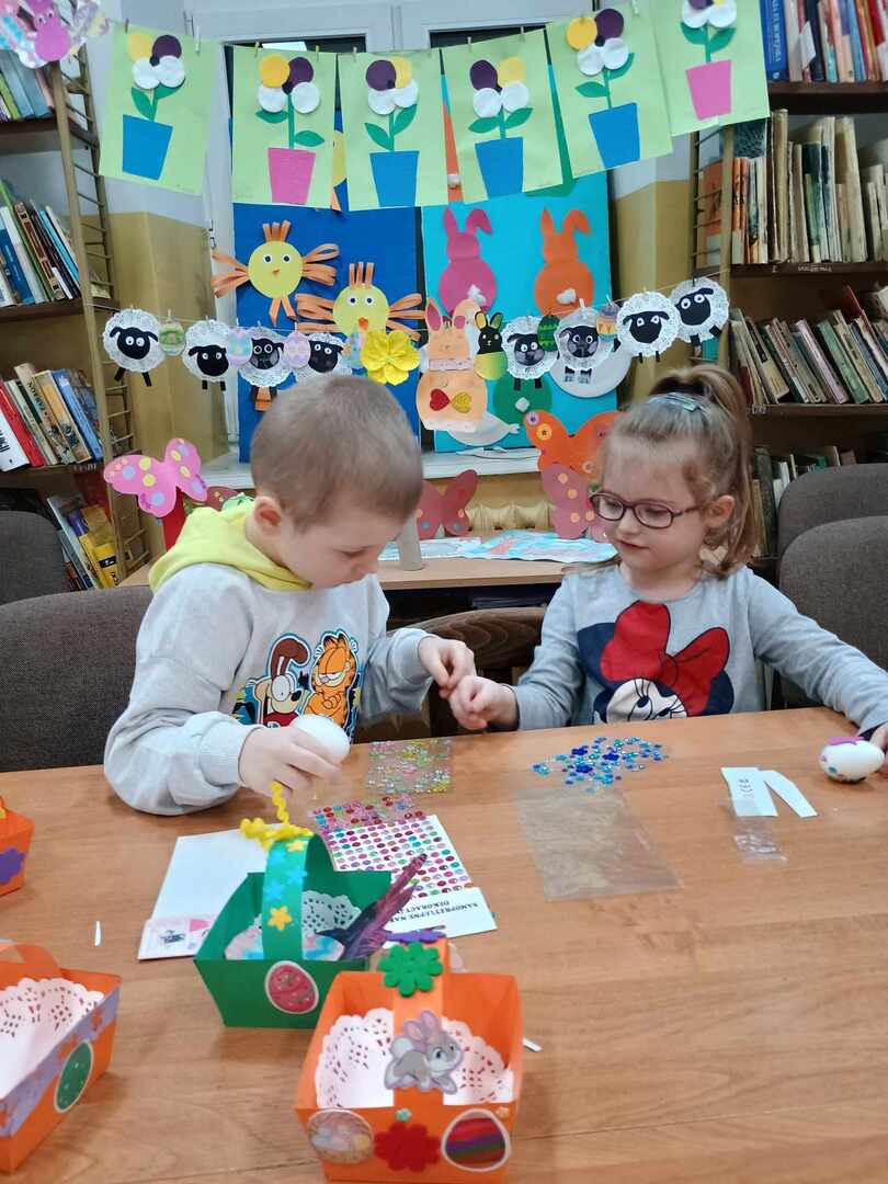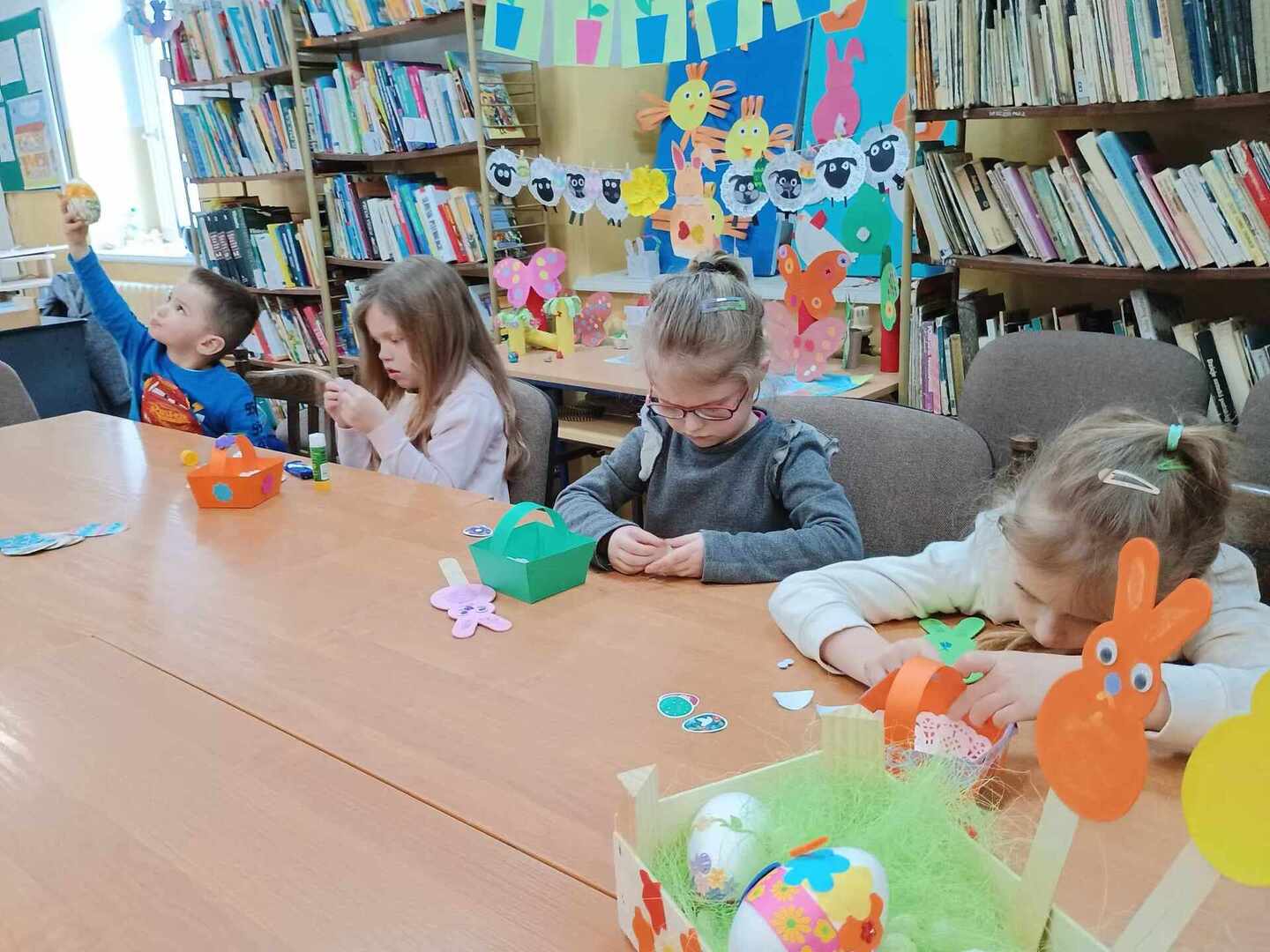 Dzieci wykonywały świąteczne ozdoby i dekoracje – zajączki, kurczaczki, koszyczki wielkanocne, pisanki i stroiki.