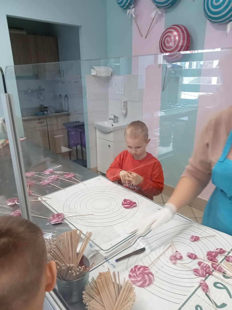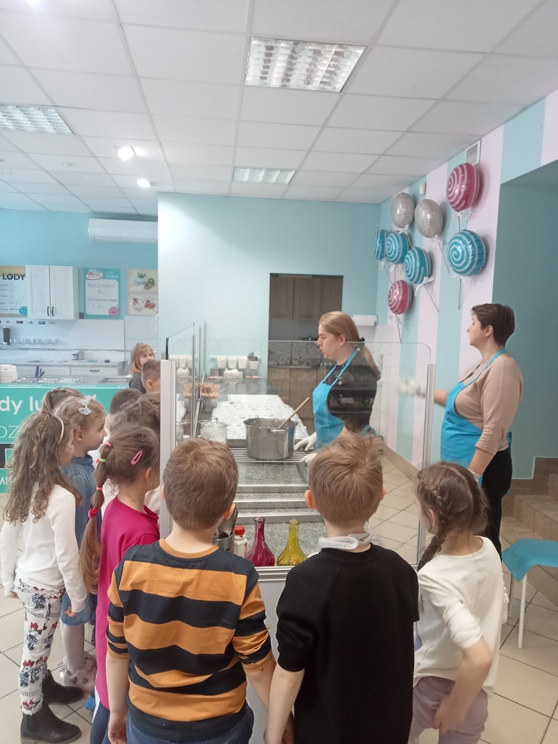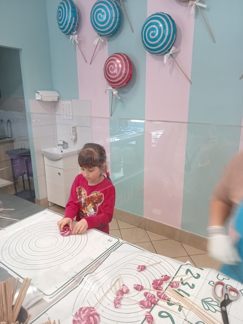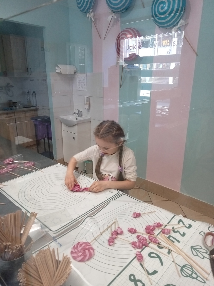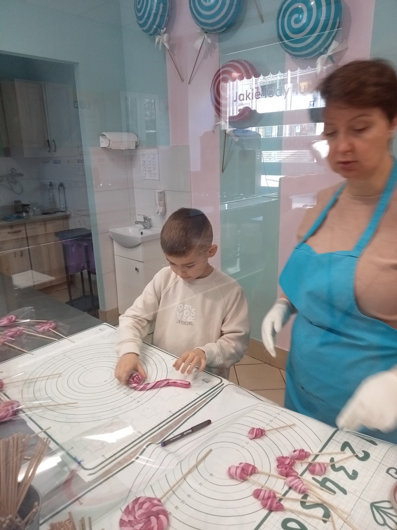 Po zakończonej wizycie w bibliotece dzieci udały się do Manufaktury Słodyczy. Uczestniczyły w warsztatach, w trakcie których miały okazję poznać cały proces ręcznego wykonywania słodkości. Przez cały czas obserwowały proces produkcyjny - od momentu wylania karmelu na kamienny blat, poprzez nadawanie mu smaku i kolorów, aż do momentu pakowania gotowych produktów. Mistrzowie pracy z karmelem pokazali, na czym polega ich praca, a dzieci mogły się przekonać, że robienie lizaków to prawdziwa sztuka. Po pokazie przedszkolaki samodzielnie wykonały lizaki, które zapakowały i zabrały do domu. To była wspaniała wycieczka, którą dzieci będą długo wspominać.