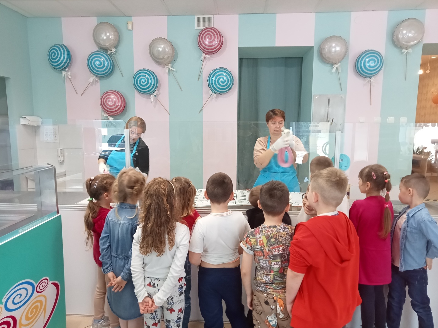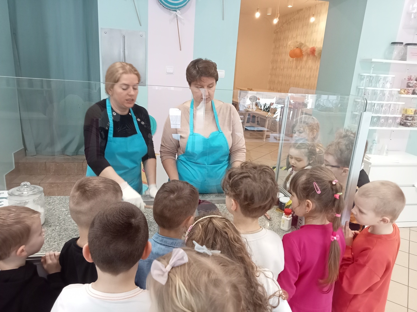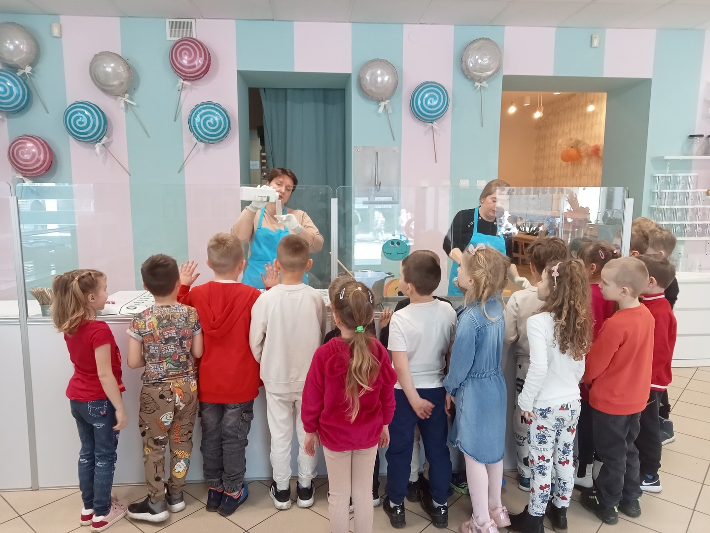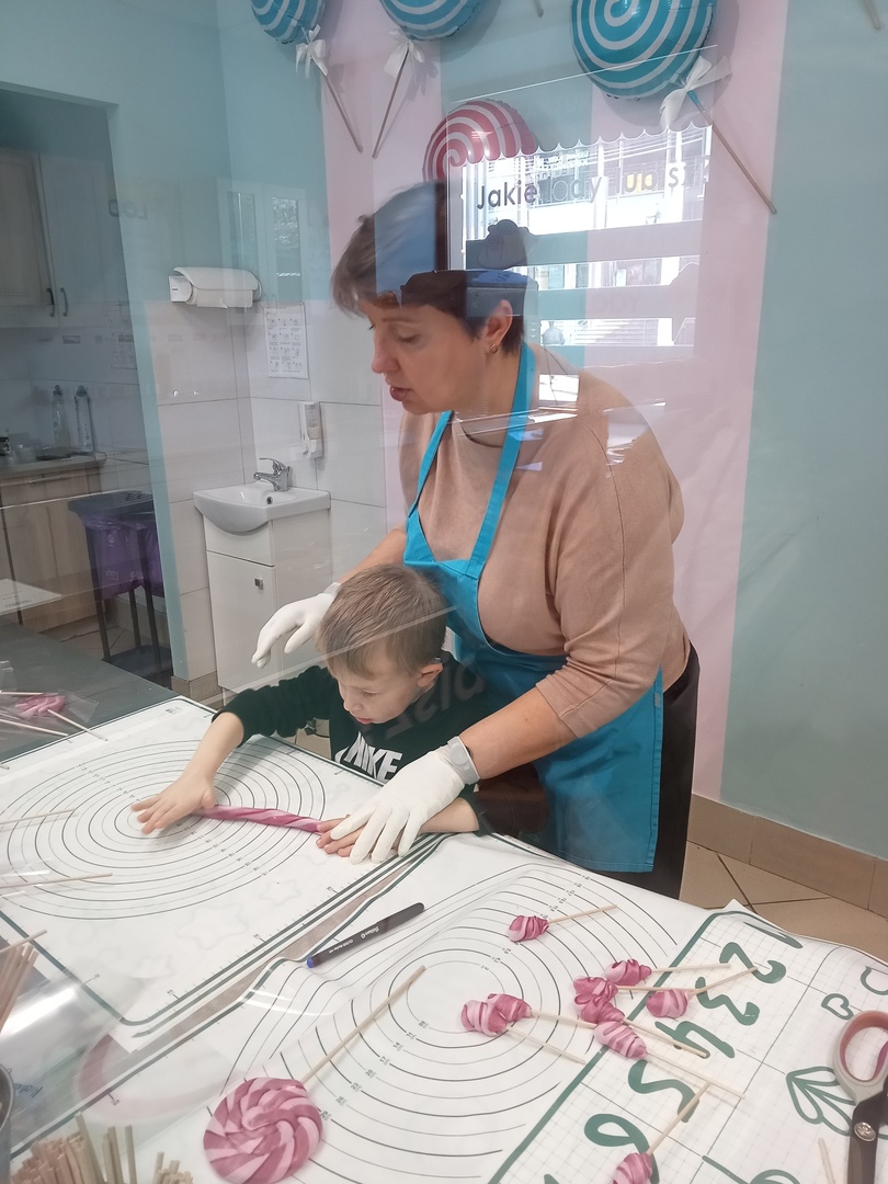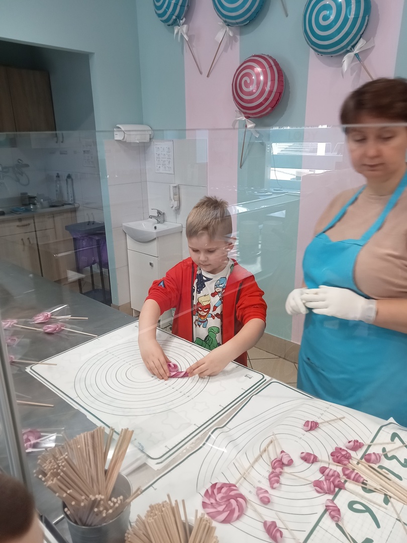 Po zakończonej wizycie w bibliotece dzieci udały się do Manufaktury Słodyczy. Uczestniczyły w warsztatach, w trakcie których miały okazję poznać cały proces ręcznego wykonywania słodkości. Przez cały czas obserwowały proces produkcyjny - od momentu wylania karmelu na kamienny blat, poprzez nadawanie mu smaku i kolorów, aż do momentu pakowania gotowych produktów. Mistrzowie pracy z karmelem pokazali, na czym polega ich praca, a dzieci mogły się przekonać, że robienie lizaków to prawdziwa sztuka. Po pokazie przedszkolaki samodzielnie wykonały lizaki, które zapakowały i zabrały do domu. To była wspaniała wycieczka, którą dzieci będą długo wspominać.
