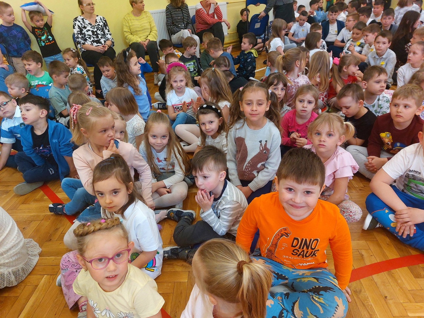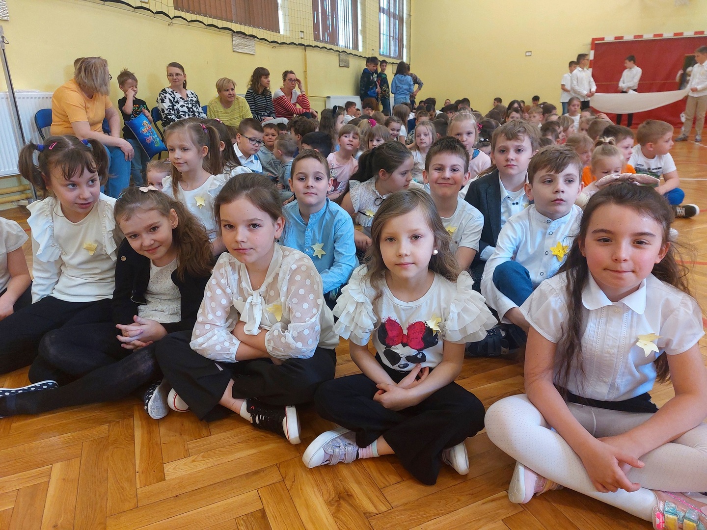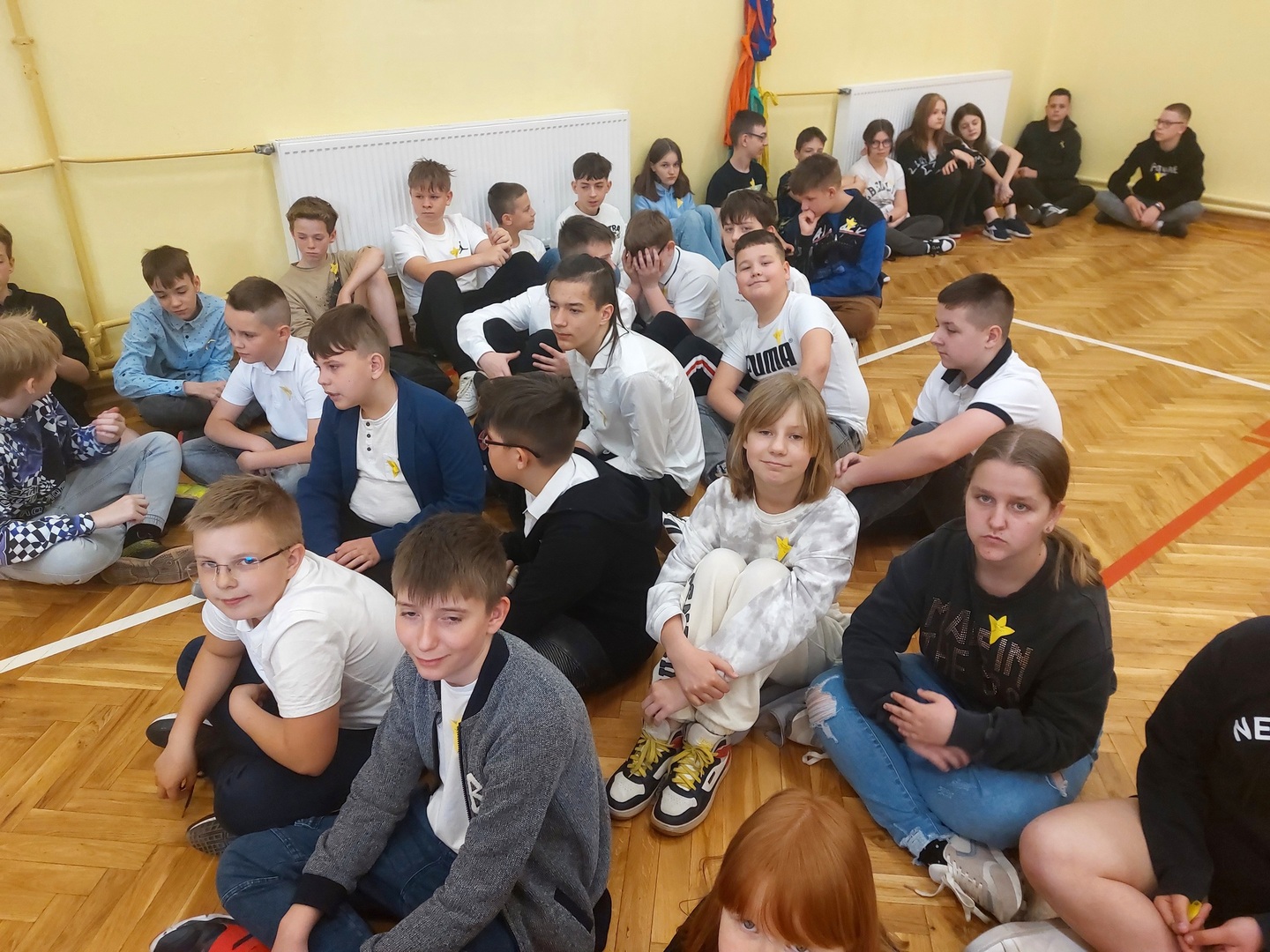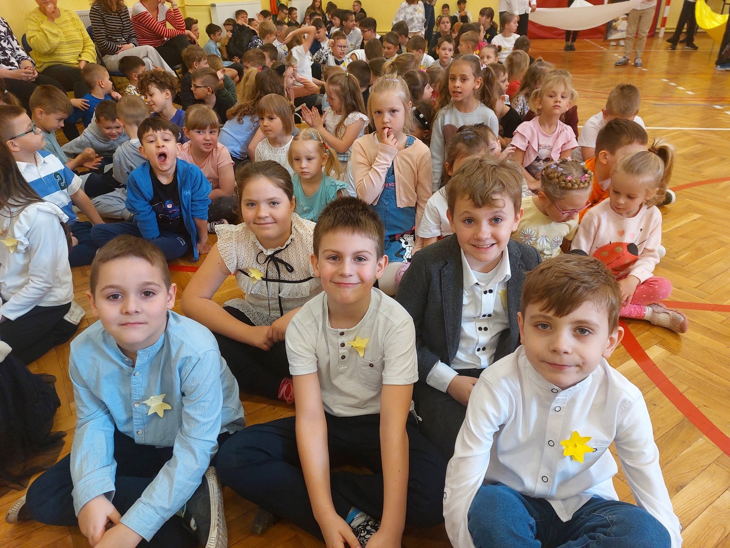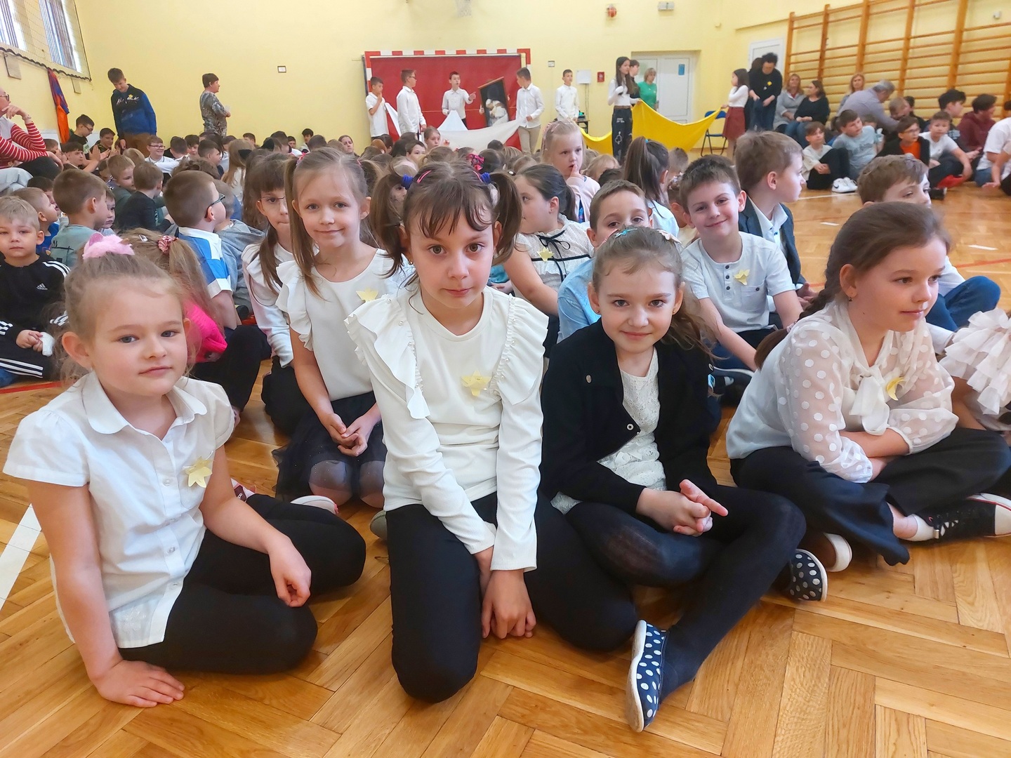 Uczniowie wraz z wychowawcami wykonali papierowe, żółte żonkile, który zostały przypięte do białych bluzek.