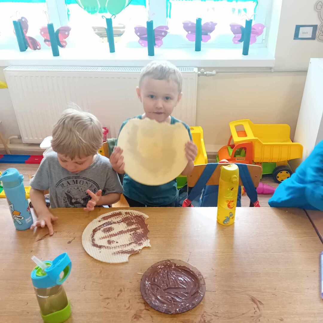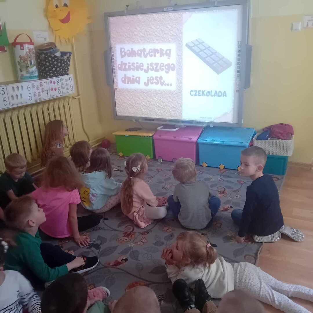 Z okazji Dnia Czekolady dzieci wykonały czekoladowe prace plastyczne i próbowały różnych rodzajów czekolady. Po degustacji i filmie edukacyjnym przyszedł czas na spalenie kalorii przy piosence ,,Chocolate".