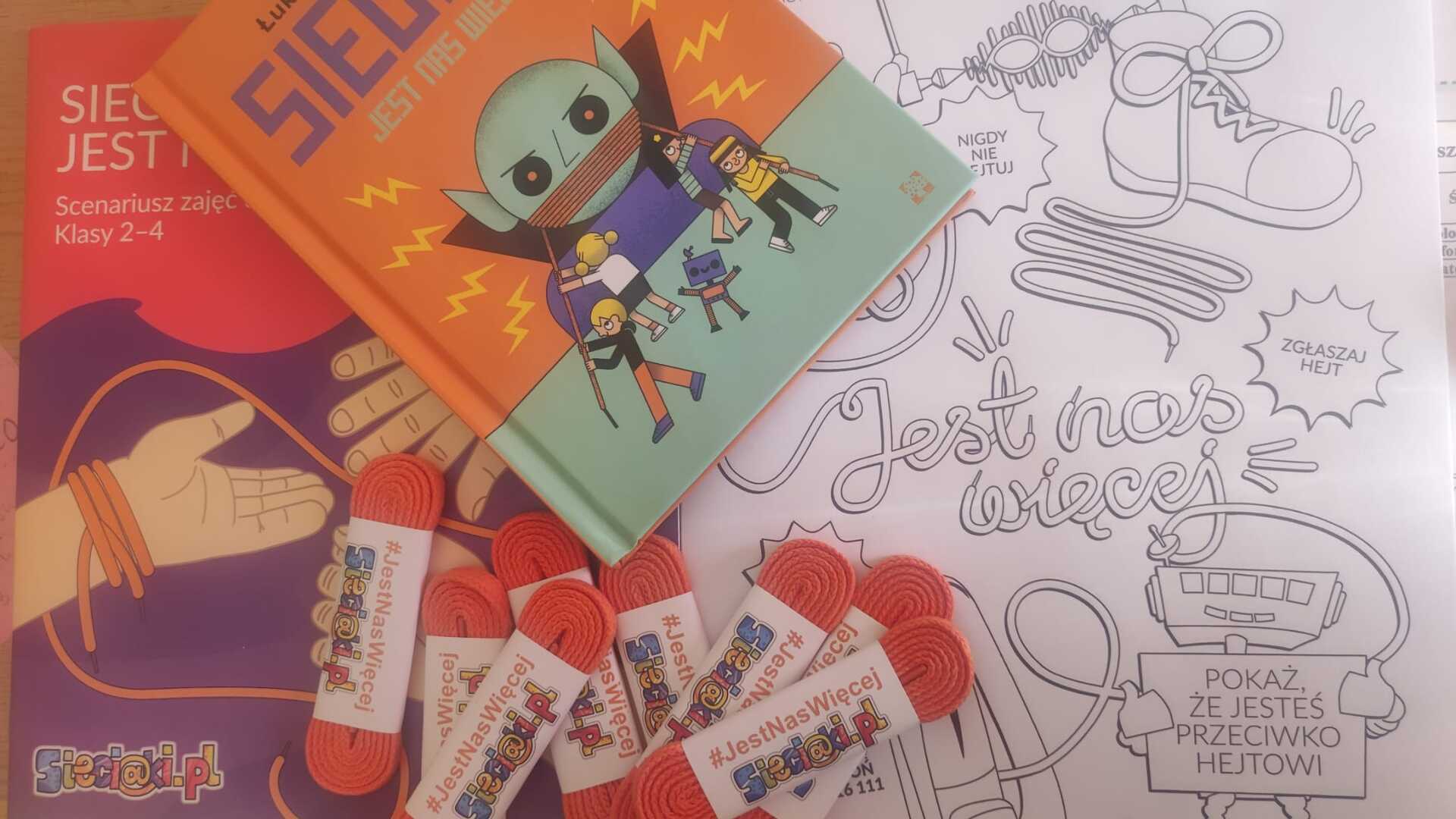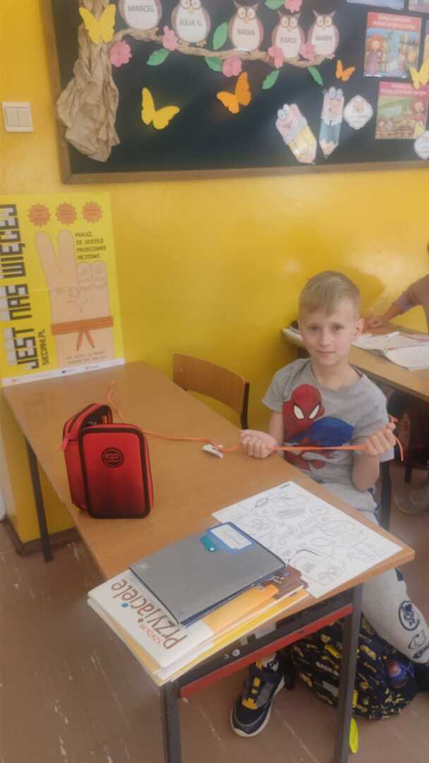 Dzisiaj, 13 maja 2023r., na zajęciach korzystaliśmy z otrzymanego pakietu edukacyjnego „Sieciaki. Jest nas więcej”. Klasa II dołączyła do akcji #jestnaswiecej, a pomarańczowa sznurówka jest symbolem sprzeciwu wobec hejtu, że Internet może być bardziej przyjaznym miejscem dla dzieci, młodzieży i dla nas wszystkich. Pomysłów na wykorzystanie pomarańczowej sznurówki było wiele.
