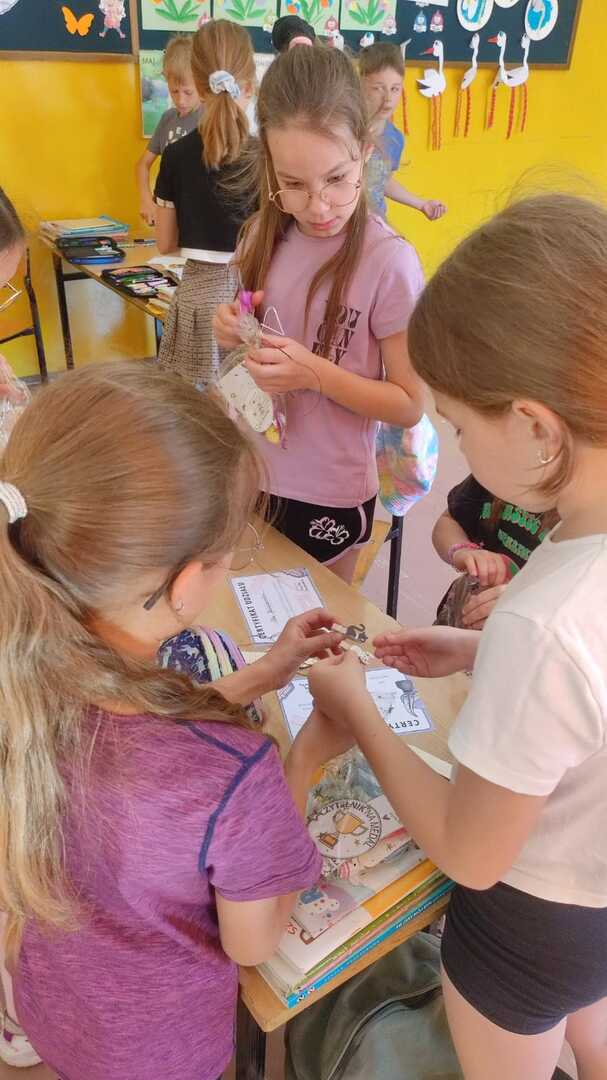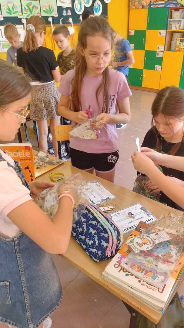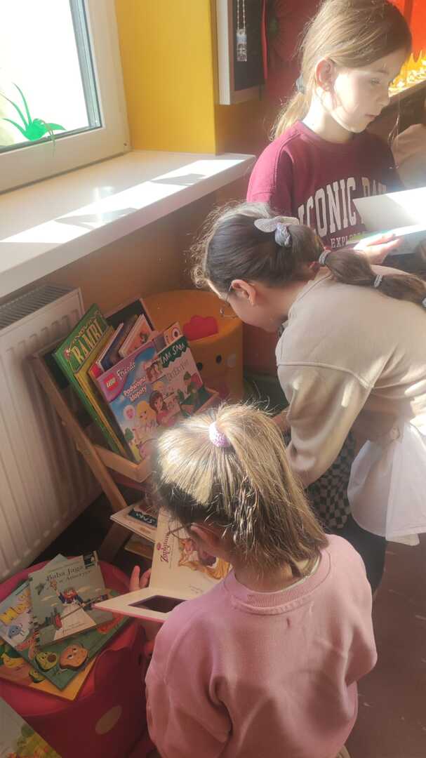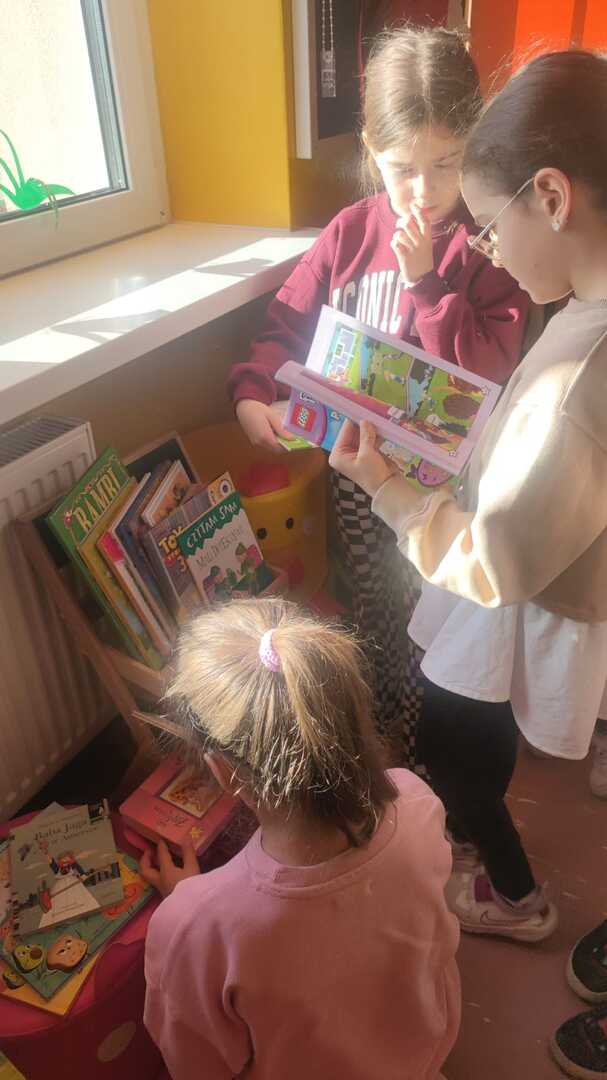 W klasie II w kwietniu realizowaliśmy jednocześnie dwa projekty promujące czytelnictwo, łącząc różne pomysły. Jeden z nich to ogólnopolski projekt „Zaczytana Klasa”. W tym celu w klasie stworzyliśmy własną klasową biblioteczkę – dzieci przynosiły swoje książki i wzajemnie się nimi wymieniały. To zadanie nie tylko pomogło w rozwijaniu umiejętności czytania, ale również uczy empatii i rozwija umiejętność dzielenia się z innymi. Akcja trwała cały miesiąc, uczniowie otrzymali karty czytelnicze, gdzie skrupulatnie notowali tytuły, autorów i czas czytanych książek.