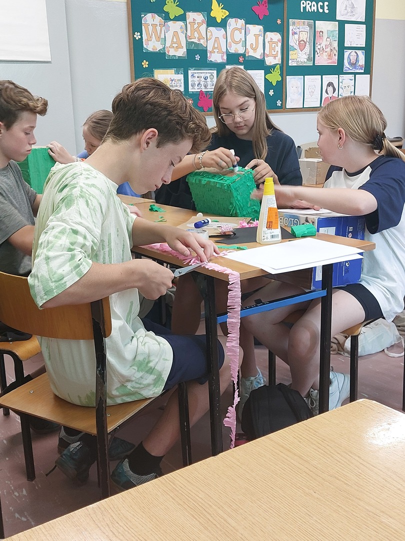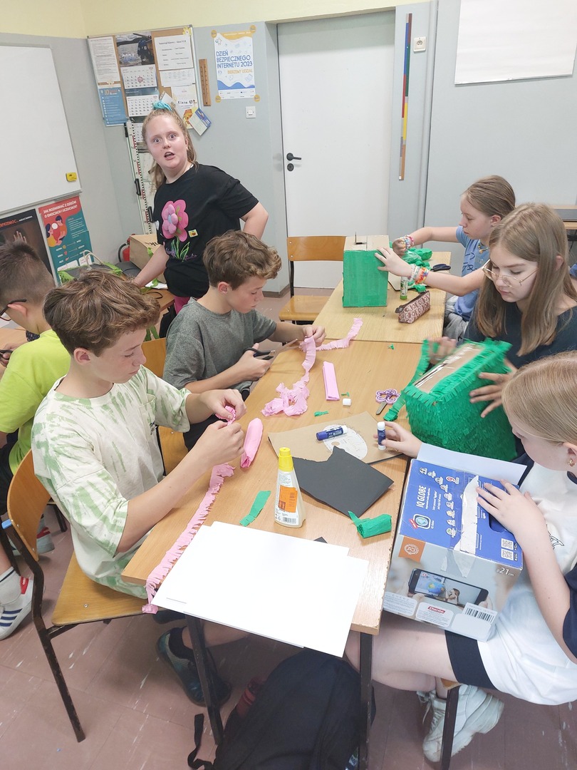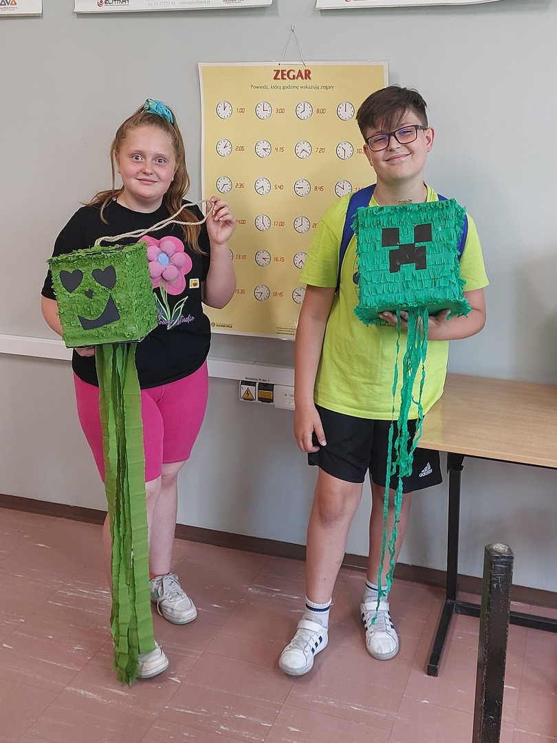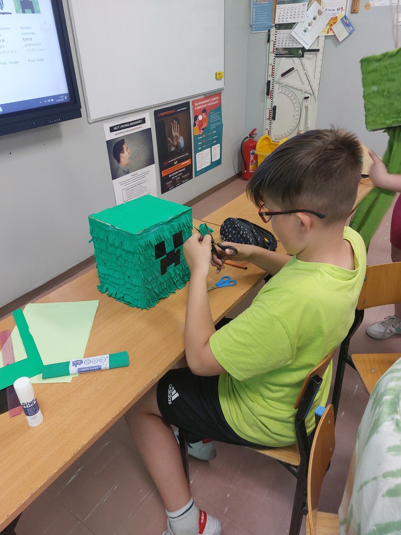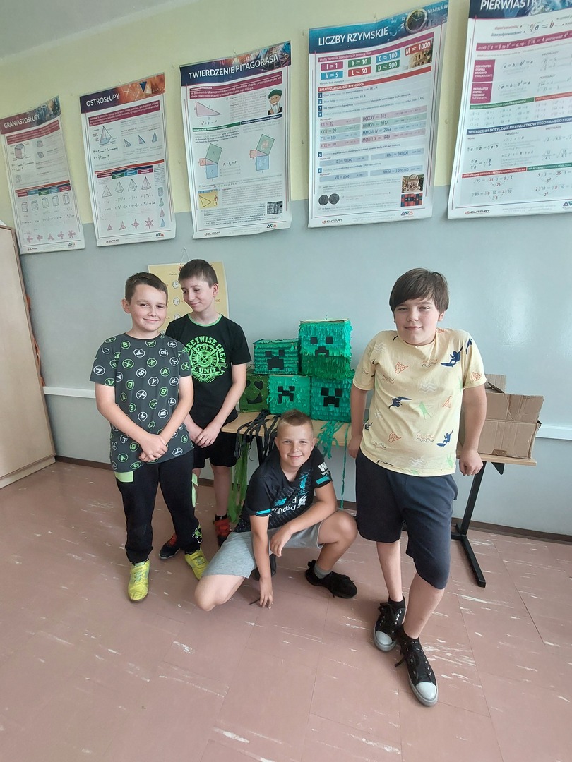 Uczniowie klasy 5A na lekcjach matematyki, na podsumowanie działu dotyczacego brył tworzyli piniaty urodzinowe na wzór Creepera z ich ulubionej gry komputerowej. Projekt zrealizowaliśmy w ramach ogolnopolskiego programu "Kreatywna matematyka".