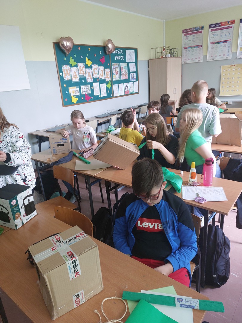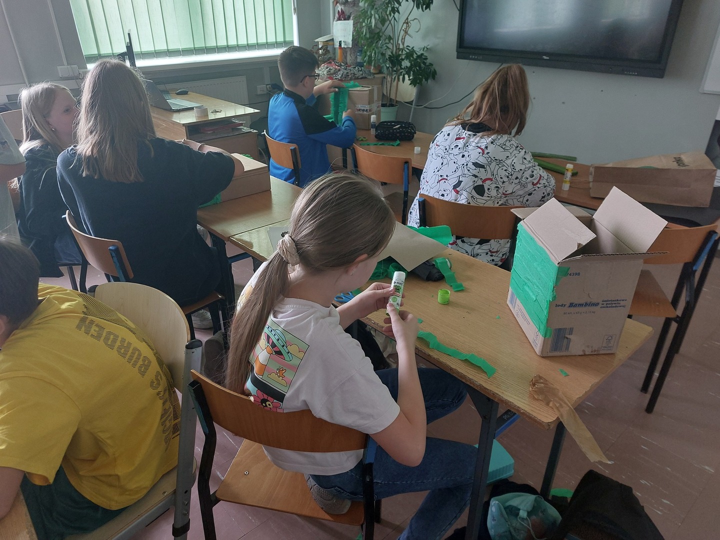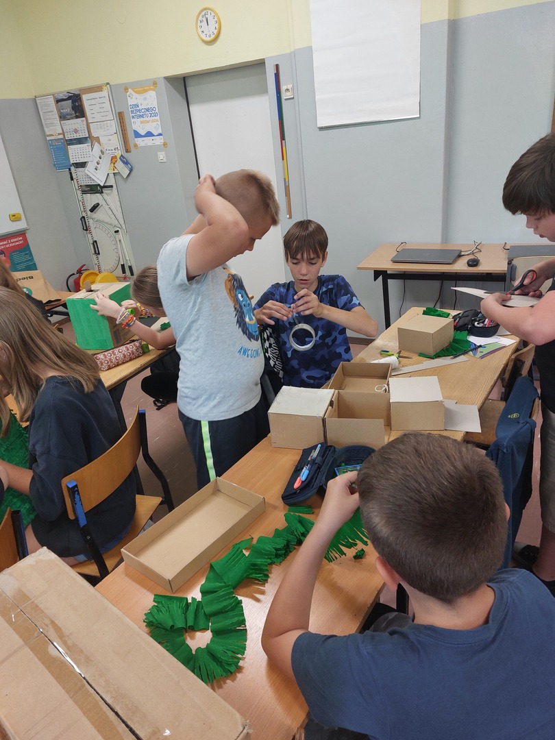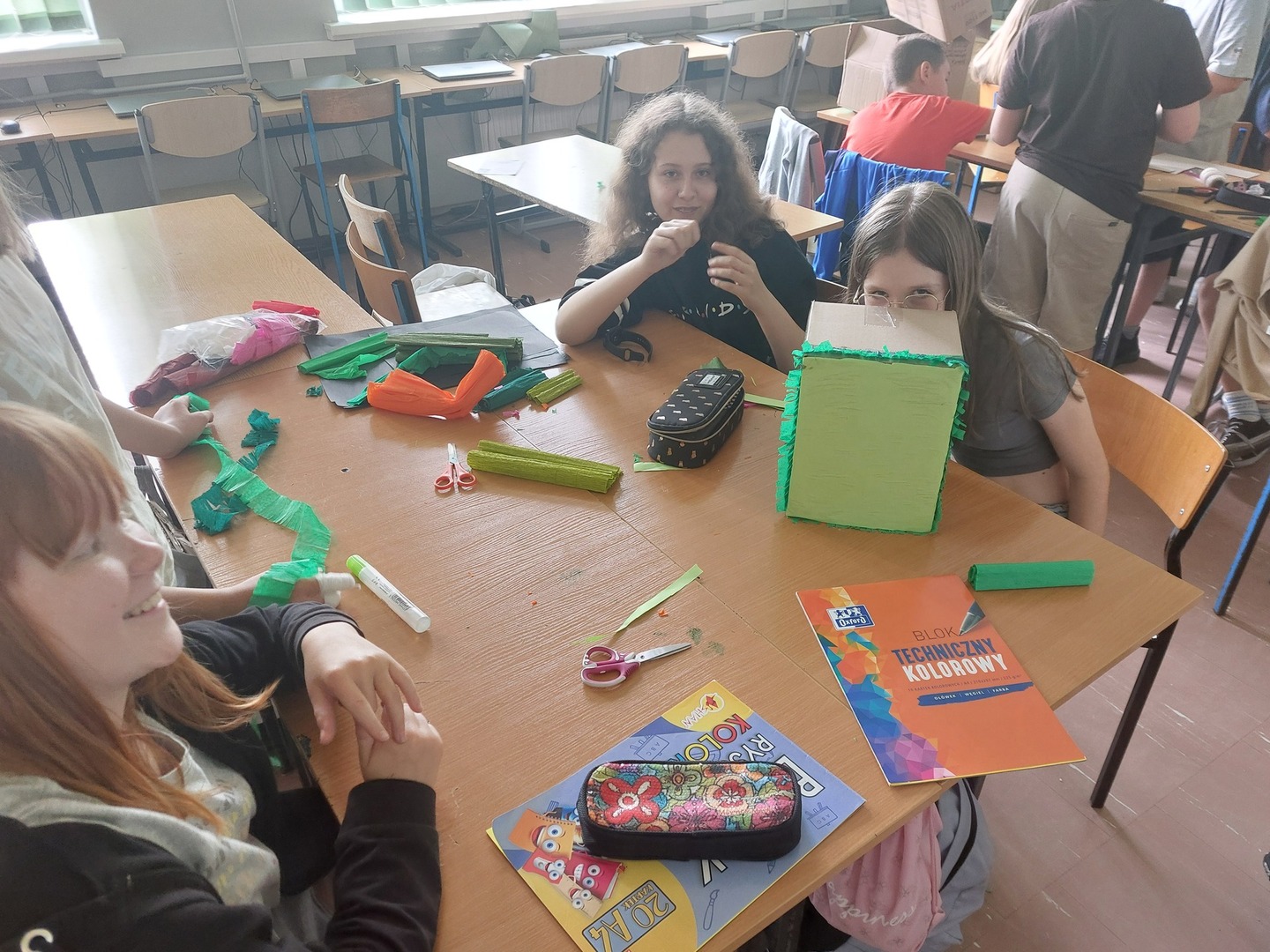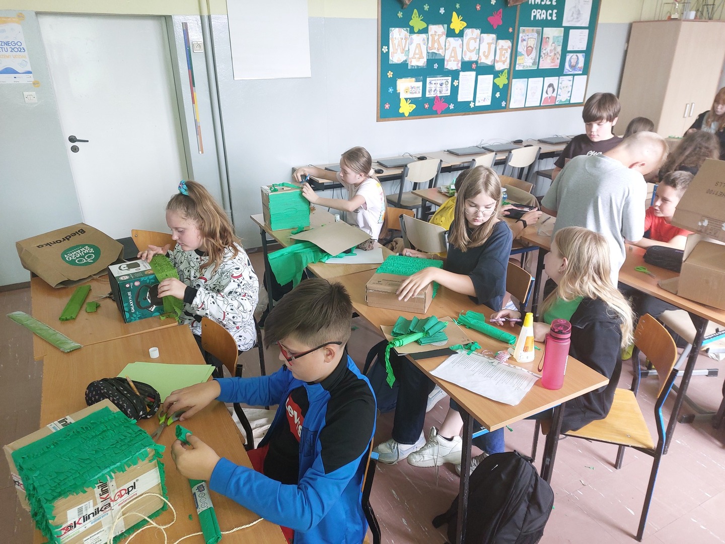 Uczniowie klasy 5A na lekcjach matematyki, na podsumowanie działu dotyczacego brył tworzyli piniaty urodzinowe na wzór Creepera z ich ulubionej gry komputerowej. Projekt zrealizowaliśmy w ramach ogolnopolskiego programu "Kreatywna matematyka".