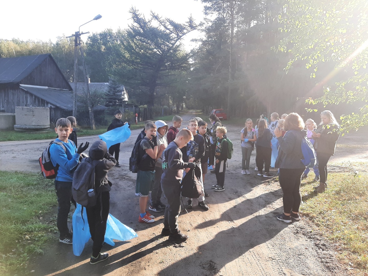 20 września 2024 uczniowie naszej szkoły brali udział w Sprzątaniu Świata. Pomimo rześkiego poranka wszyscy ochoczo ruszyli do porządkowania lasów wokół Duninowa i okolicznych wsi. Chętni do pracy uczniowie zaopatrzeni w worki i jednorazowe rękawiczki wraz z wychowawcami, nauczycielami i leśnikami ruszyli na pomoc przyrodzie. Natura też się odwdzięczyła i sprawiła , że tego dnia było pięknie i słonecznie. Akcja przebiegła szybko i sprawnie. Za ciężką, efektywną pracę uczniowie oraz opiekunowie zostali wspaniale wynagrodzeni. Po akcji młodsze dzieci z klas 0-III pomaszerowały na boisko LKS Wisła , natomiast uczniowie klas IV-VIII poszli na strzelnicę w Karolewie. Tam czekały na nich pieczone kiełbaski, napoje oraz batony.