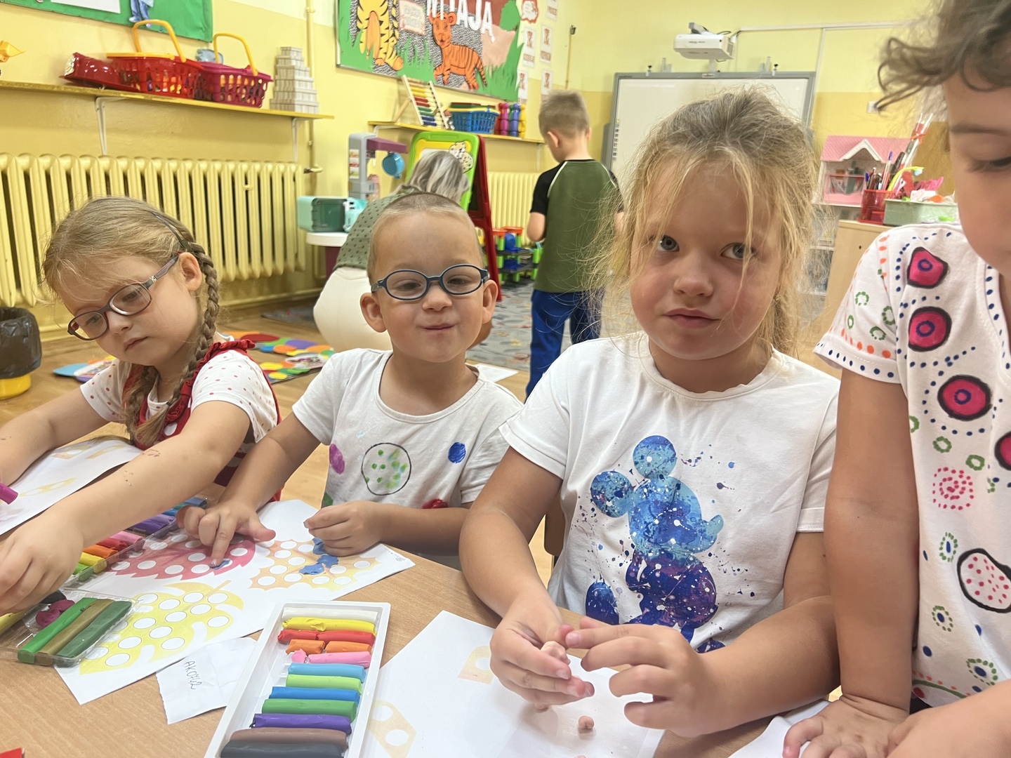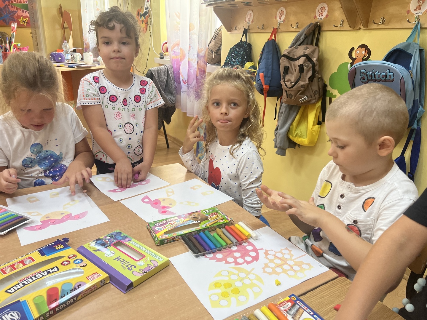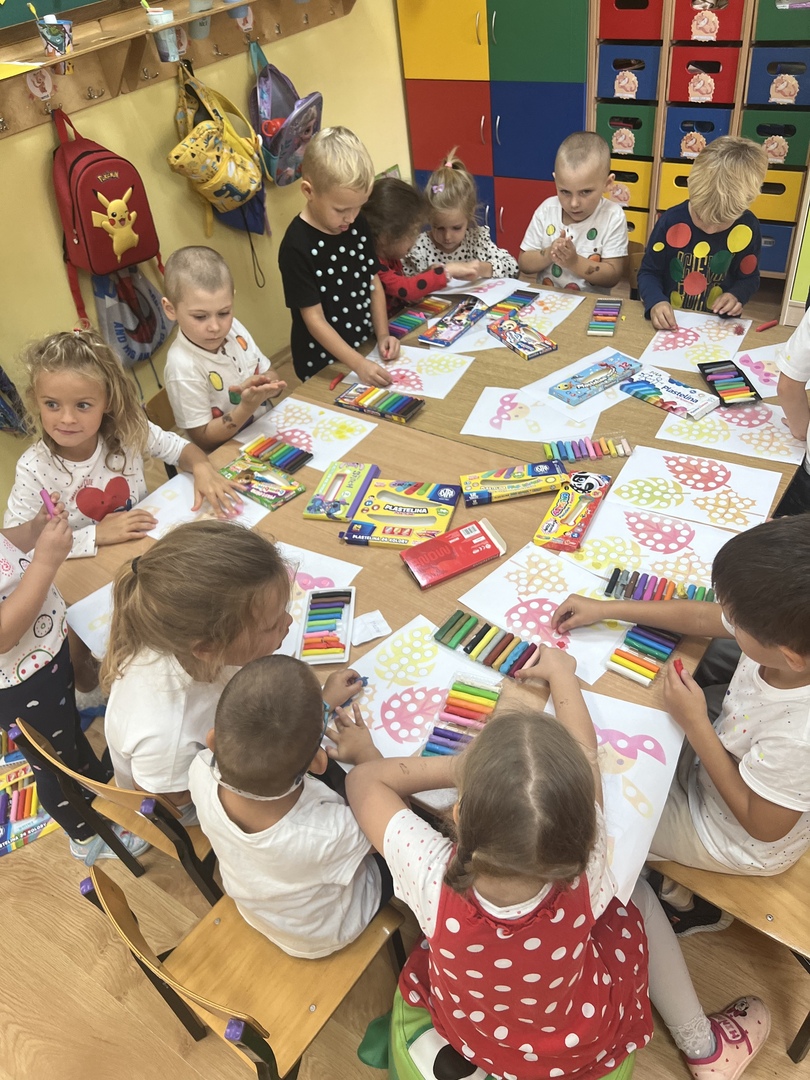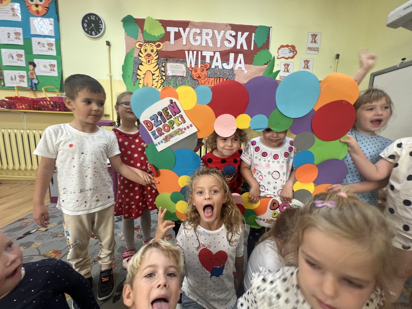 Przedszkolaki z grup "Tygryski" oraz "Misie" postawily w tym dniu dużo kropek. Ich ubrania ozdabiały różnokolorowe punkty. Tworzyli różnorodne prace plastyczne z wykorzystaniem kropek. Rozmywali je, malowali i patrzyli co się z nimi dzieje. Rozwiązywali kropkowe zagadki i zadania. A także z zaangażowaniem opowiadali i z odwagą prezentowali swoje umiejętności. Było kolorowo, radośnie i twórczo.