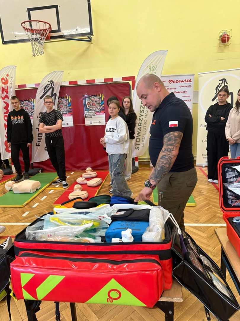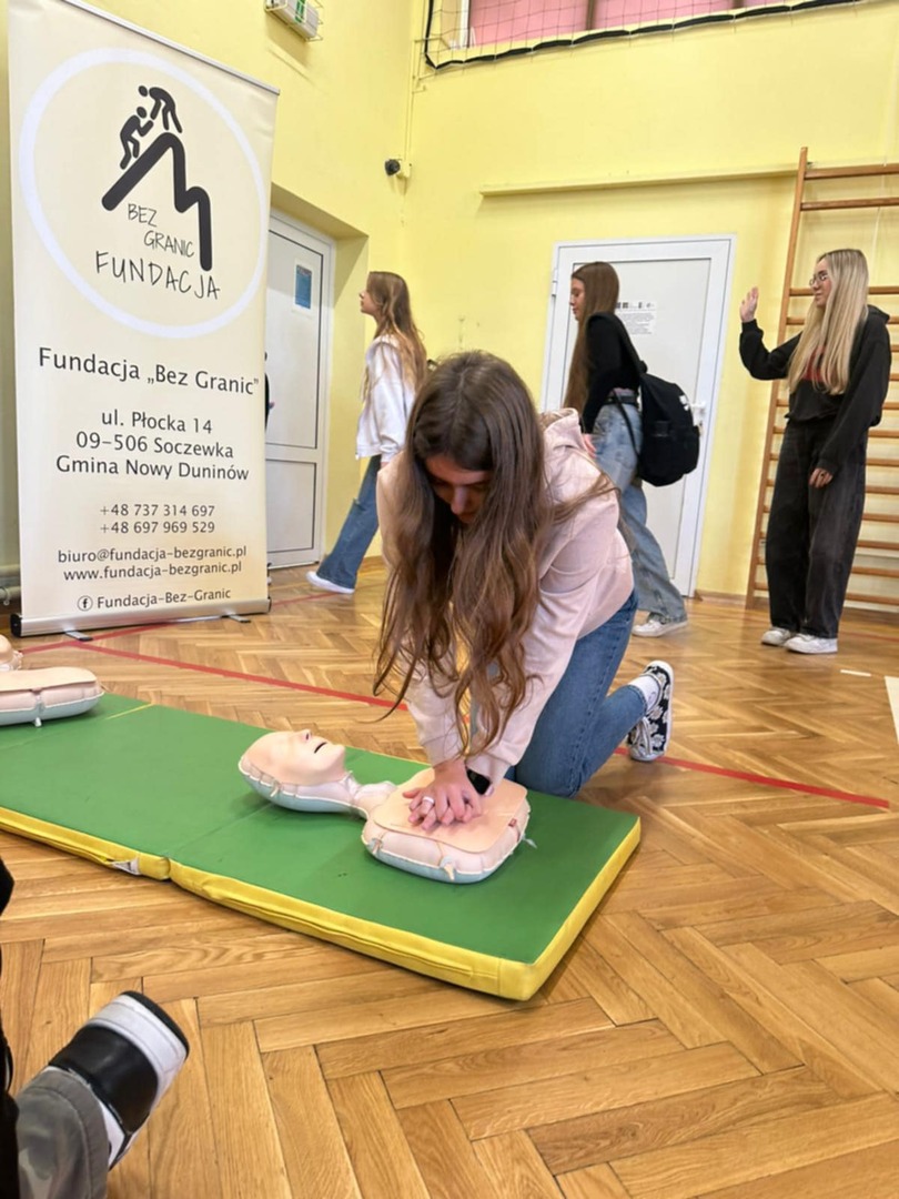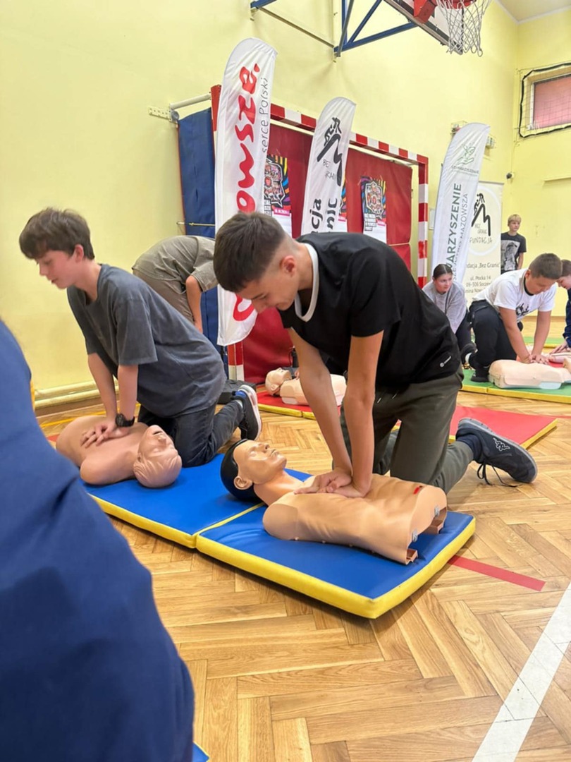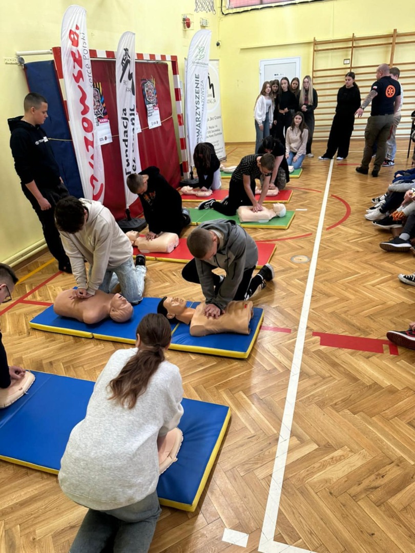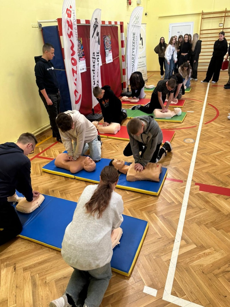 Celem akcji jest wspólne promowanie w całej Polsce nauki pierwszej pomocy. Na początku Pan Patryk Bogucki, instruktor i sanitariusz przeprowadził lekcje z pierwszej pomocy, a potem uczniowie wzięli udział w zajęciach i w rekordzie resuscytacji na przygotowanych fantomach. Serdecznie dziękujemy Fundacji Bez Granic oraz Stowarzyszeniu Lepsze Jutro Mazowsza za pomoc we współorganizacji wydarzenia.