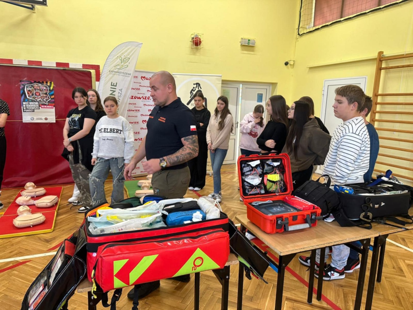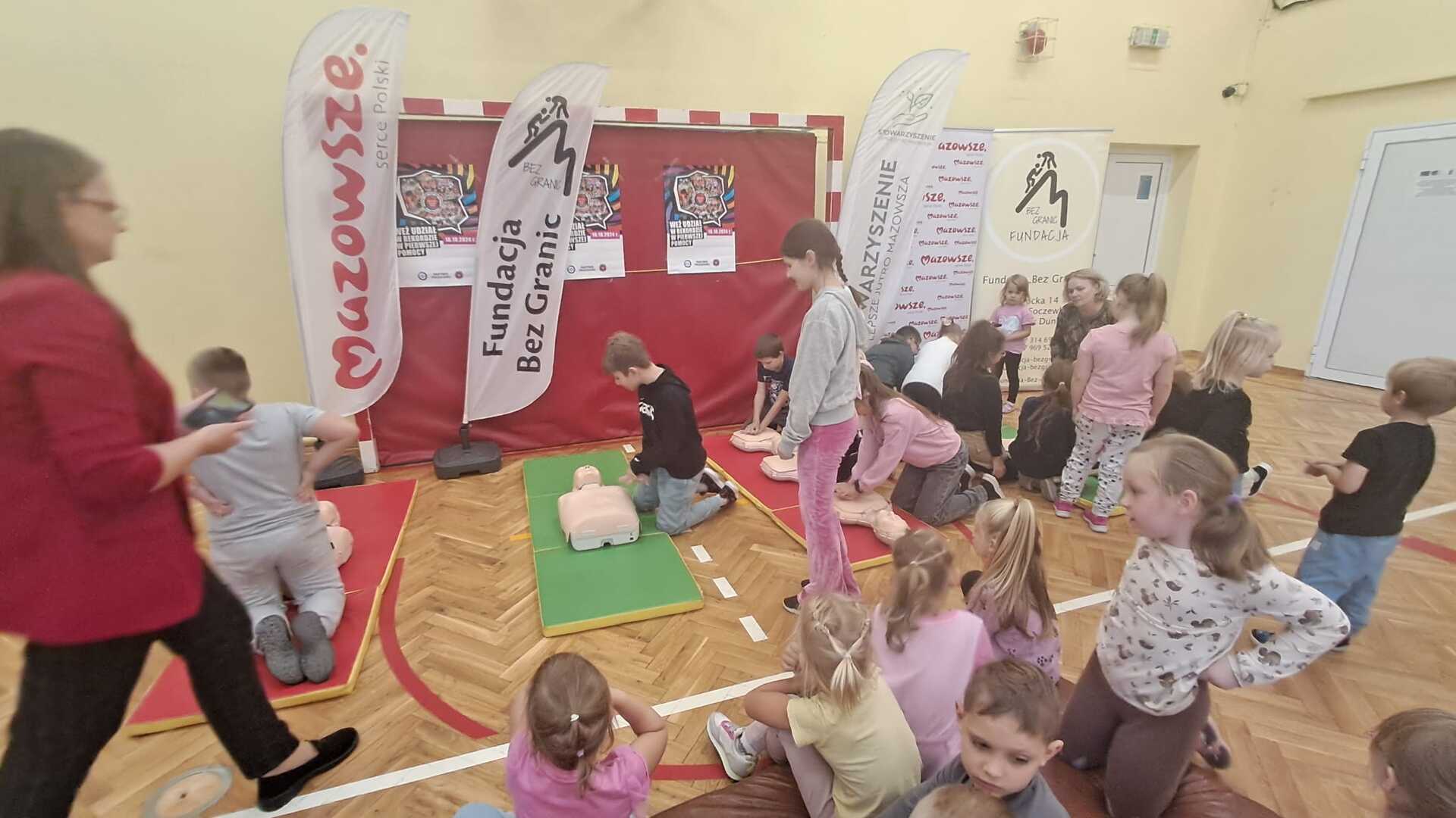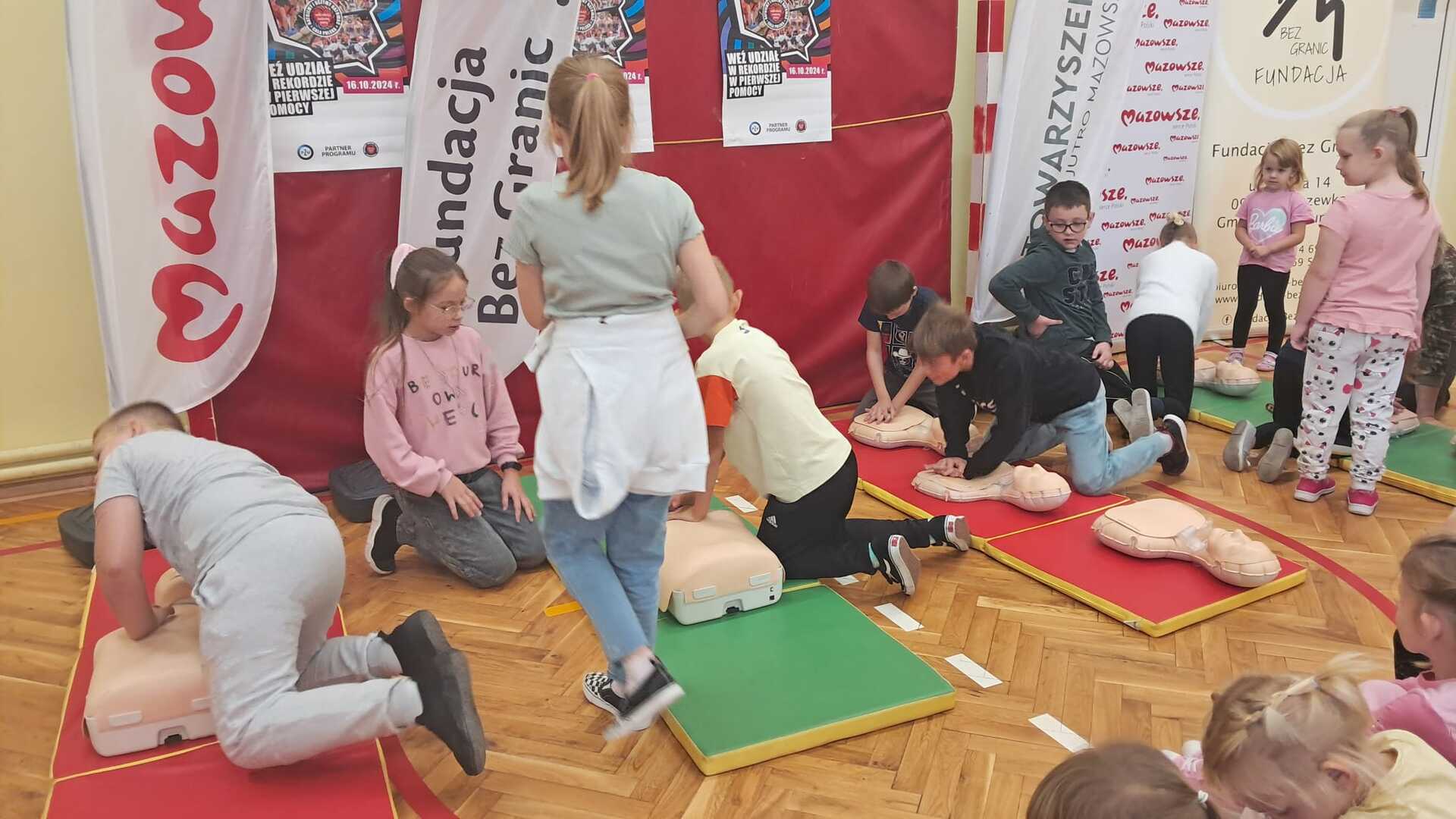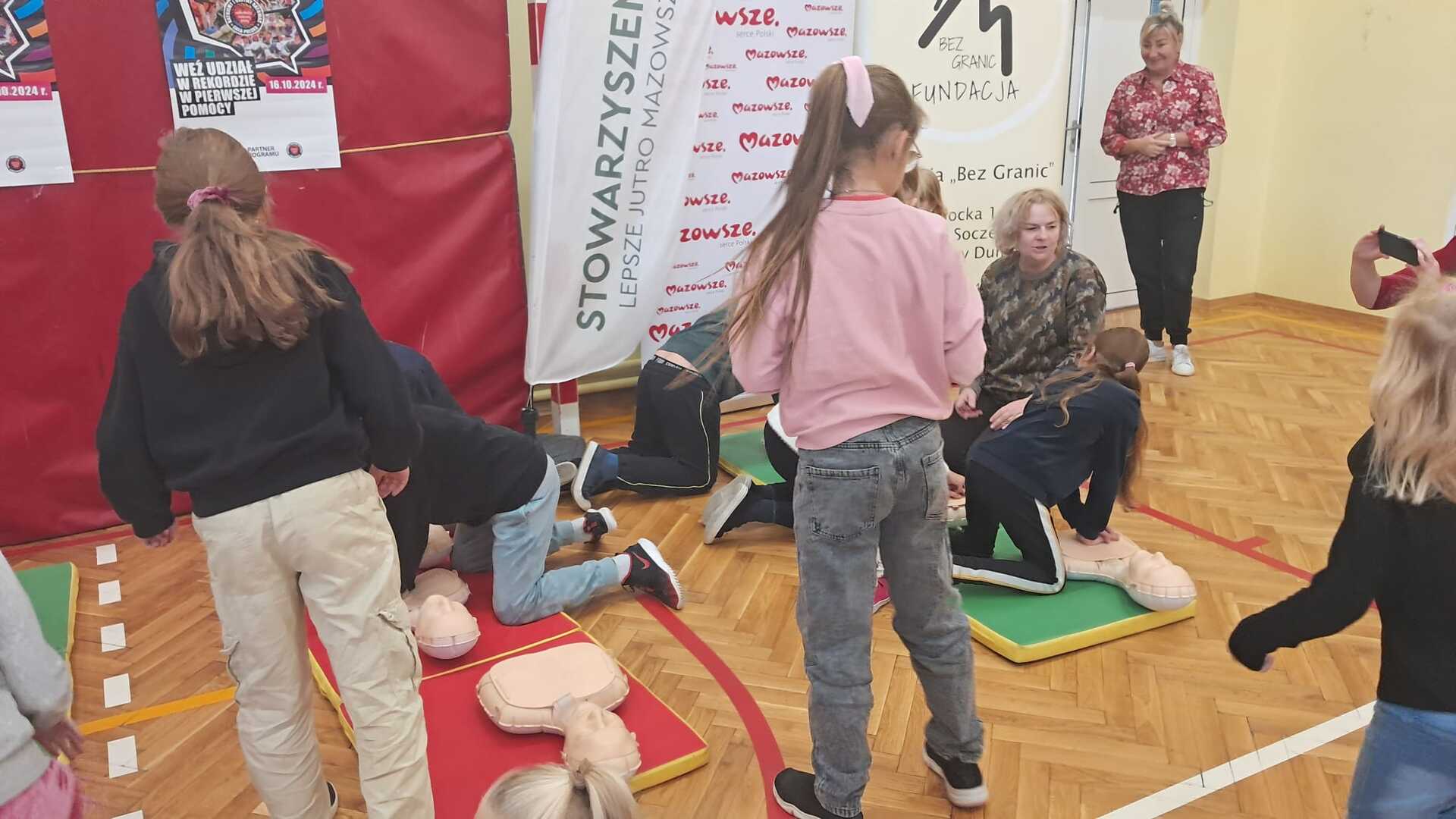 Celem akcji jest wspólne promowanie w całej Polsce nauki pierwszej pomocy. Na początku Pan Patryk Bogucki, instruktor i sanitariusz przeprowadził lekcje z pierwszej pomocy, a potem uczniowie wzięli udział w zajęciach i w rekordzie resuscytacji na przygotowanych fantomach. Serdecznie dziękujemy Fundacji Bez Granic oraz Stowarzyszeniu Lepsze Jutro Mazowsza za pomoc we współorganizacji wydarzenia.