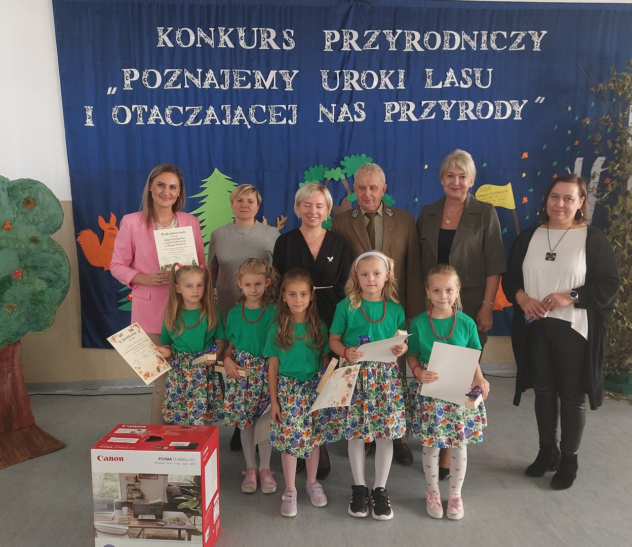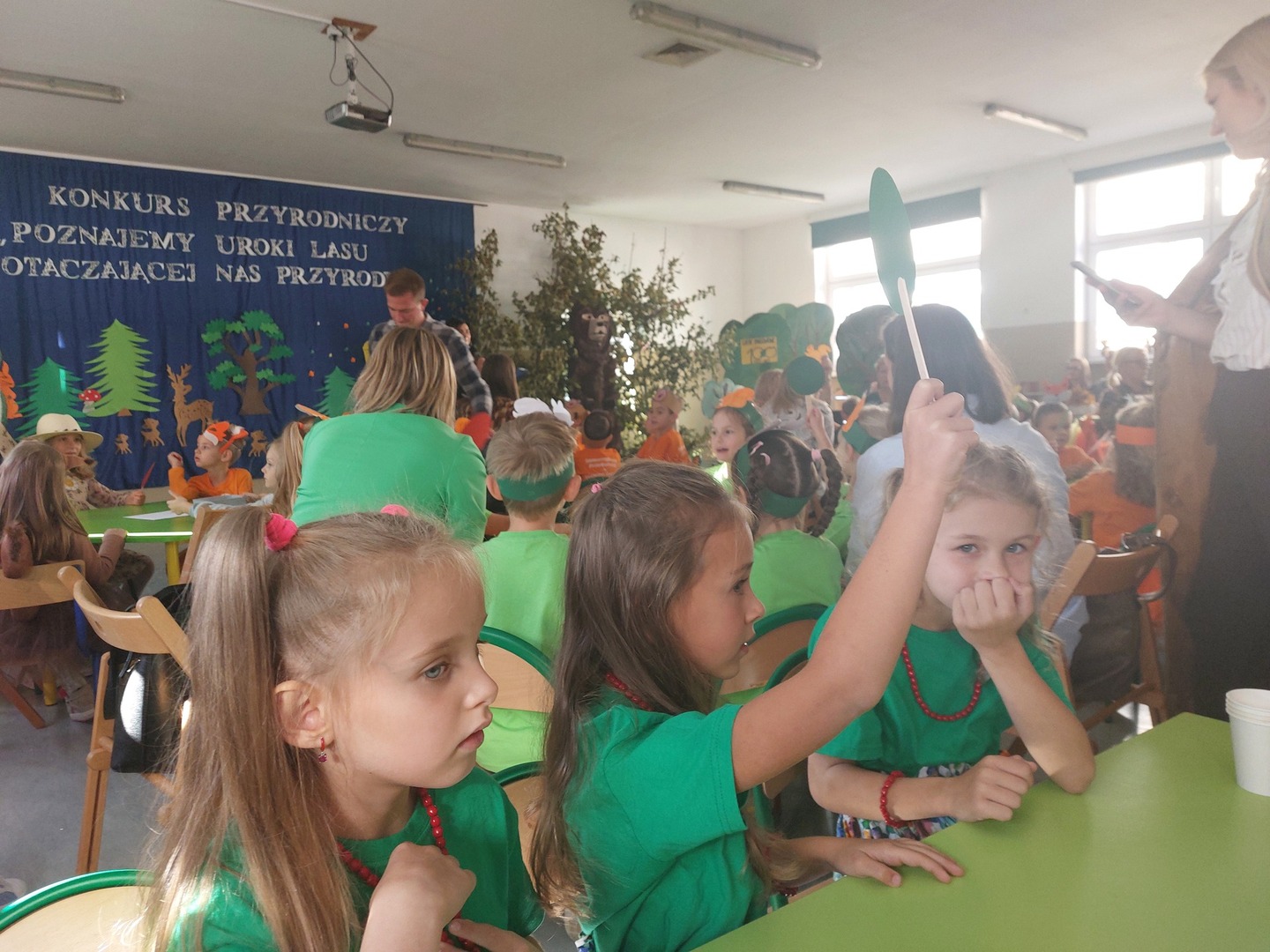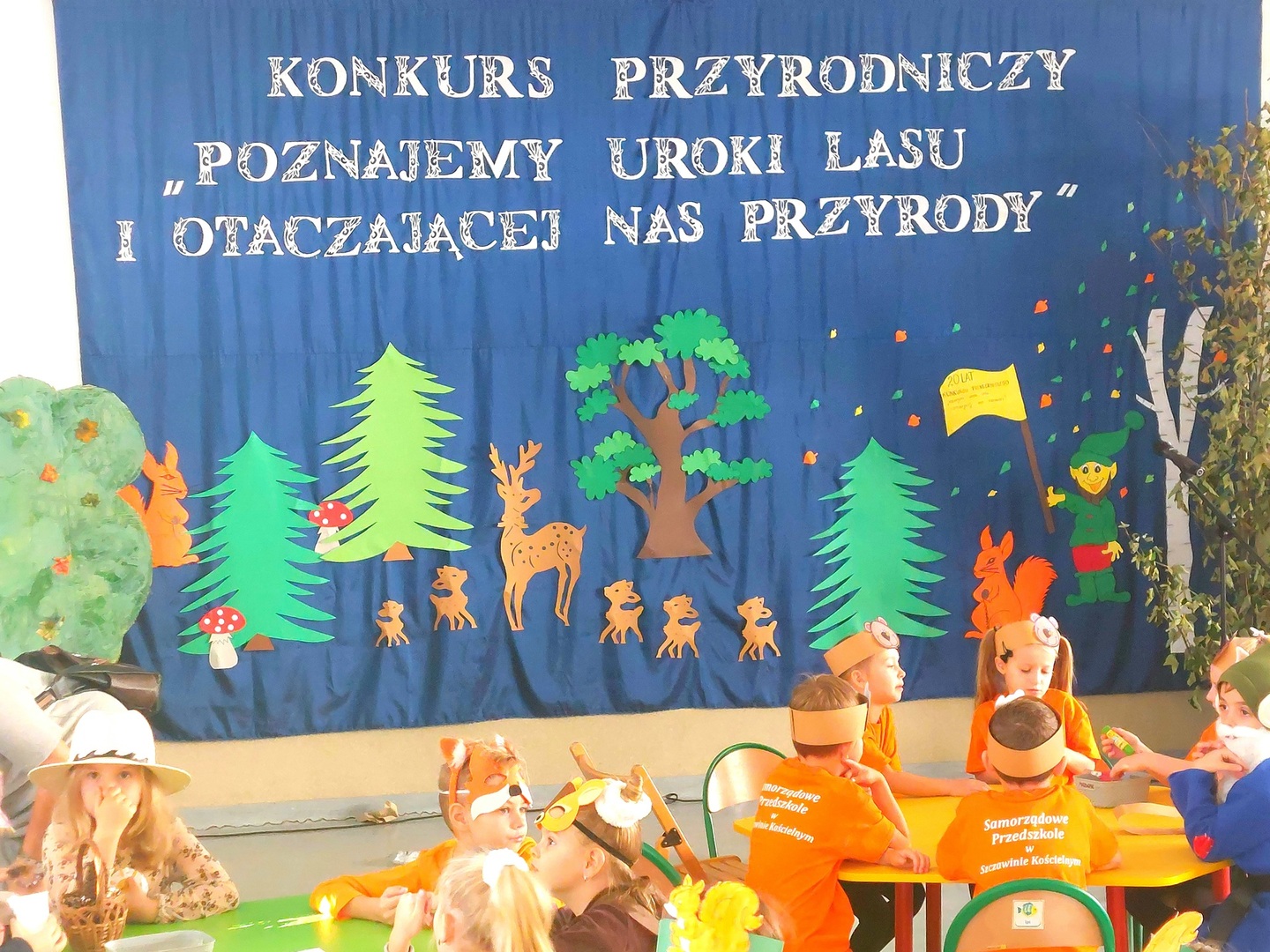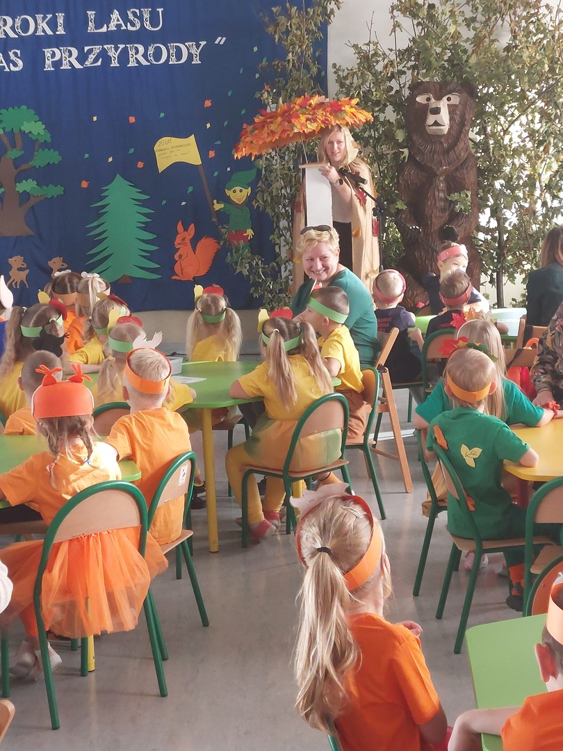 Dziś w Samorządowym Przedszkolu w Szczawinie Kościelnym, w przepięknej leśnej scenografii odbył się powiatowy konkurs przyrodniczy „Poznajemy uroki lasu i tajemnice otaczającej nas przyrody”. Pomysłodawcą i organizatorem konkursu jest Nadleśnictwo Gostynin. W konkursie udział wzięło 15 przedszkoli z powiatów: gostynińskiego i płockiego. Pan Nadleśniczy Jacek Liziniewicz organizator konkursu za cel stawia ,by dzieci biorące udział w konkursie nie tylko powiększyły swoją wiedzę o lesie, ale również uczyły się szacunku do rodzimej przyrody. Mali finaliści zmierzyli się z zestawami pytań o tematyce przyrodniczo-leśnej. Zaproszeni goście z podziwem i uznaniem obserwowali zmagania przedszkolaków. Pytania były trudne i wymagały od dzieci dużej wiedzy. Wszystkie drużyny wykazały się bezbłędnością w rozwiązywaniu zagadek przyrodniczych. W wyniku czego Komisja Konkursu, której przewodniczyli Burmistrz Miasta i Gminy Gostynin i Nadleśniczy Pan Jacek Liziniewicz, przyznała jedenaście równoważnych wyróżnień. Każdy „mały” uczestnik konkursu otrzymał upomnek leśny, a poszczególne przedszkola otrzymały nagrody rzeczowe w postaci drukarek i głośników. Każda z grup zaprezentowała swoje przedszkole piosenką - poniżej znajduje się krótki filmik z przepięknego występu dziewczynek. Nasze przedszkole godnie reprezentowały: Maja Buchner, Lena Bieniek, Liliana Szulczewska, Maja Nadrowska i Zuzanna Żółtowska. Słowa uznania należą się Pani Dorocie Sudomir, która przygotowała nasze przedszkolaczki. Serdecznie dziękujemy za zaproszenie i do zobaczenia za rok!
