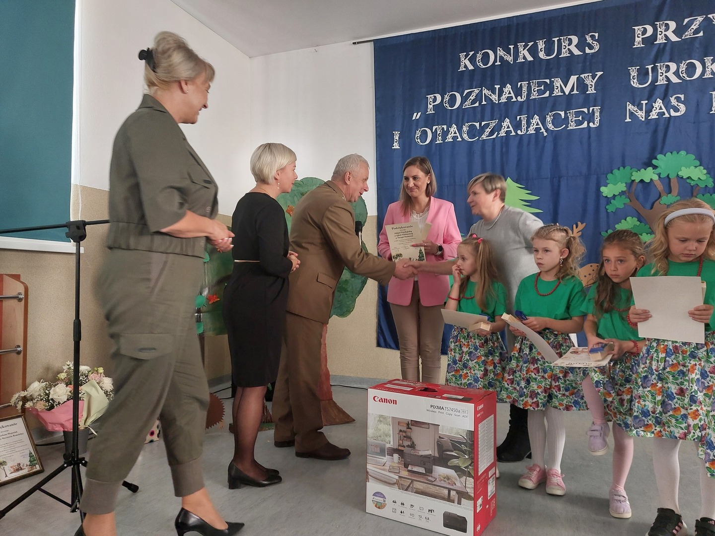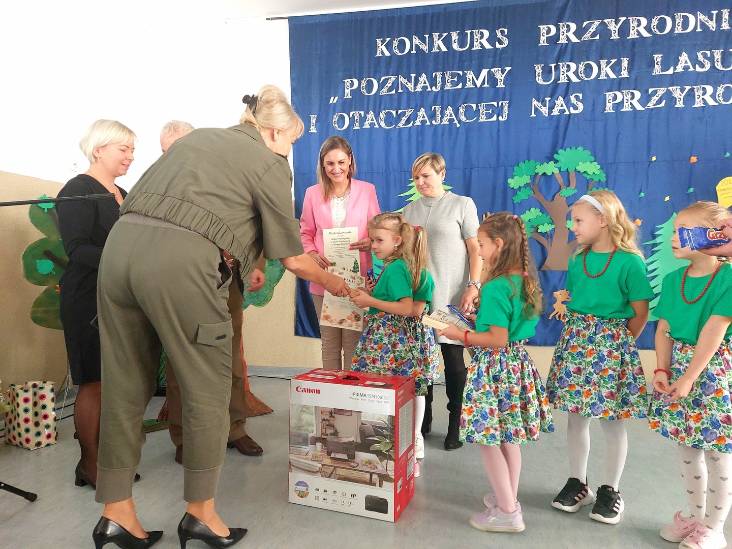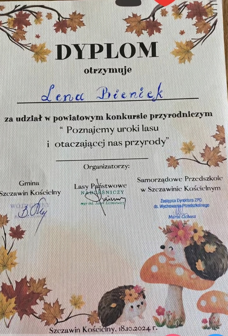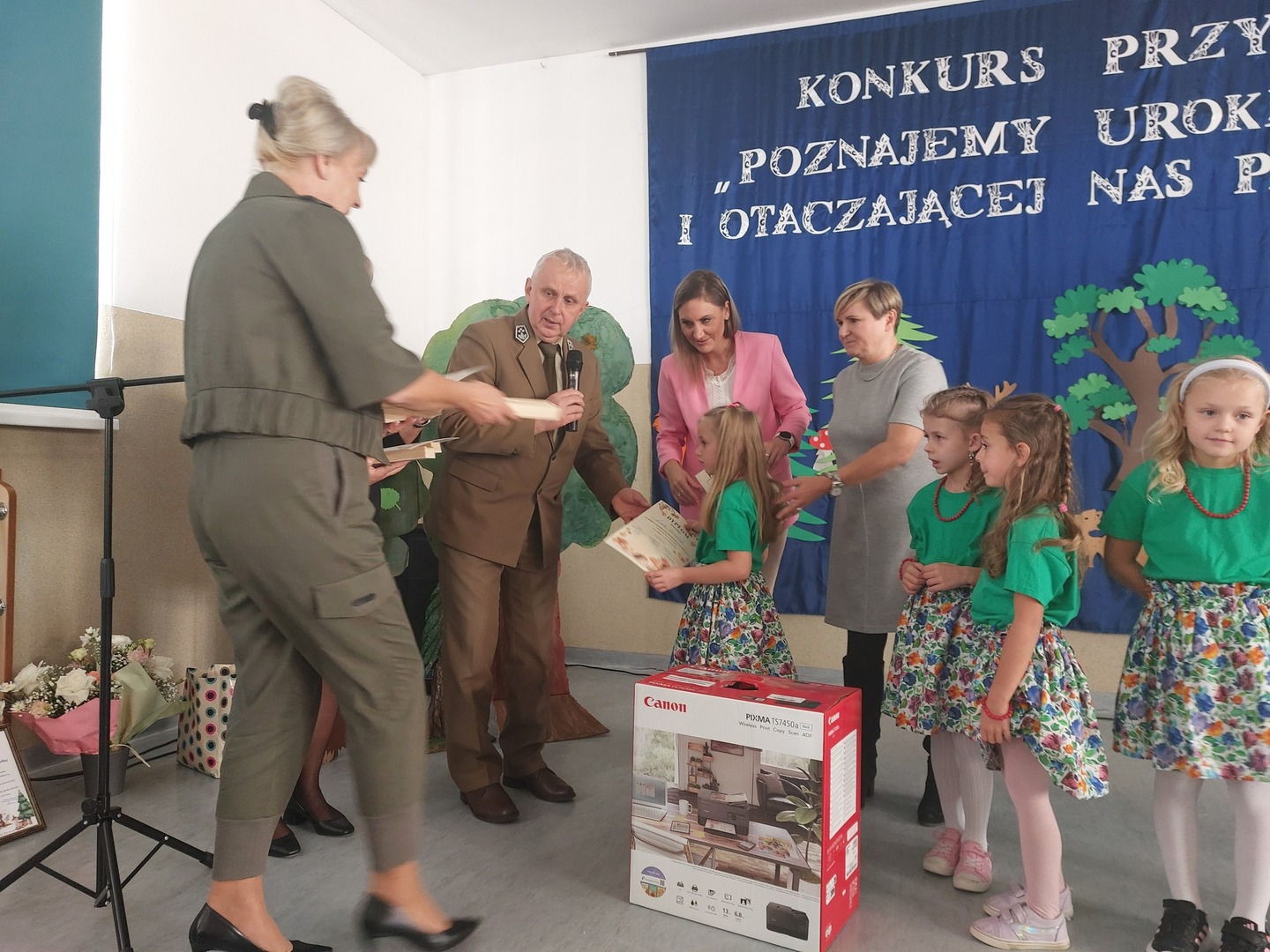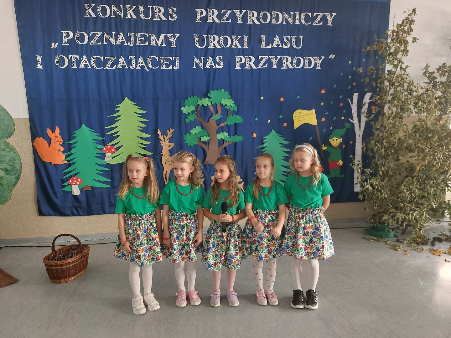 Dziś w Samorządowym Przedszkolu w Szczawinie Kościelnym, w przepięknej leśnej scenografii odbył się powiatowy konkurs przyrodniczy „Poznajemy uroki lasu i tajemnice otaczającej nas przyrody”. Pomysłodawcą i organizatorem konkursu jest Nadleśnictwo Gostynin. W konkursie udział wzięło 15 przedszkoli z powiatów: gostynińskiego i płockiego. Pan Nadleśniczy Jacek Liziniewicz organizator konkursu za cel stawia ,by dzieci biorące udział w konkursie nie tylko powiększyły swoją wiedzę o lesie, ale również uczyły się szacunku do rodzimej przyrody. Mali finaliści zmierzyli się z zestawami pytań o tematyce przyrodniczo-leśnej. Zaproszeni goście z podziwem i uznaniem obserwowali zmagania przedszkolaków. Pytania były trudne i wymagały od dzieci dużej wiedzy. Wszystkie drużyny wykazały się bezbłędnością w rozwiązywaniu zagadek przyrodniczych. W wyniku czego Komisja Konkursu, której przewodniczyli Burmistrz Miasta i Gminy Gostynin i Nadleśniczy Pan Jacek Liziniewicz, przyznała jedenaście równoważnych wyróżnień. Każdy „mały” uczestnik konkursu otrzymał upomnek leśny, a poszczególne przedszkola otrzymały nagrody rzeczowe w postaci drukarek i głośników. Każda z grup zaprezentowała swoje przedszkole piosenką - poniżej znajduje się krótki filmik z przepięknego występu dziewczynek. Nasze przedszkole godnie reprezentowały: Maja Buchner, Lena Bieniek, Liliana Szulczewska, Maja Nadrowska i Zuzanna Żółtowska. Słowa uznania należą się Pani Dorocie Sudomir, która przygotowała nasze przedszkolaczki. Serdecznie dziękujemy za zaproszenie i do zobaczenia za rok!