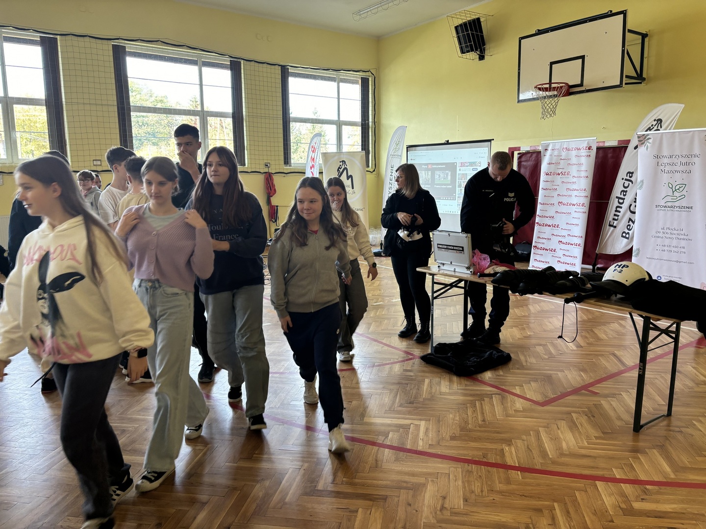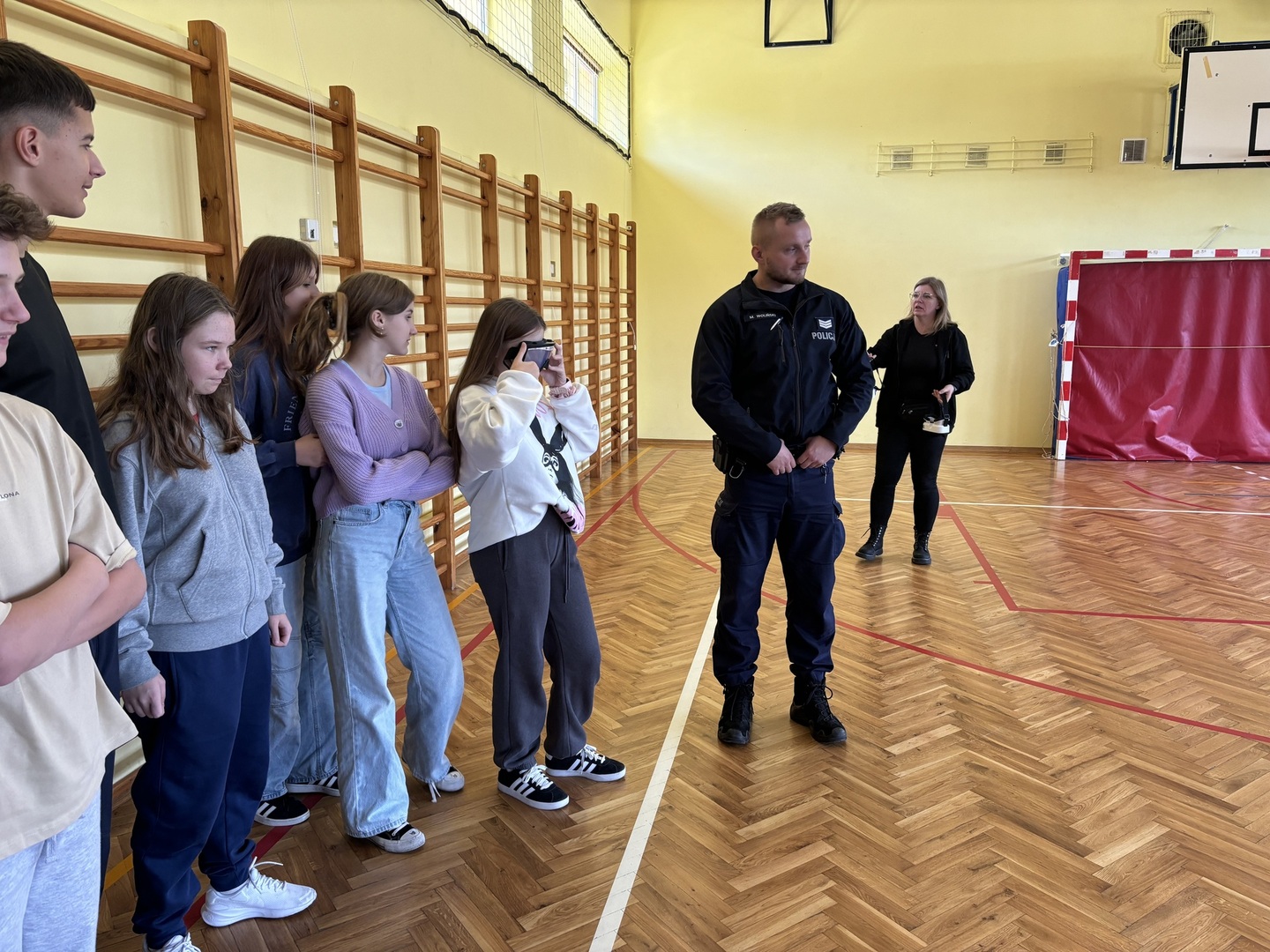 21.10.2024 r. odbyły się w naszej szkole zajęcia profilaktyczne z Policją dla klas IV-VIII na temat bezpiecznego internetu. Uczniowie obejrzeli filmiki o cyberprzestępczości i anonimowości w sieci, aby zrozumieć, jak chronić swoje dane i bezpiecznie korzystać z Internetu. Uczniowie mieli również możliwośc przetestowania alko- i narko-gogli, dzięki którym przekonali się jak różne substancje zaburzają percepcję człowieka. Dziękujemy "Fundacji bez Granic " za ufundowanie poczęstunku dla dzieci.