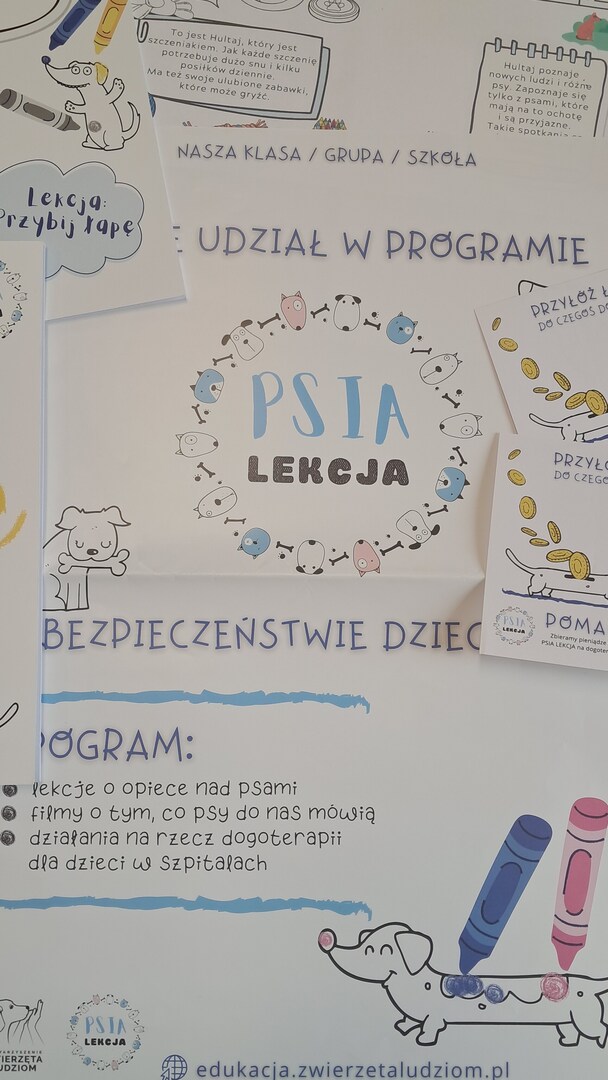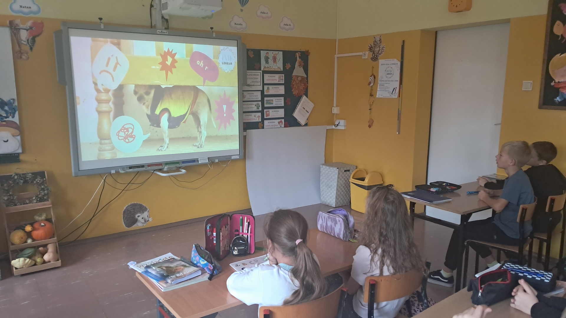 Uczniowie klasy III przystąpili do nowego programu edukacyjnego „Psia lekcja” Stowarzyszenia Zwierzęta Ludziom. Program wprowadza uczniów w zagadnienia opieki nad psami, komunikacji psów i o tym jak zachowywać się bezpiecznie przy psie. Zajęcia lekcyjne i działania dostosowane są do wieku uczniów szkoły podstawowej.