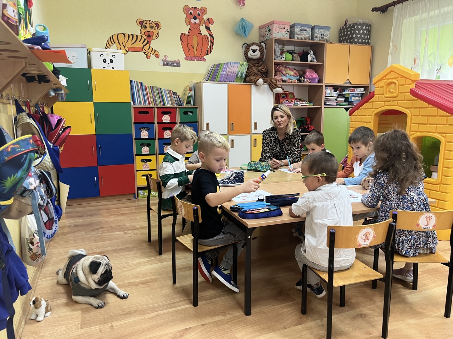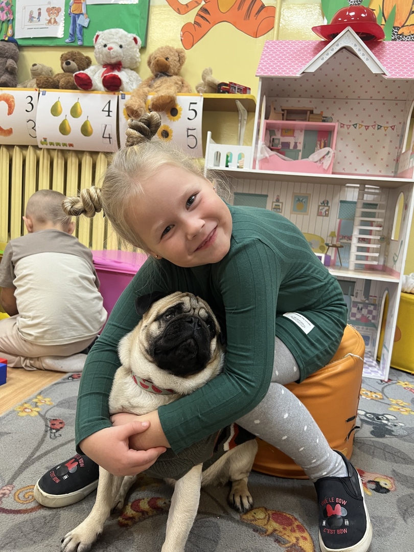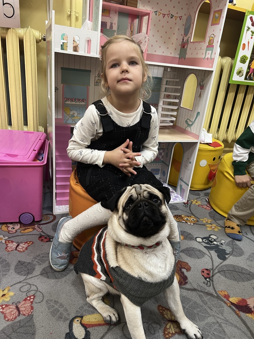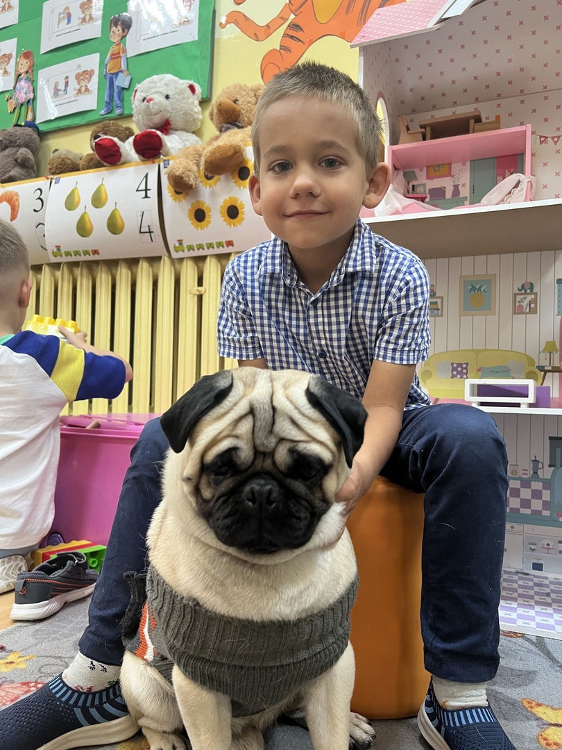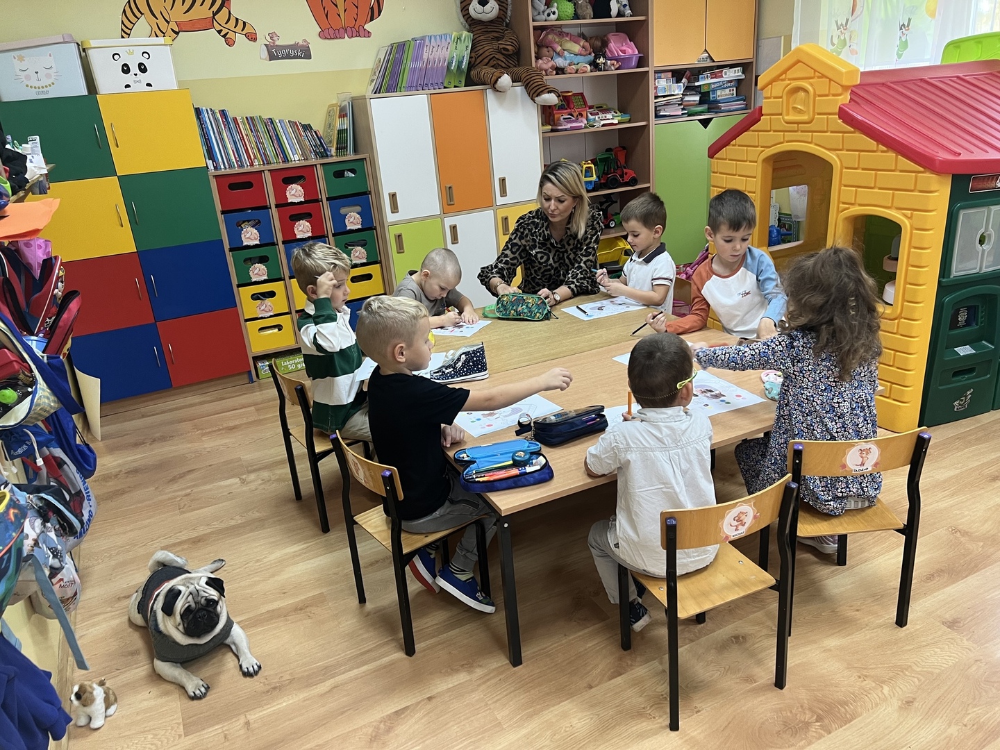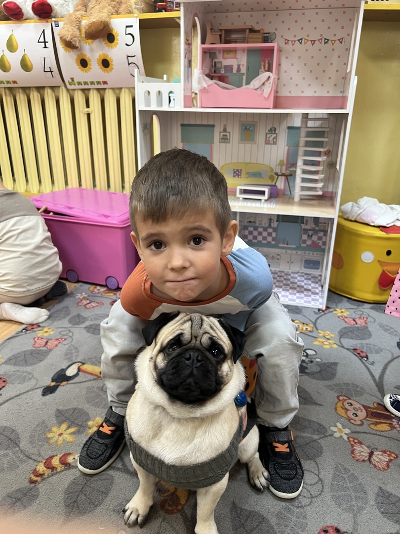 Tego dnia w naszym przedszkolu gościliśmy wspaniałych gości, a mianowicie odwiedziła nas Pani Karolina Suwała ze swoim psem Melem. Mel to pies rasy MOPS, jest to bardzo miły i przyjazny pies o czym przekonały się dzieci głaszcząc go i pozując do zdjęć. Pani Karolina opowiedziała nam o umiejętnościach jakie posiada jej pies, jak należy opiekować się psem, czym karmić i jak spędzać z nim czas. Na koniec każdy mógł wyprowadzić Mela na spacer, prowadząc go samodzielnie na smyczy. Bardzo dziękujemy, za tak miłe spotkanie i upominki dla naszych przedszkolaków.