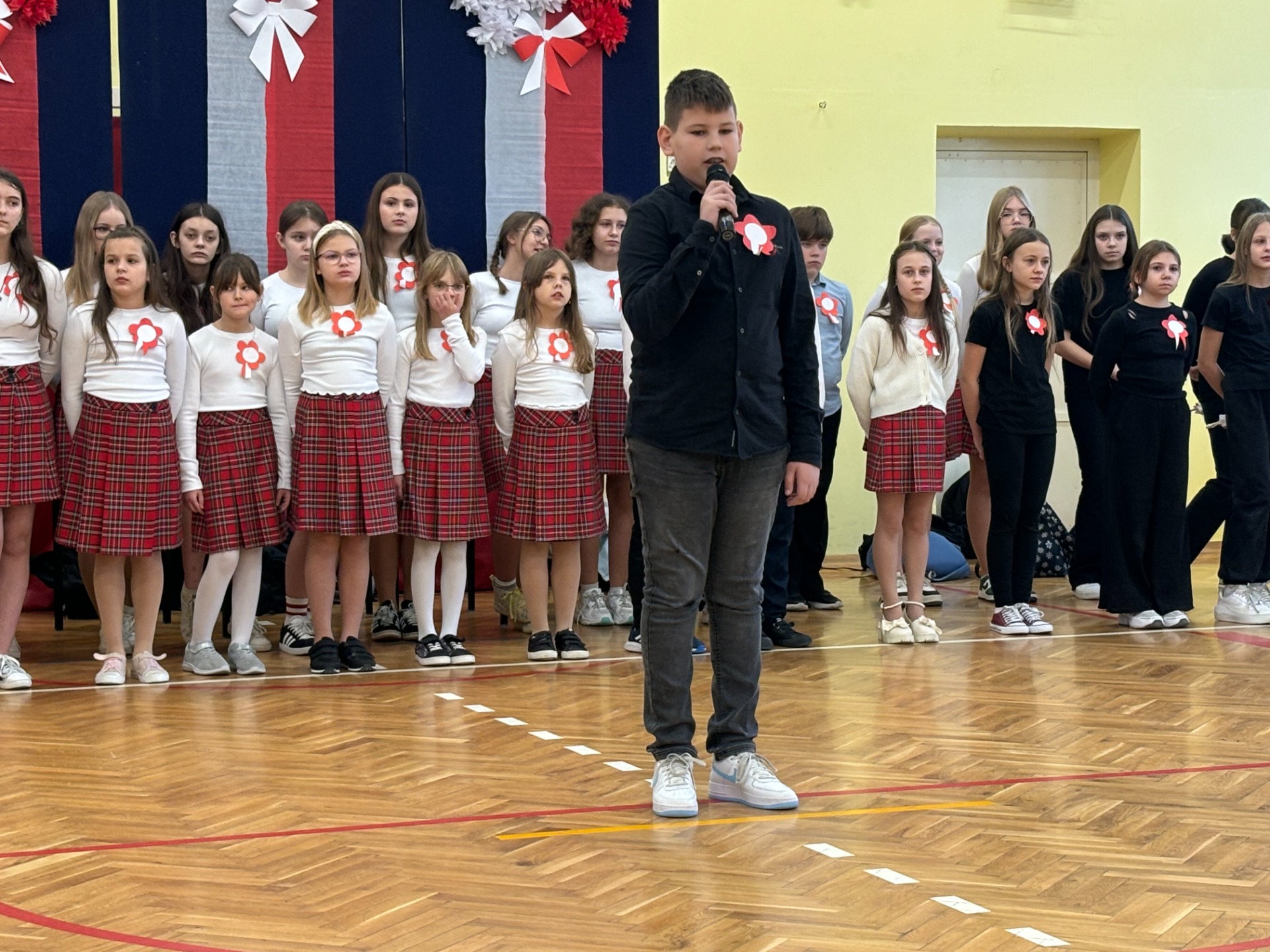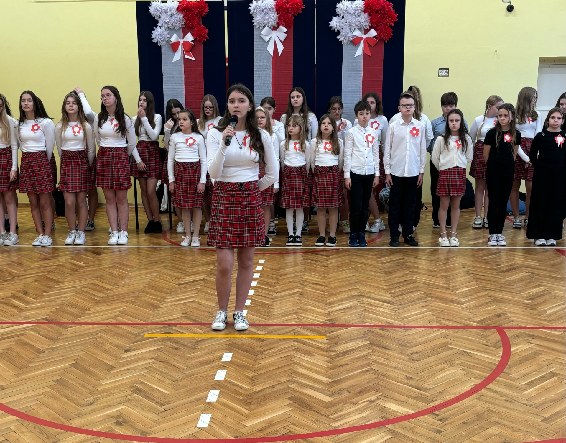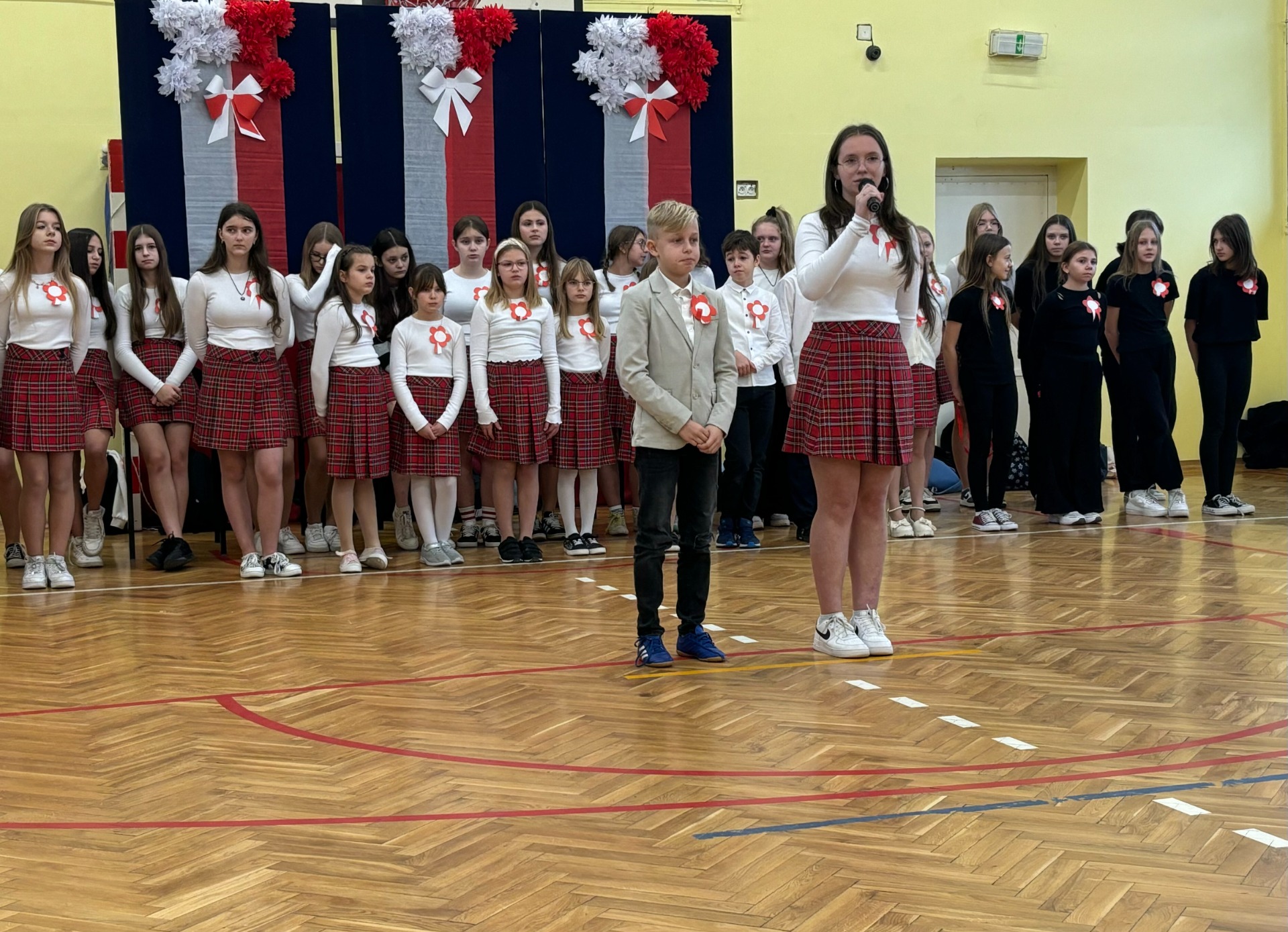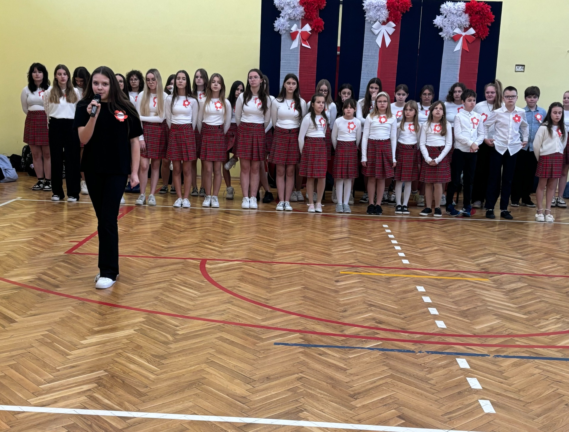 Wszyscy razem zaśpiewaliśmy kilka piosenek patriotycznych, które przygotowała Pani Joanna Dymek. W wykonaniu naszego chóru oraz solistów każda z piosenek brzmiała wyjątkowo.