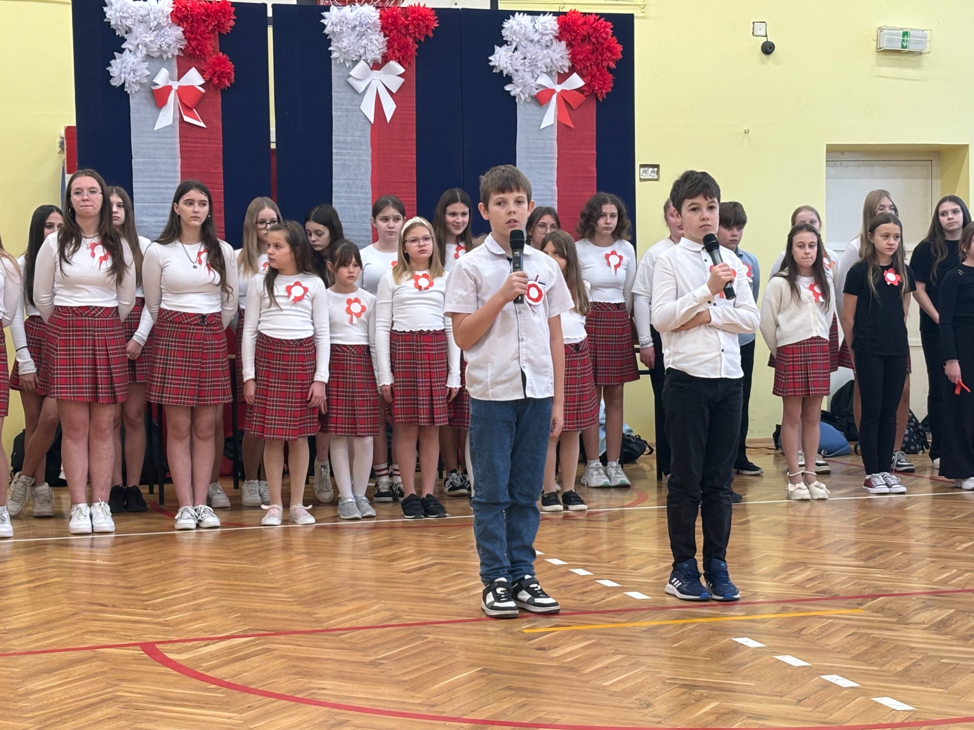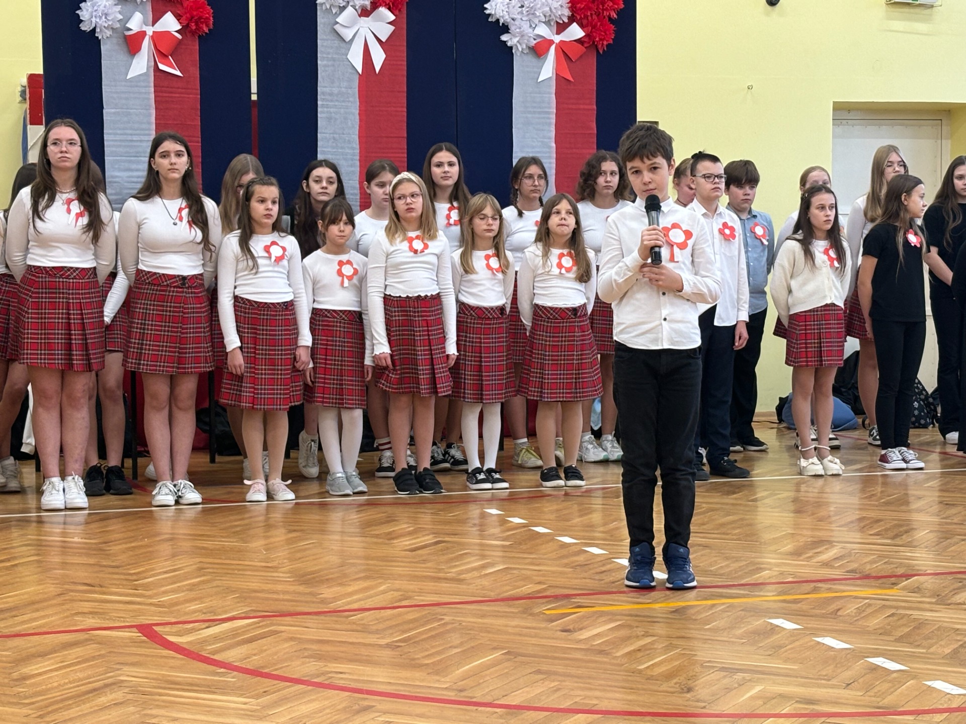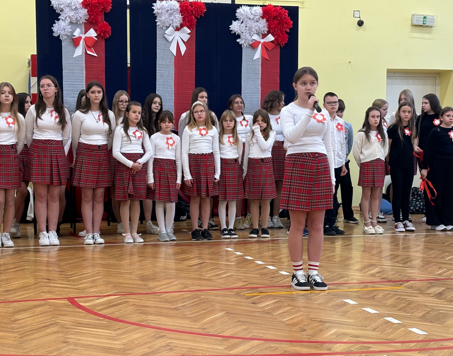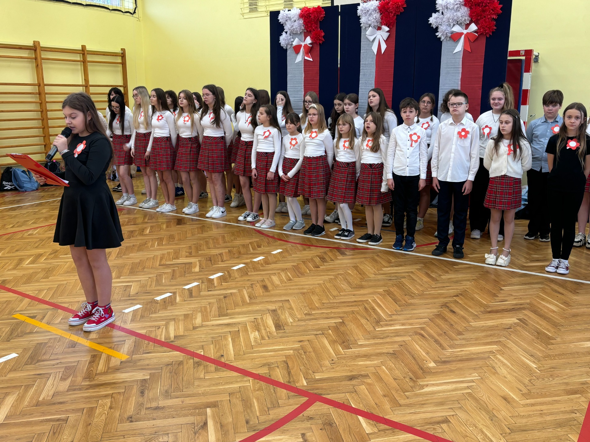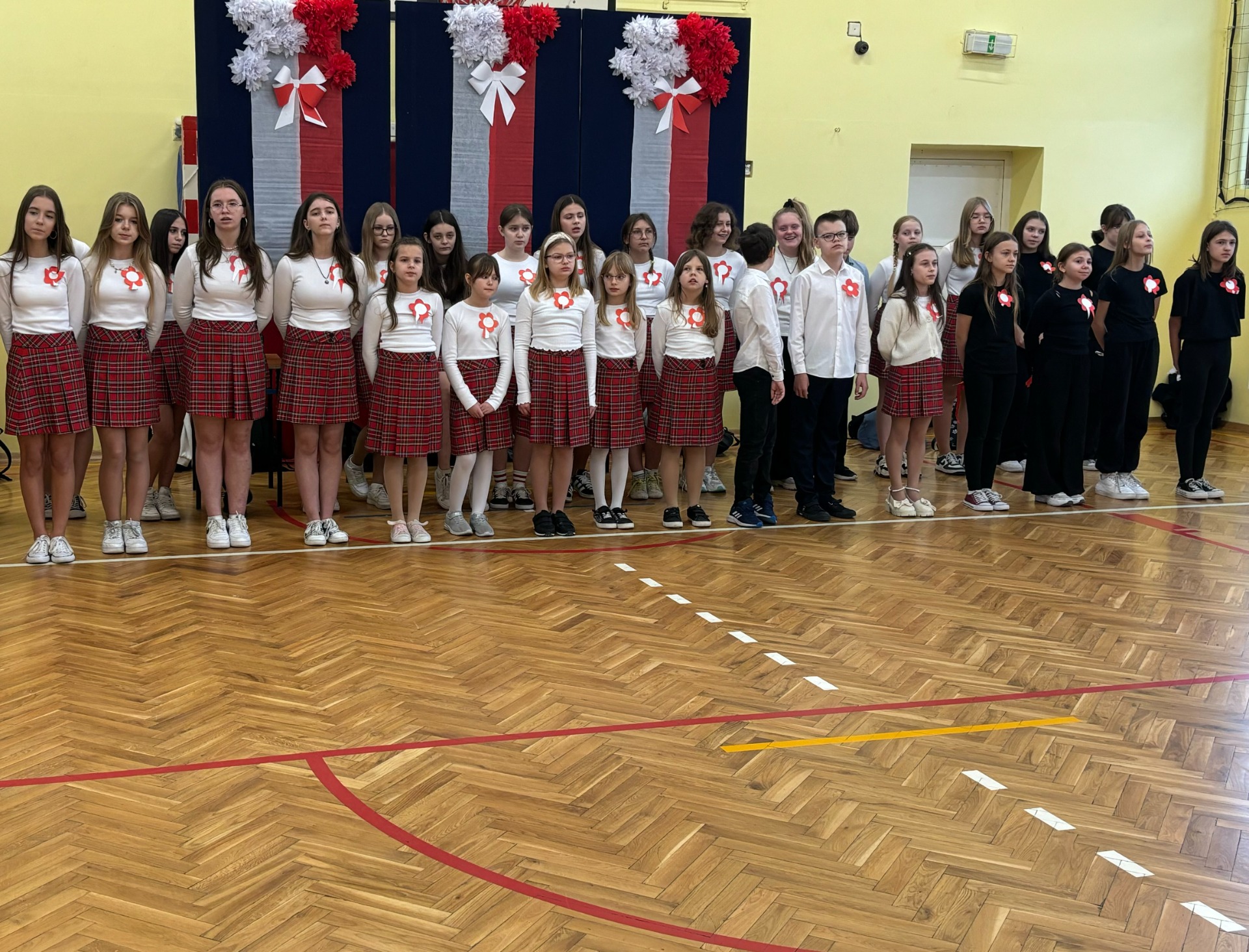 Wszyscy razem zaśpiewaliśmy kilka piosenek patriotycznych, które przygotowała Pani Joanna Dymek. W wykonaniu naszego chóru oraz solistów każda z piosenek brzmiała wyjątkowo.