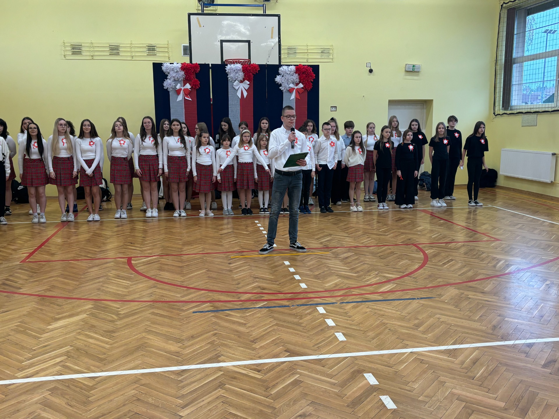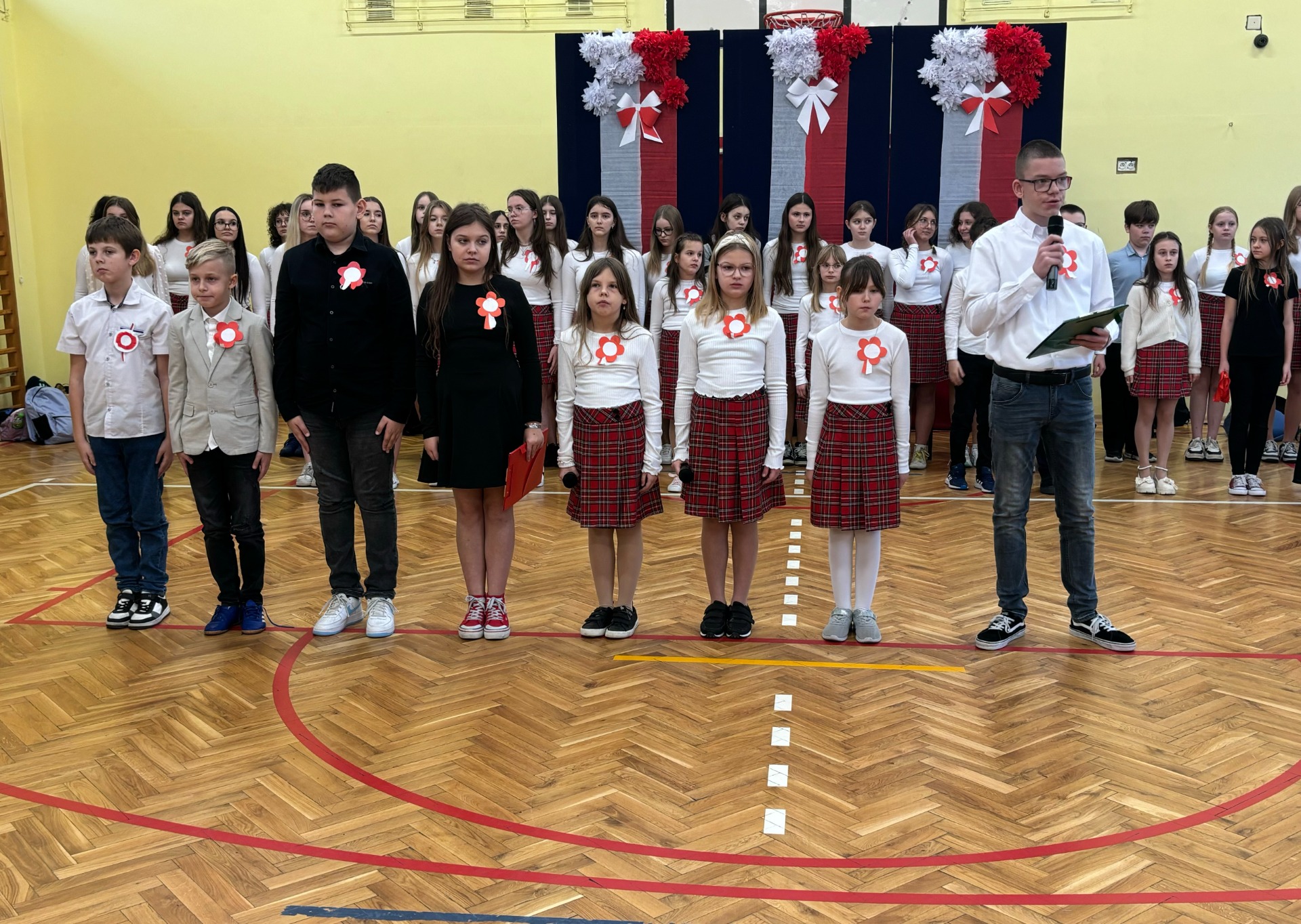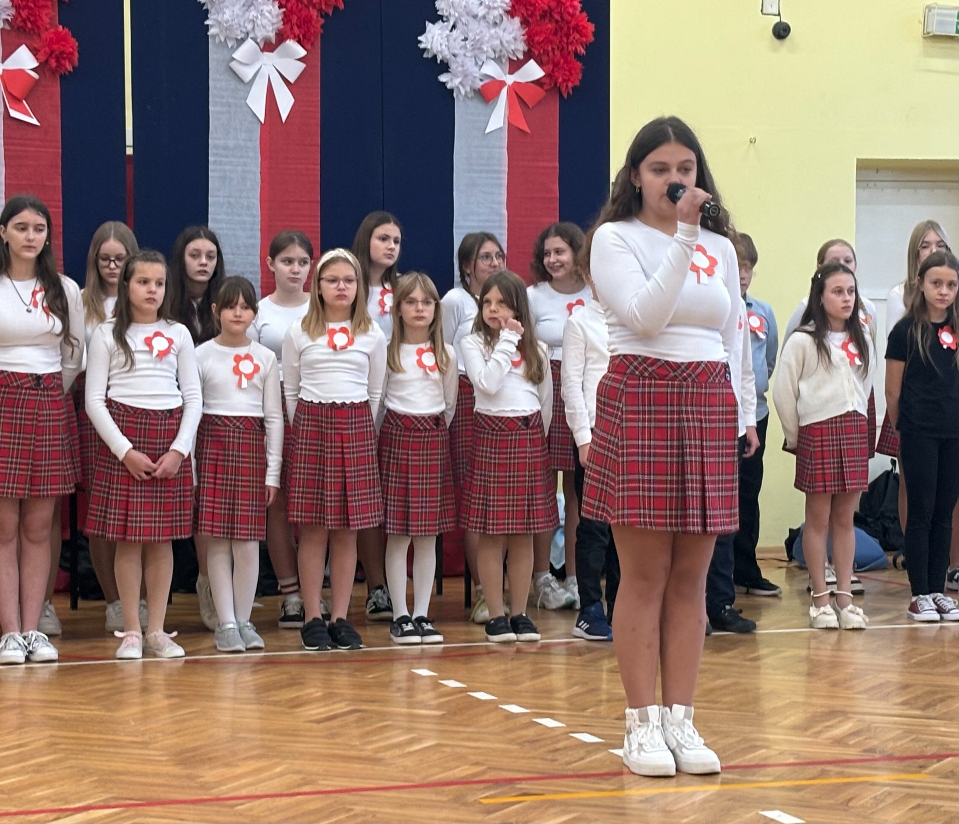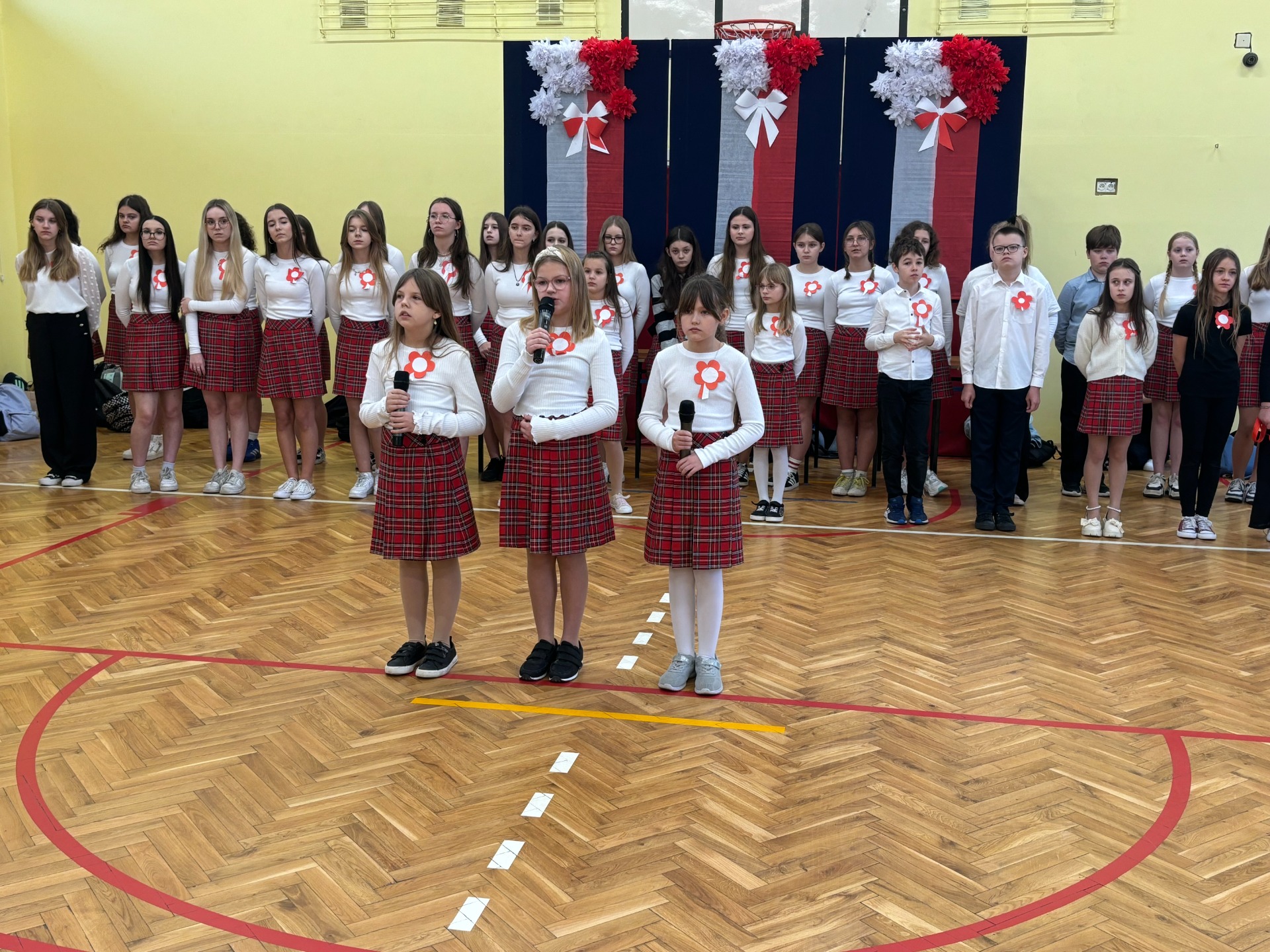 Wszyscy razem zaśpiewaliśmy kilka piosenek patriotycznych, które przygotowała Pani Joanna Dymek. W wykonaniu naszego chóru oraz solistów każda z piosenek brzmiała wyjątkowo.