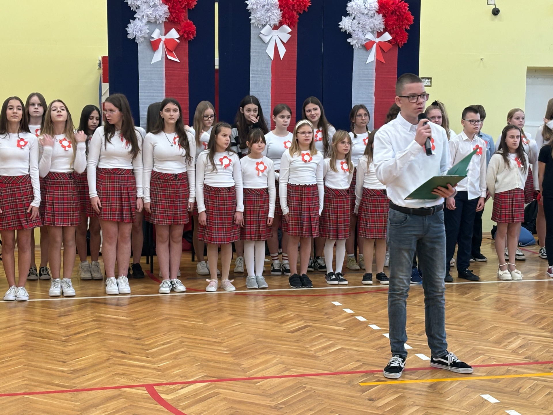 Po odśpiewaniu hymnu państwowego odbyła się część artystyczna na temat historii Polski przygotowana przez Panią Magdalenę Michalik.