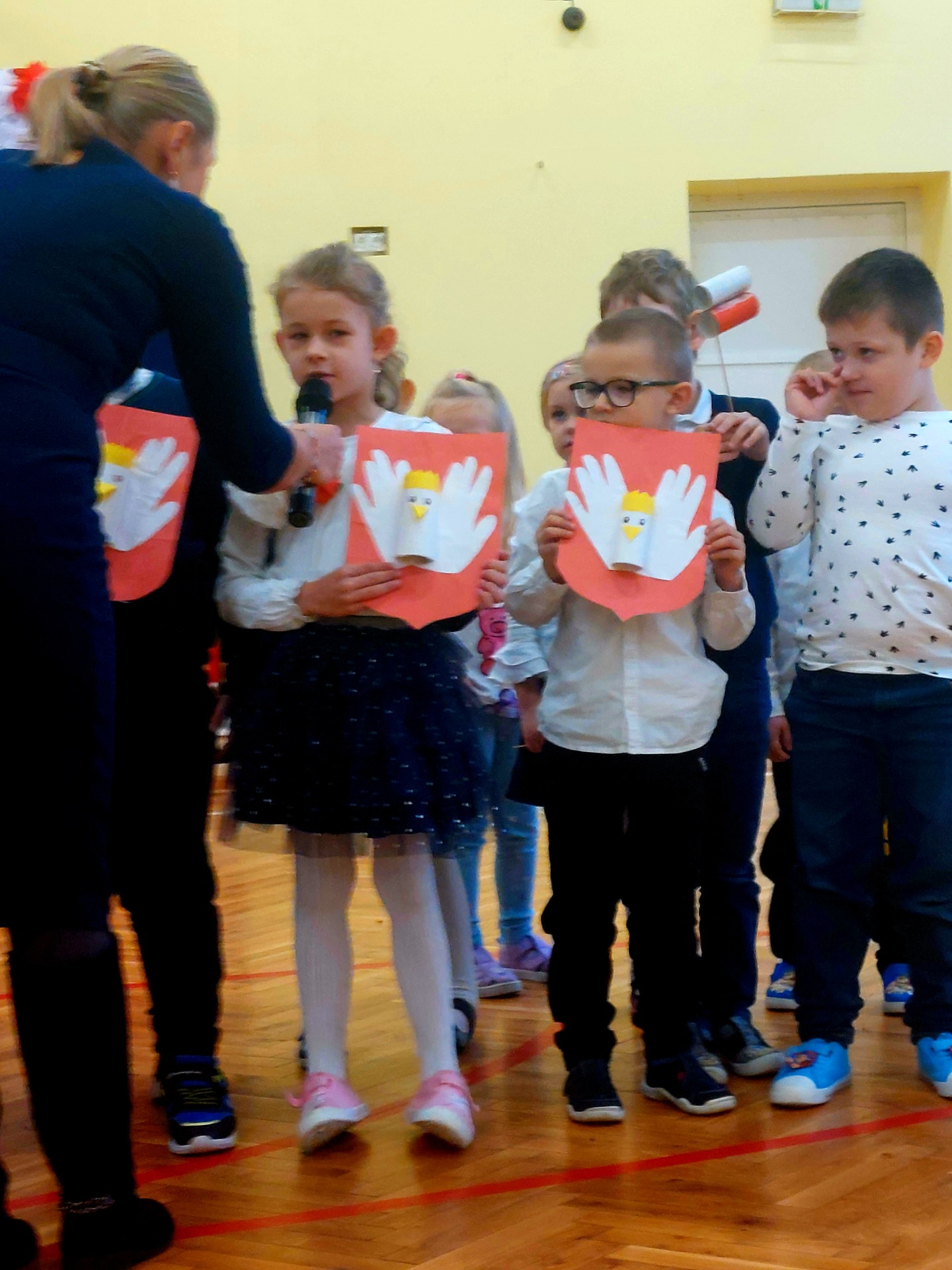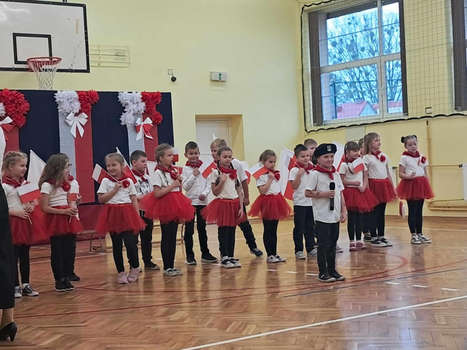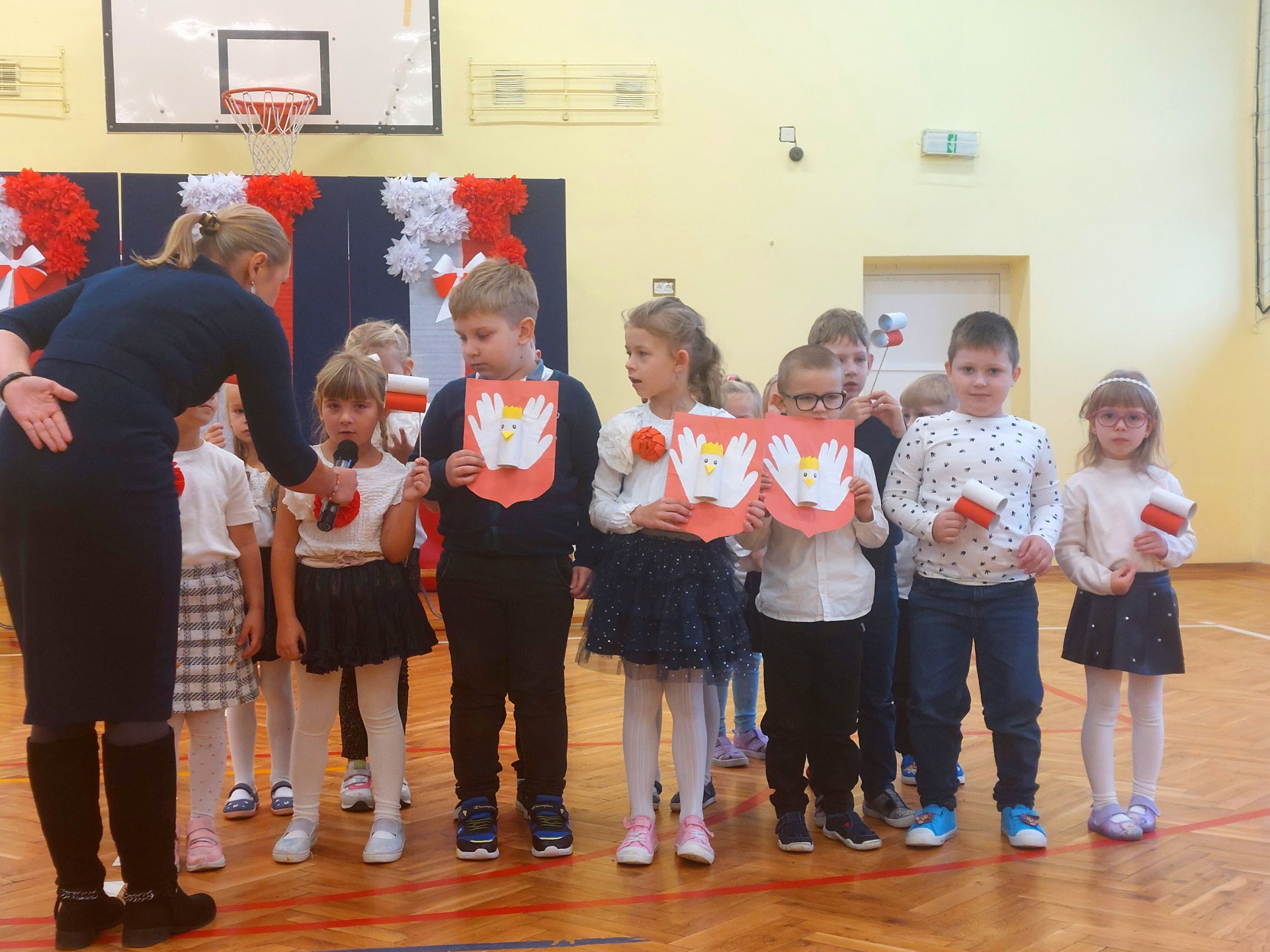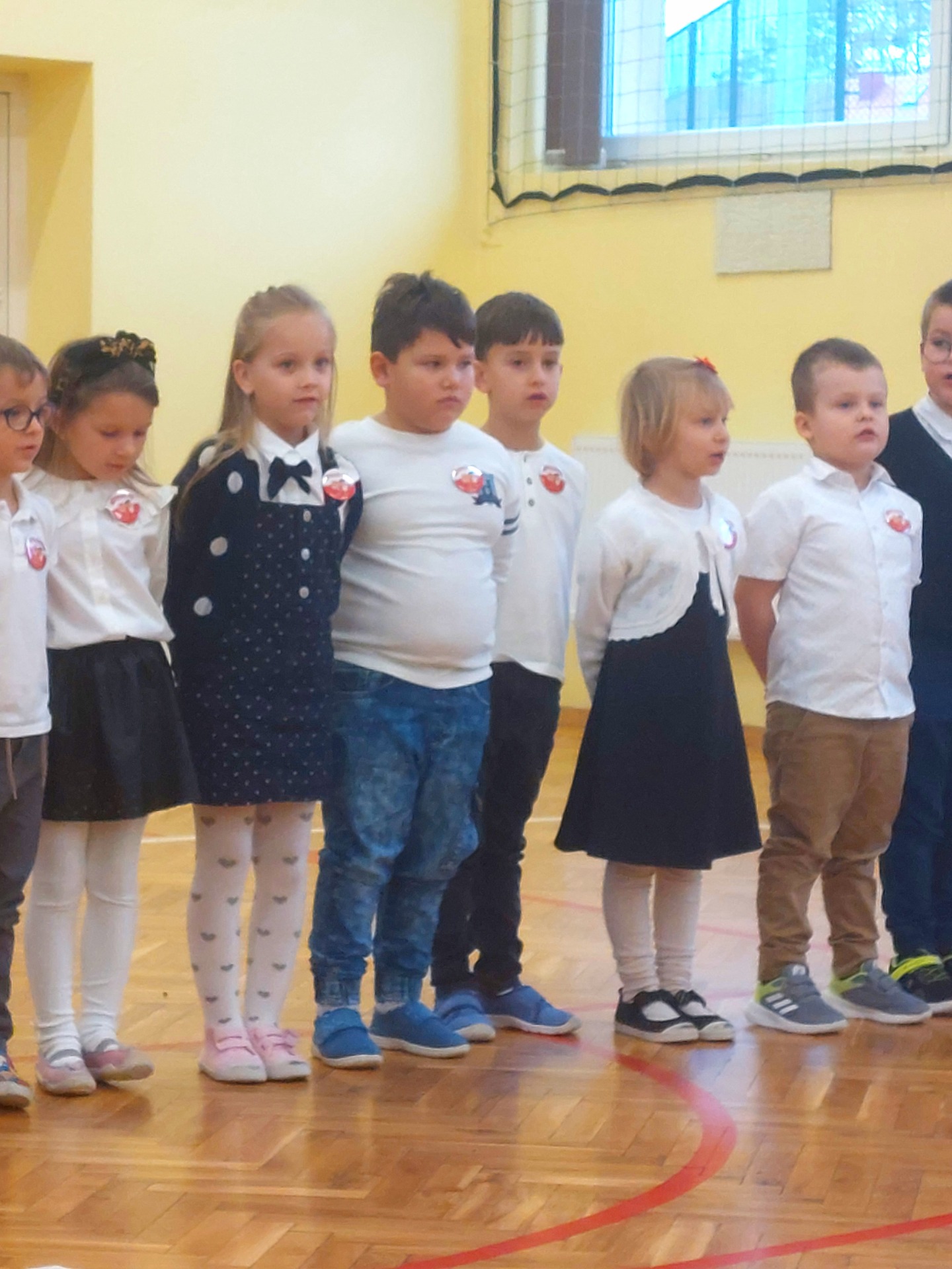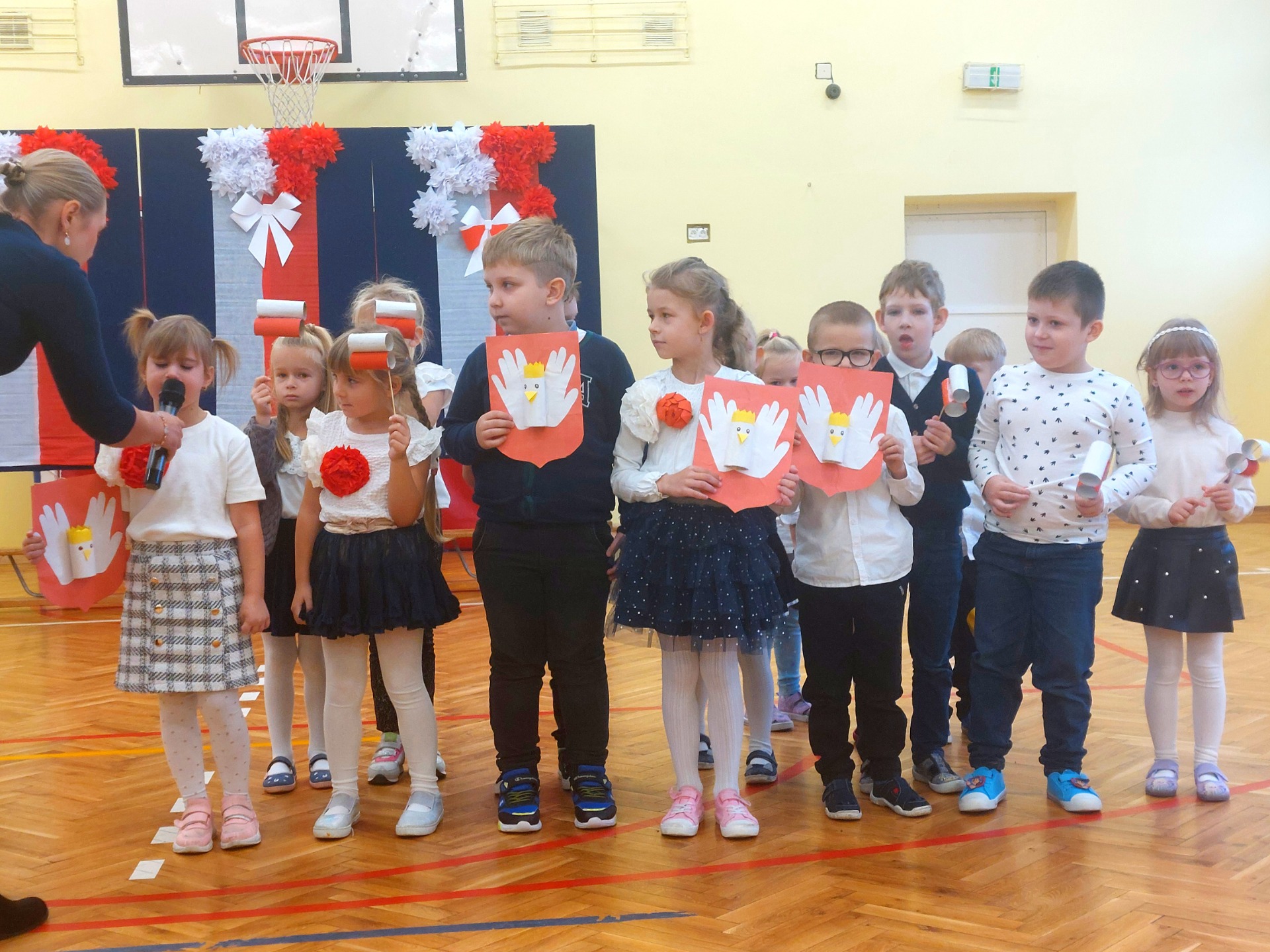 Dziś w naszej szkole na wspólnym apelu z okazji zbliżającego się Święta Niepodległości spotkali się uczniowie klas 0-3.