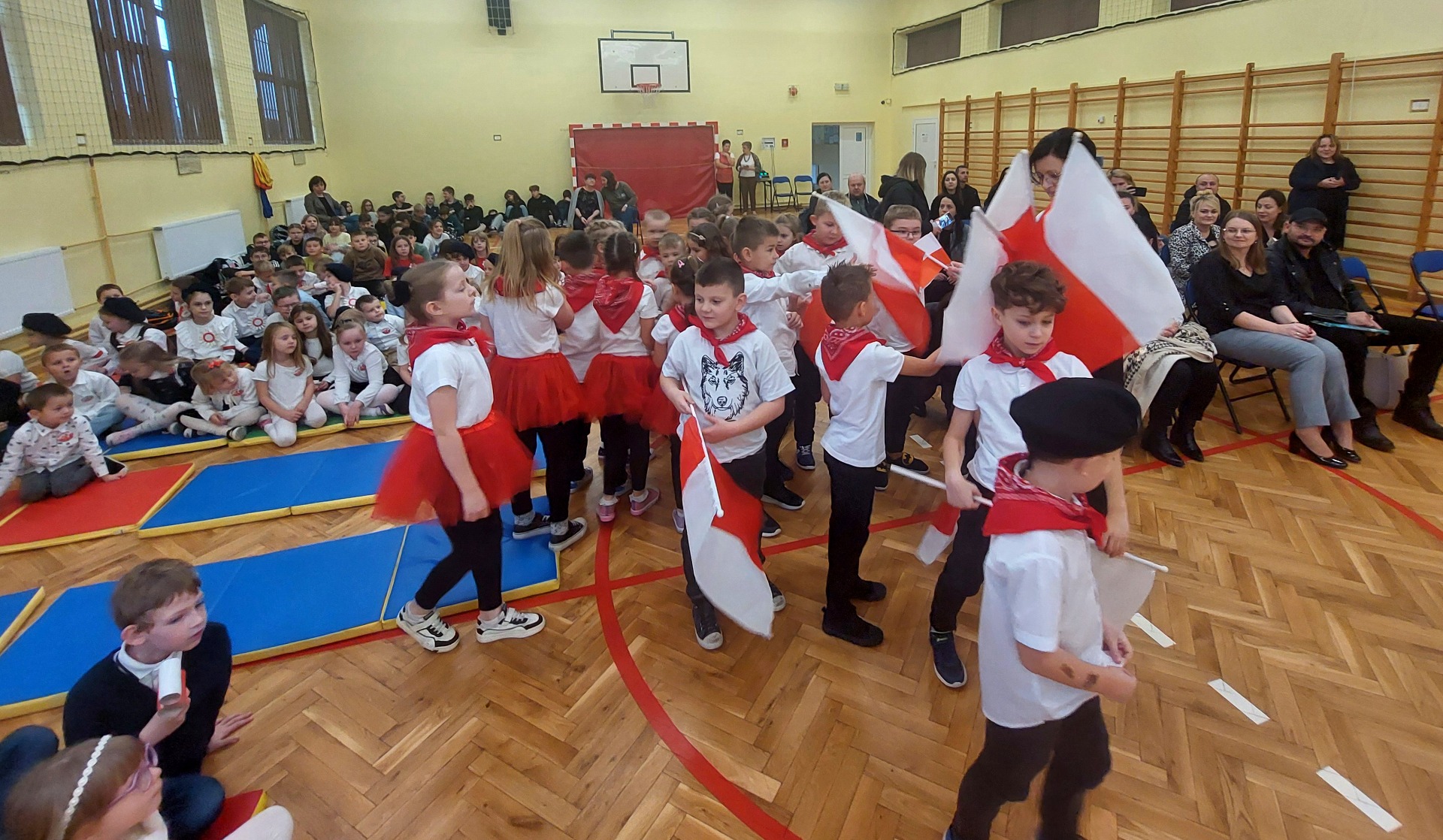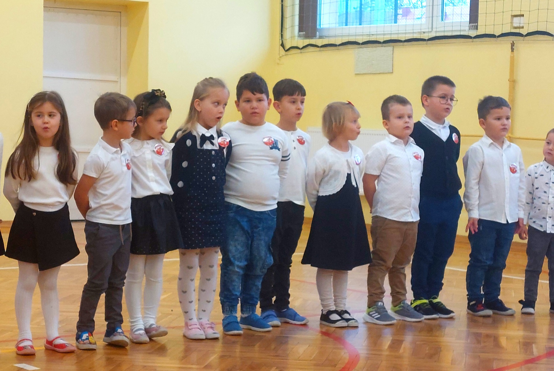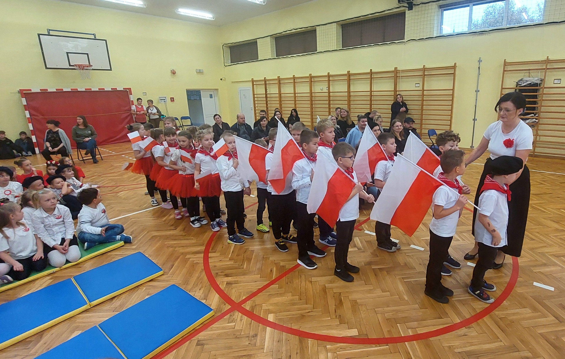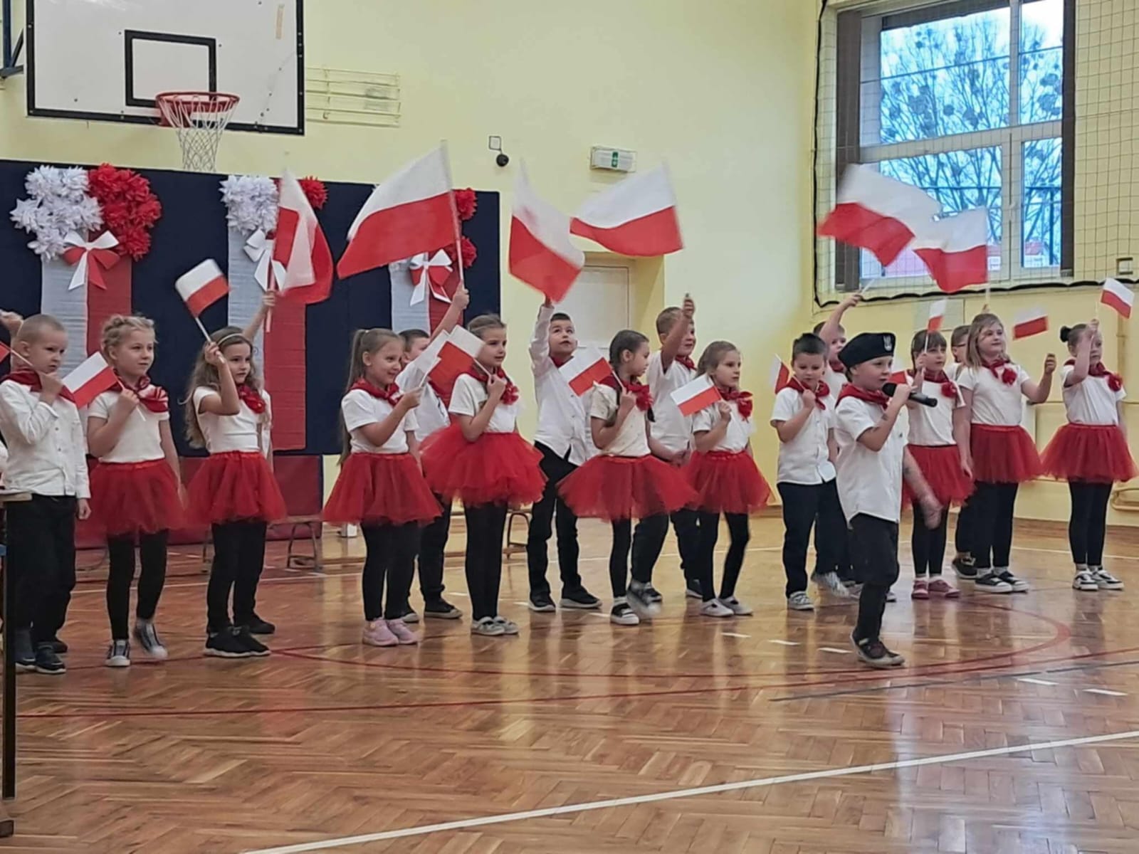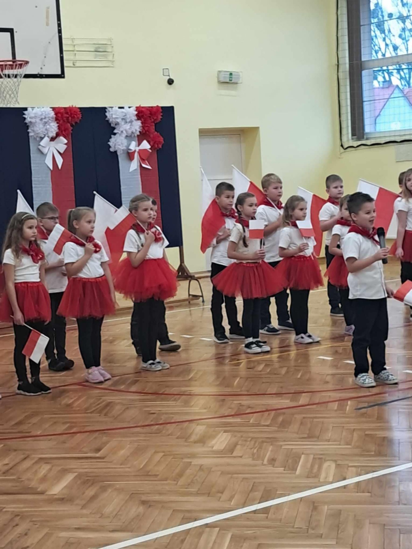Dziś w naszej szkole na wspólnym apelu z okazji zbliżającego się Święta Niepodległości spotkali się uczniowie klas 0-3.