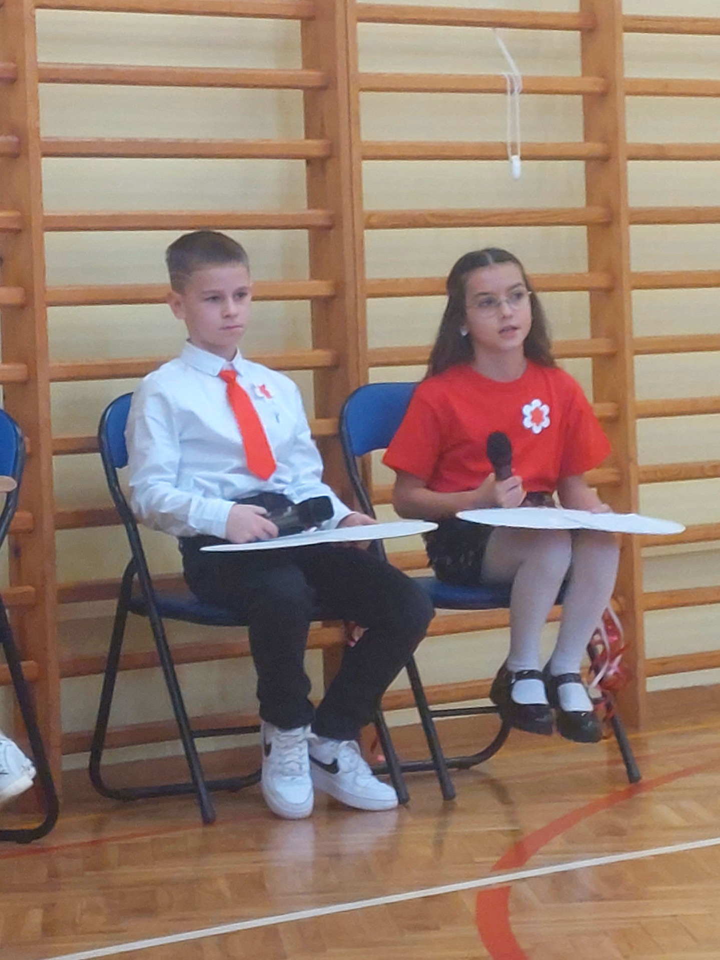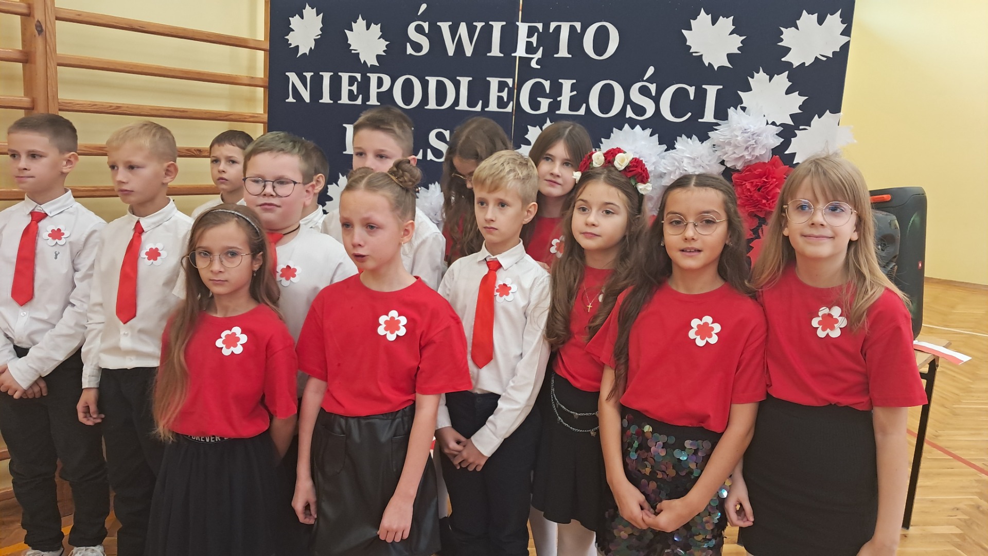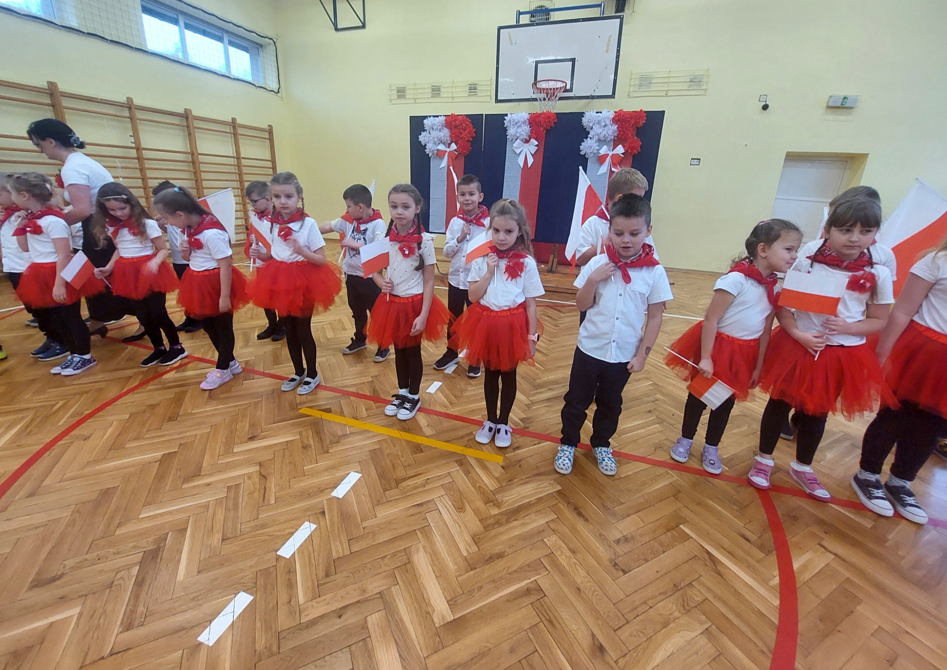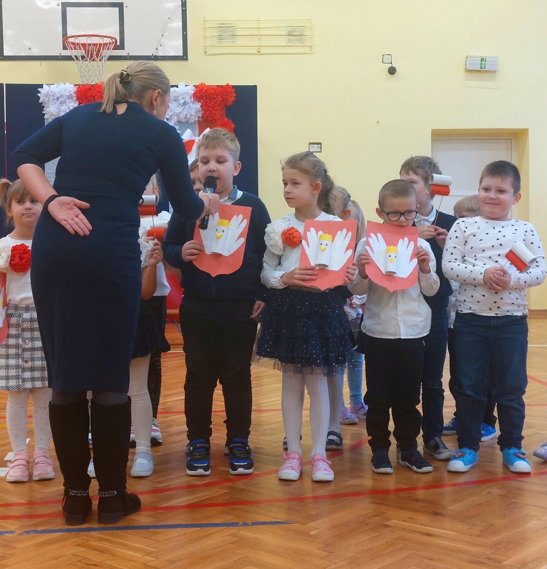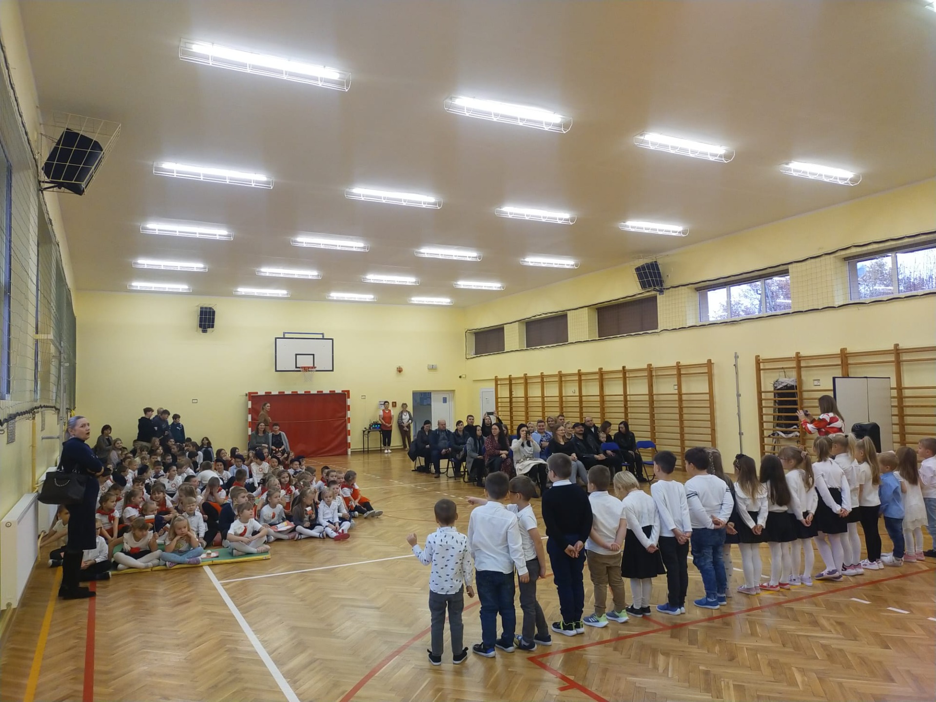 Dziś w naszej szkole na wspólnym apelu z okazji zbliżającego się Święta Niepodległości spotkali się uczniowie klas 0-3.