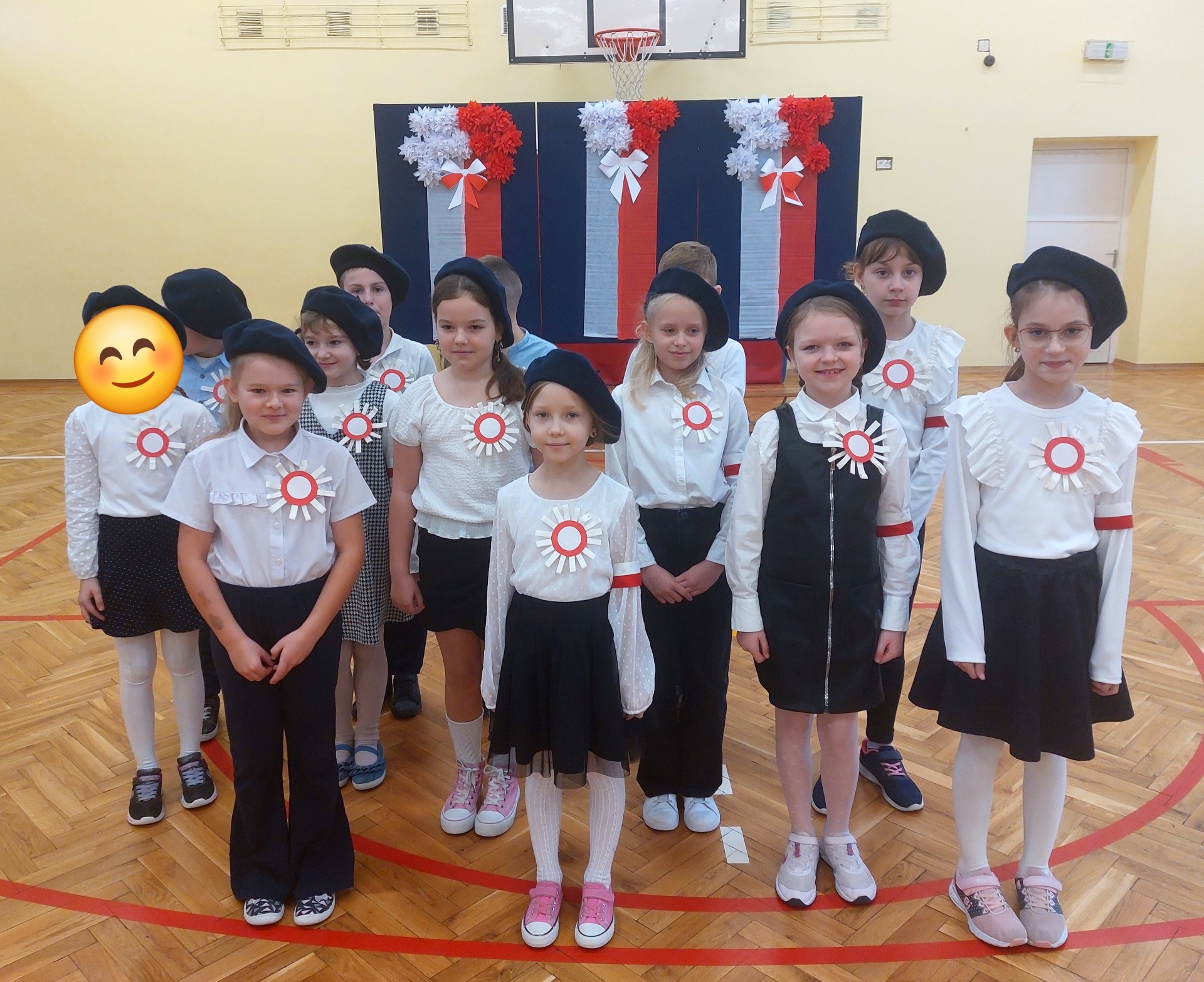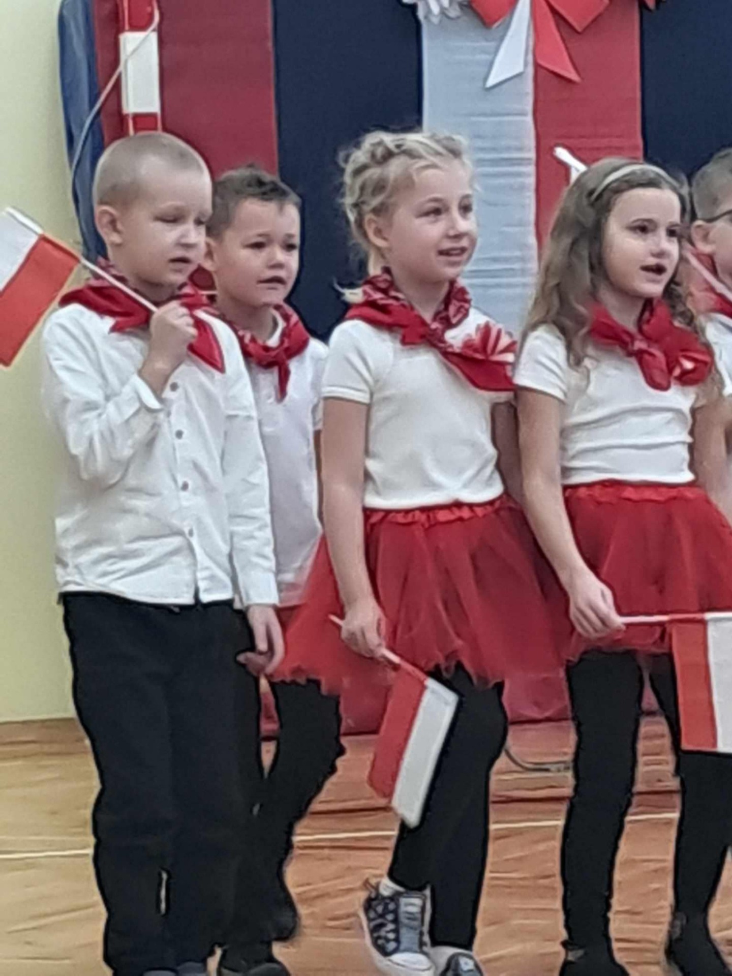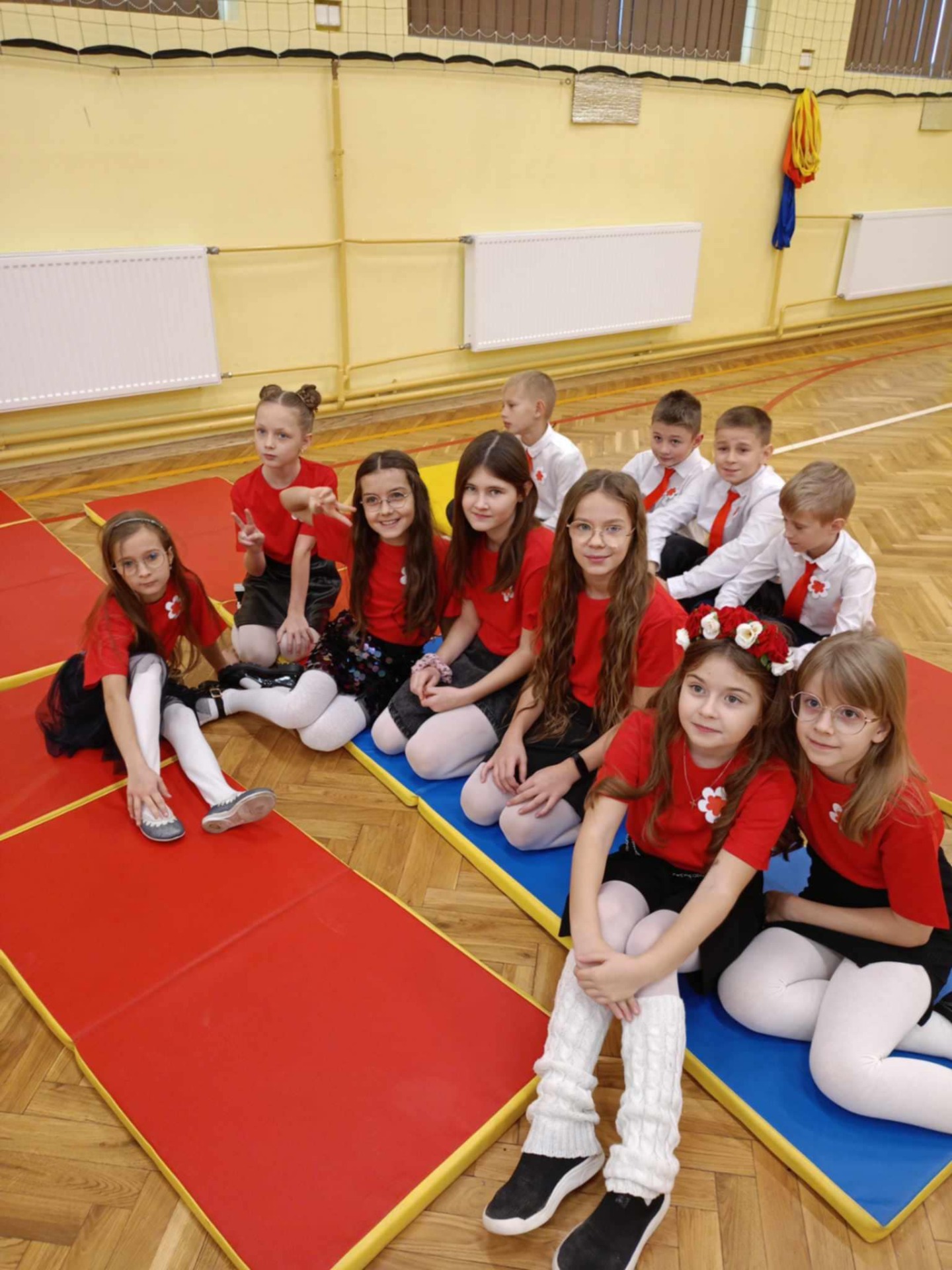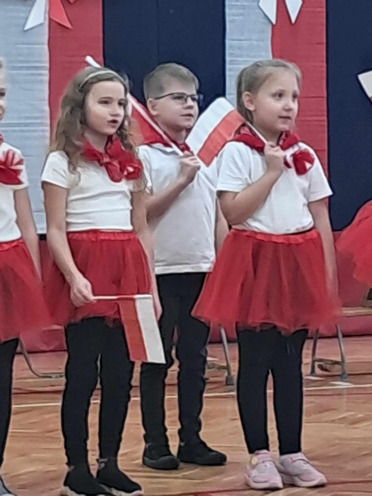 Podczas występów uczniowie śpiewali piosenki patriotyczne, recytowali wiersze i tańczyli. Barwne i podniosłe widowisko obejrzeli także z nami zaproszeni Rodzice.