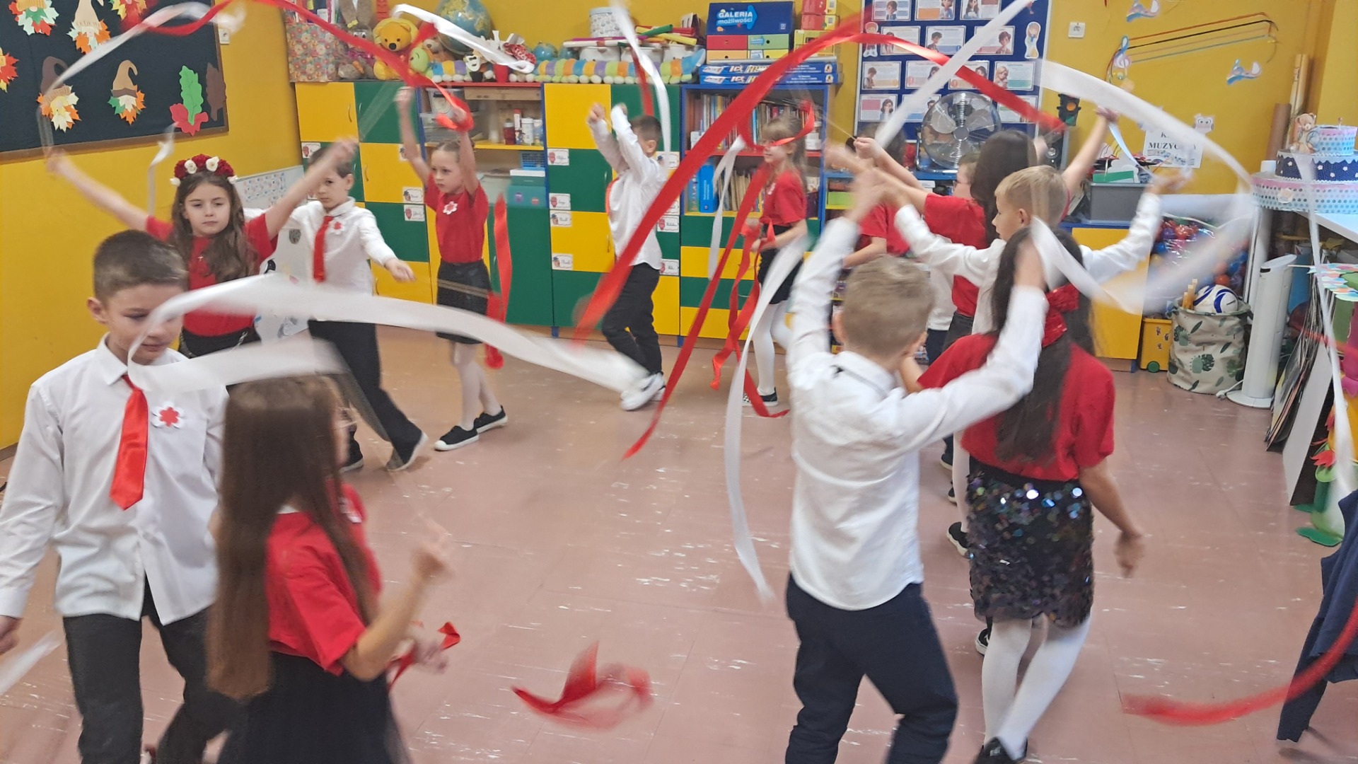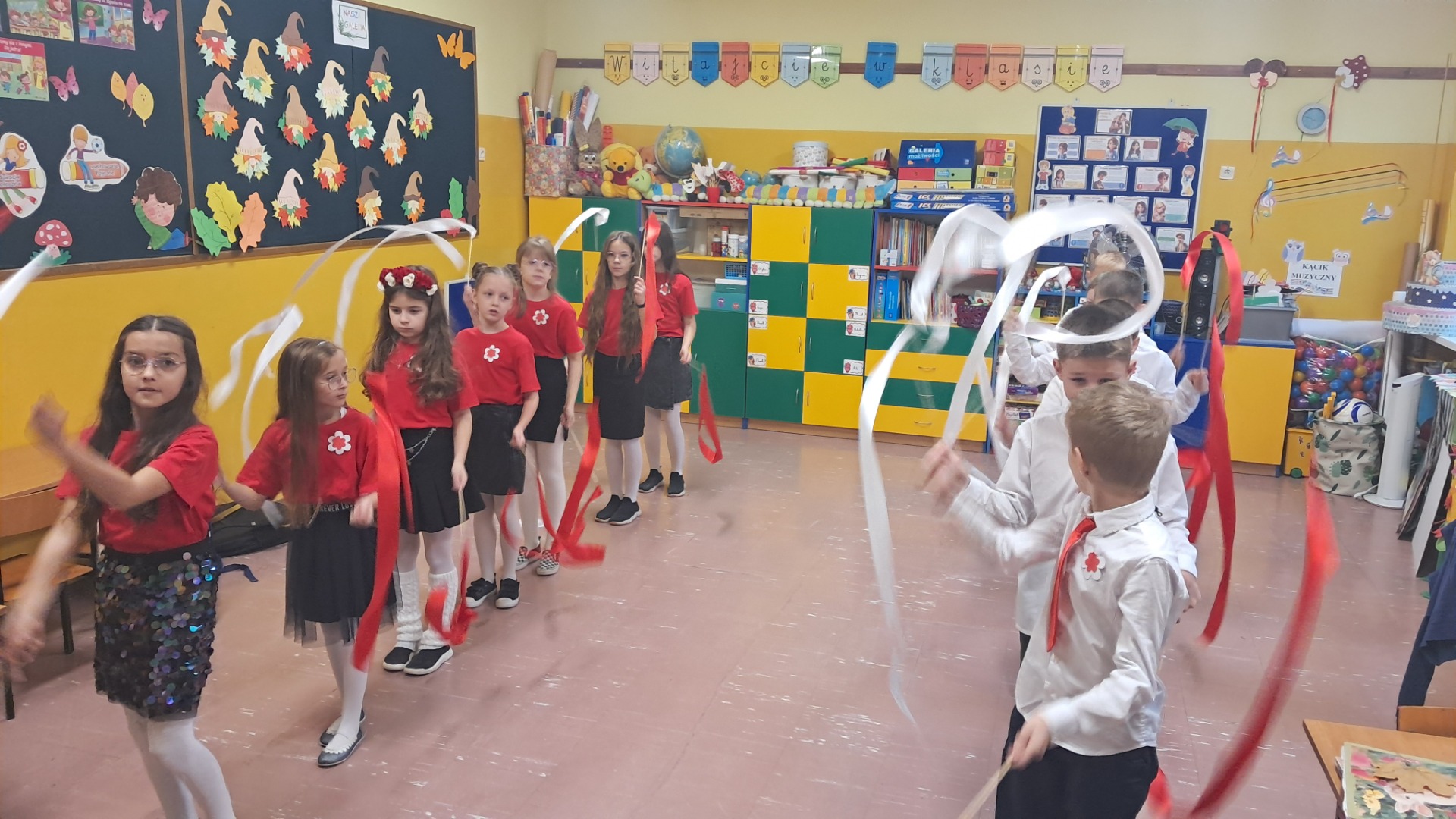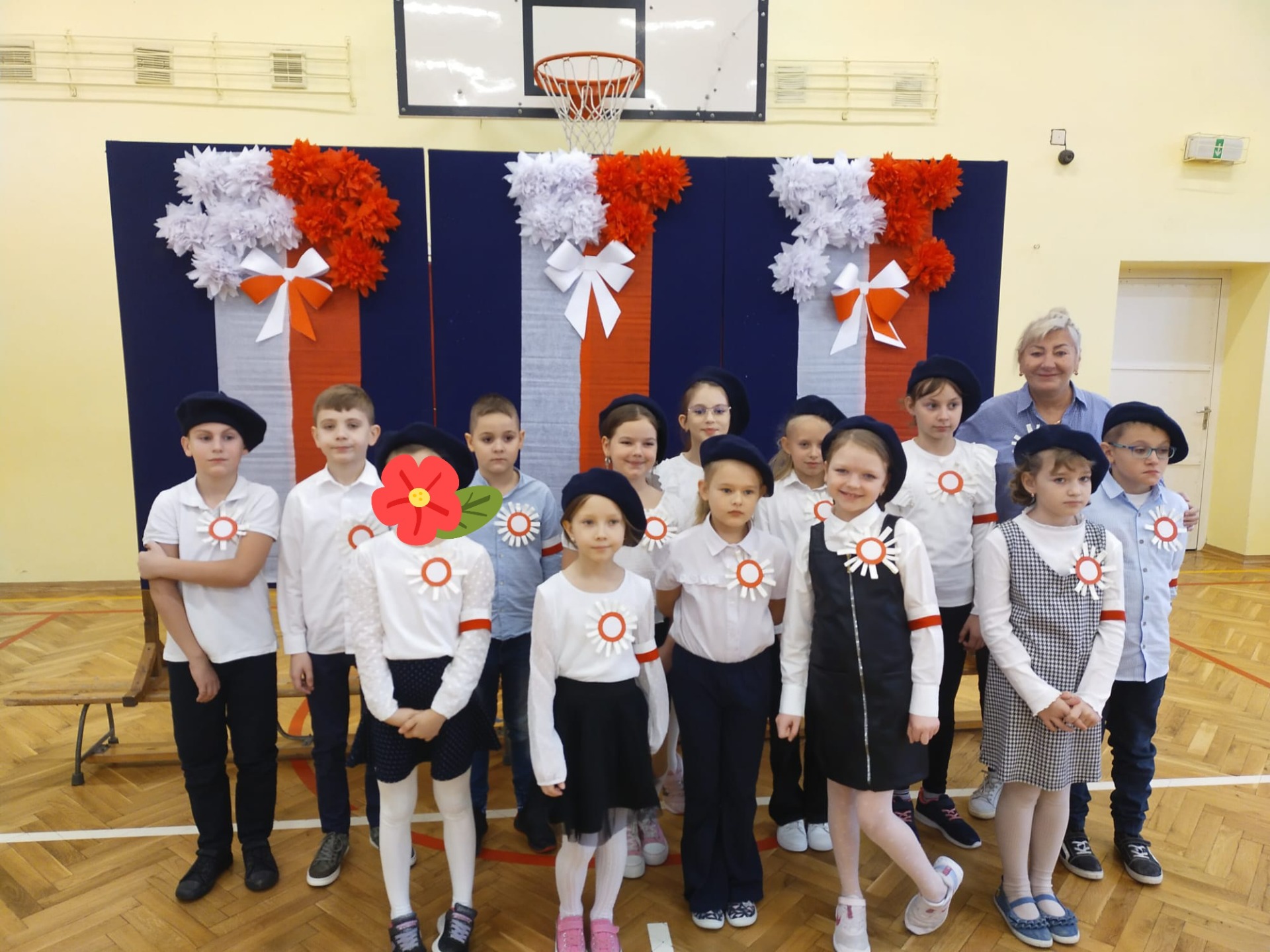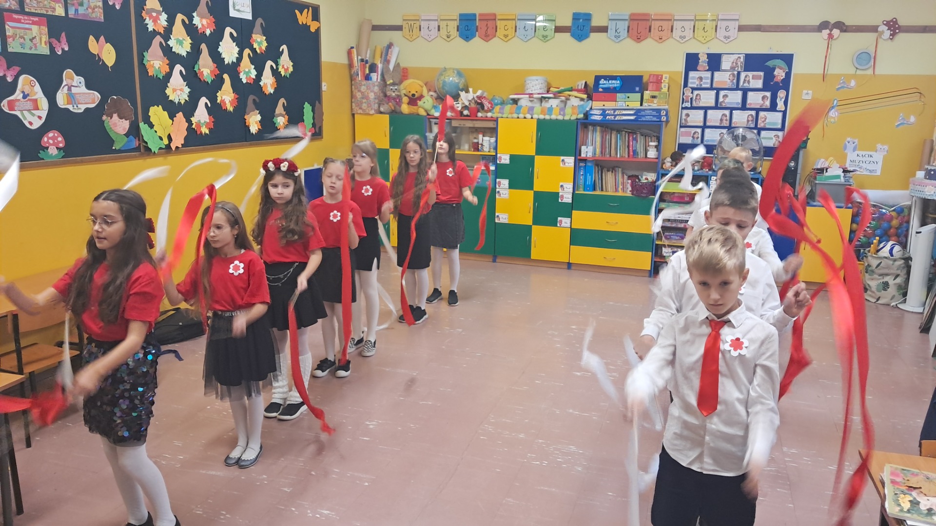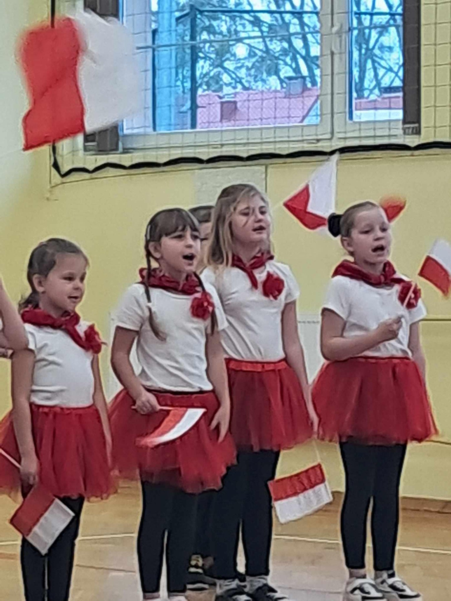 Podczas występów uczniowie śpiewali piosenki patriotyczne, recytowali wiersze i tańczyli. Barwne i podniosłe widowisko obejrzeli także z nami zaproszeni Rodzice.