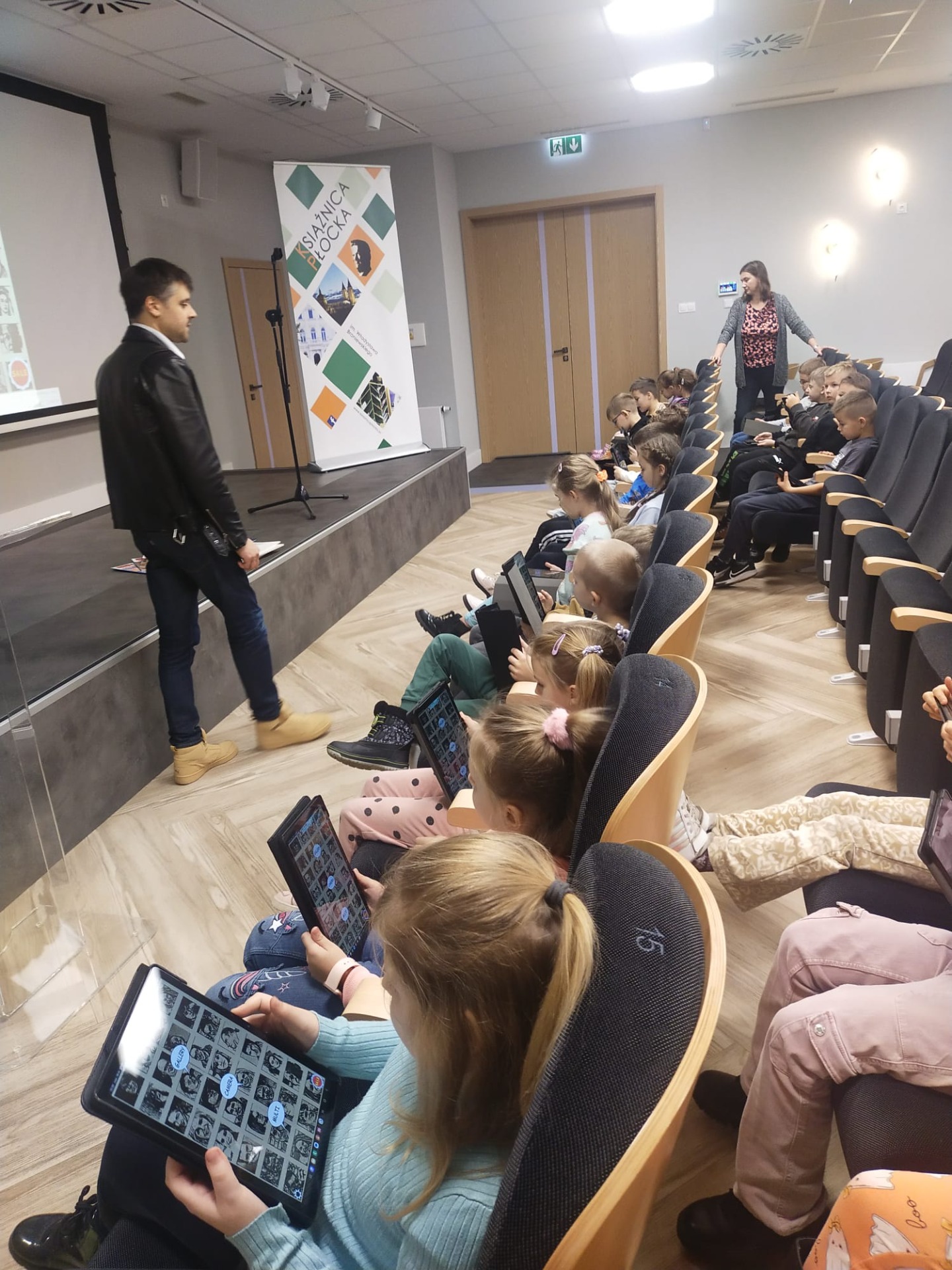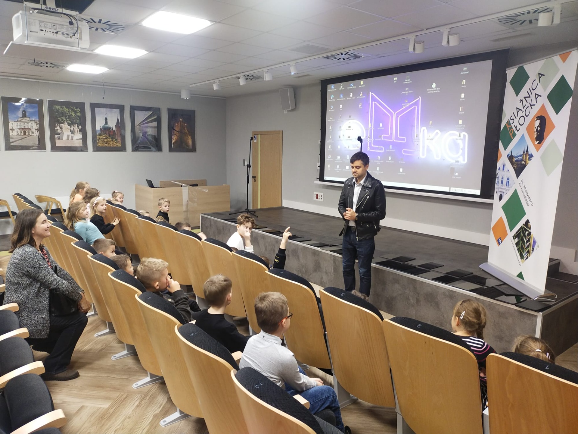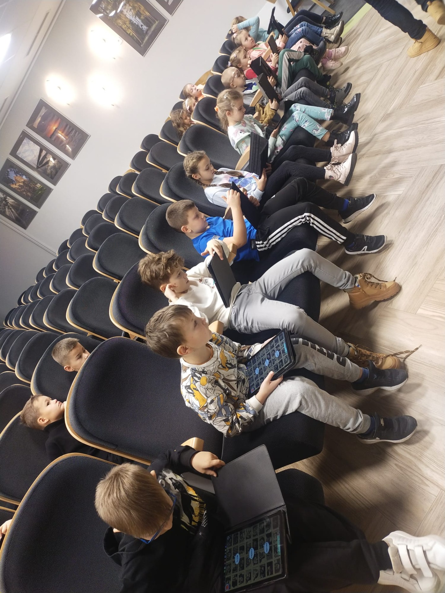14 listopada uczniowie klasy 1 odwiedzili dział zbiorów audiowizualnych Książnicy Płockiej, zwanej ,,Mediateka eMka,,. Była to dla wszystkich dzieci pierwsza wizyta w tego typu bibliotece. O zbiorach jakie znajdują się w Mediatece opowiedziała dzieciom pani kierownik Bogumiła Tobota, a następnie wszyscy wzięli udział w warsztatach multimedialnych tworzenia komiksów w aplikacji przy pomocy tabletów. Uczniowie nauczyli się tworzyć grafikę do komiksów, wstawiać chmurki z napisami, tła i inne kolorowe elementy. Stworzone samodzielnie karty komiksów zachęciły uczniów do dalszej nauki i zabawy z aplikacją Comica. Serdecznie dziękujemy pani kierownik Gminnej Biblioteki Publicznej w Nowym Duninowie pani Krystynie Pruszyńskiej za zapisanie klasy 1 na tak ciekawe i inspirujące warsztaty.