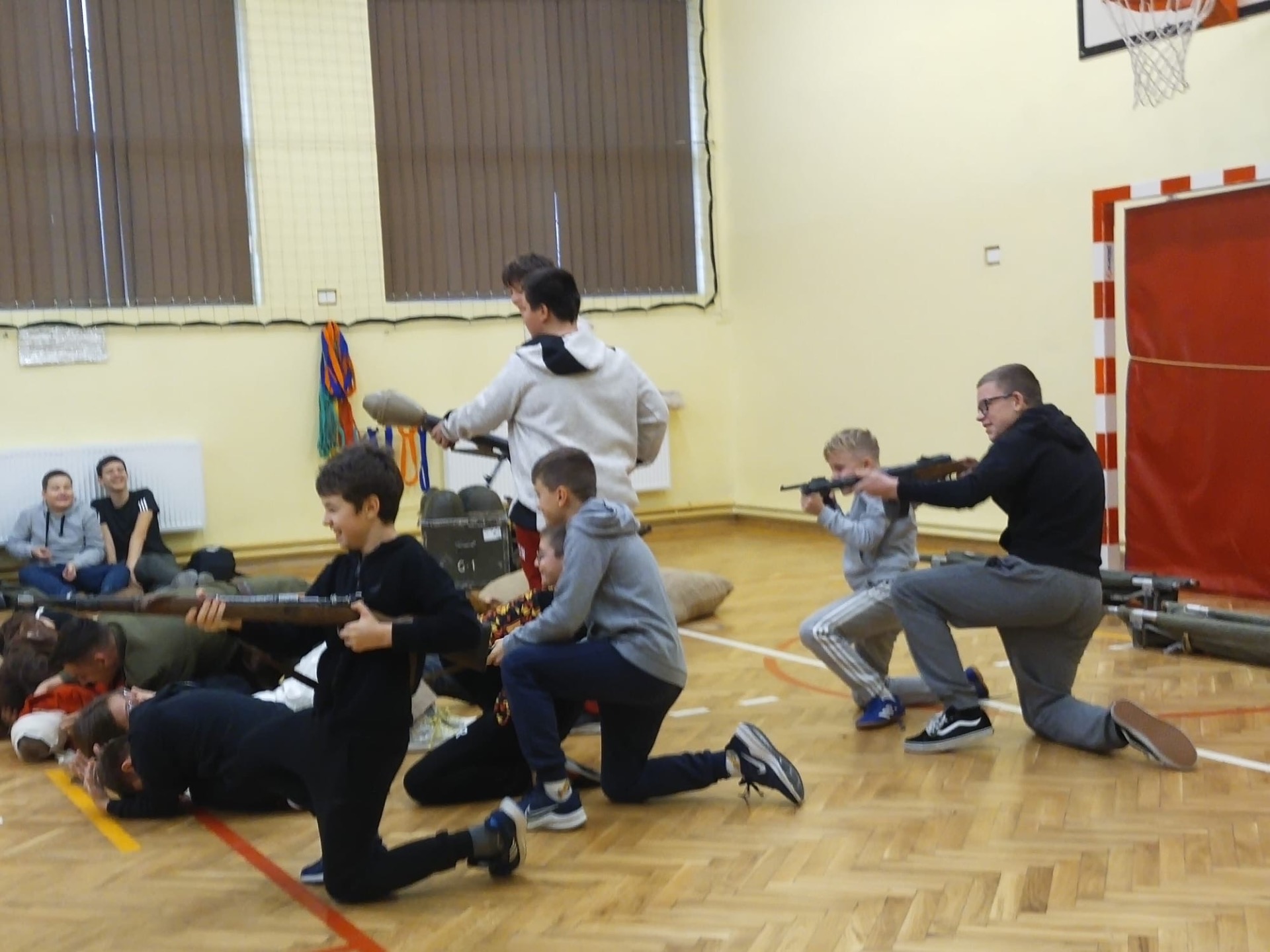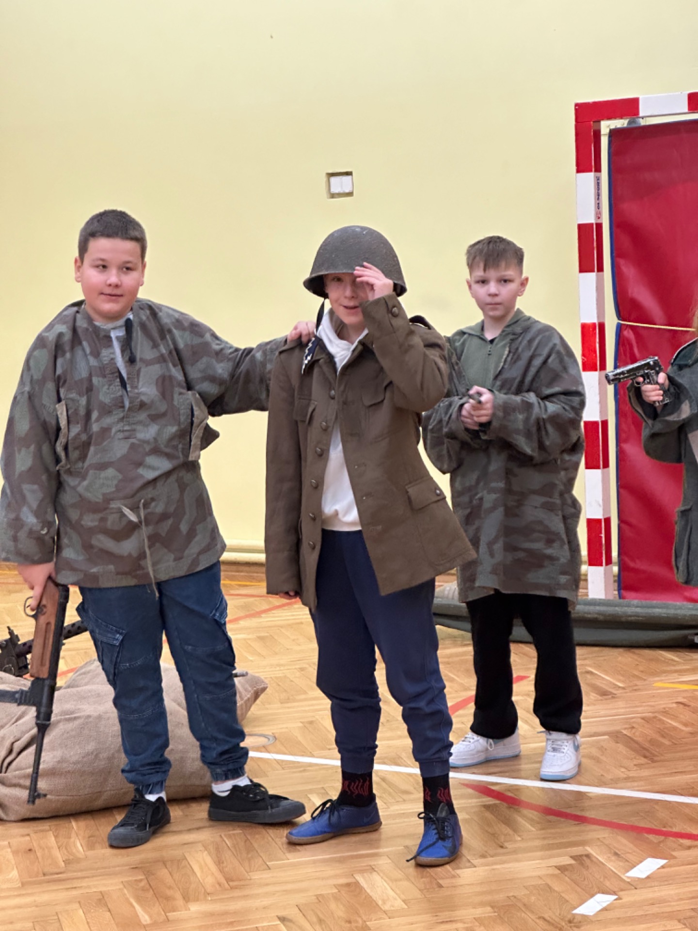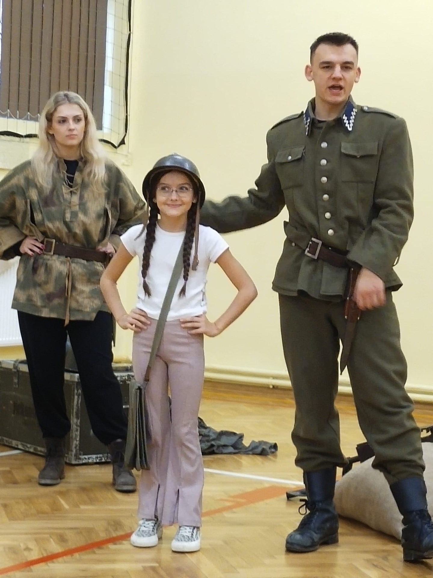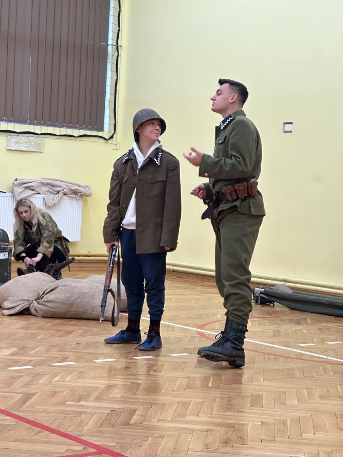 Co ciekawe- aktorami w sztuce zostali również uczniowie, którzy wcielili się w rolę dzielnych żołnierzy broniących Westerplatte, atakujących Polskę Niemców, żołnierzy podziemia, powstańców czy też sanitariuszki oraz dzieci roznoszonych pocztę. W trakcie pokazu każdy z uczniów był zaangażowany w tworzenie atmosfery obrony Polski.