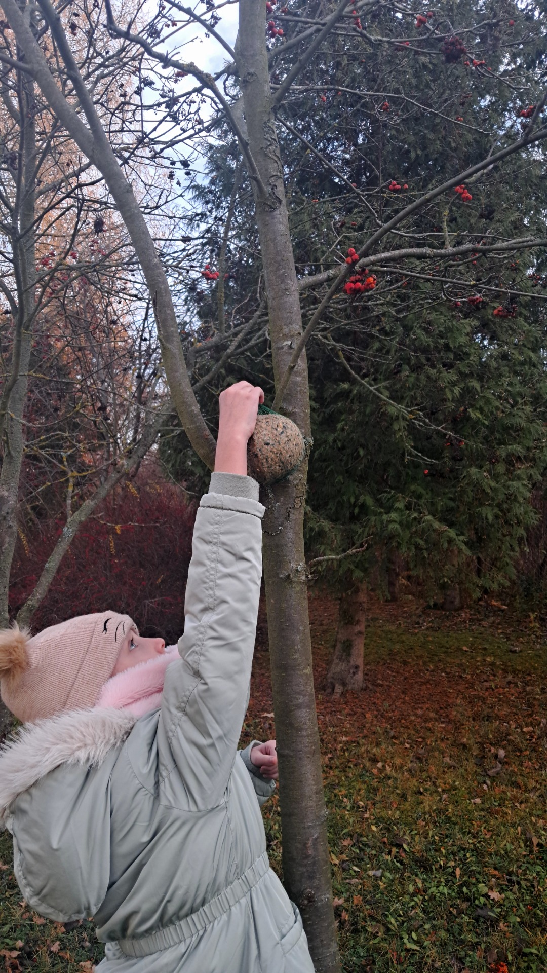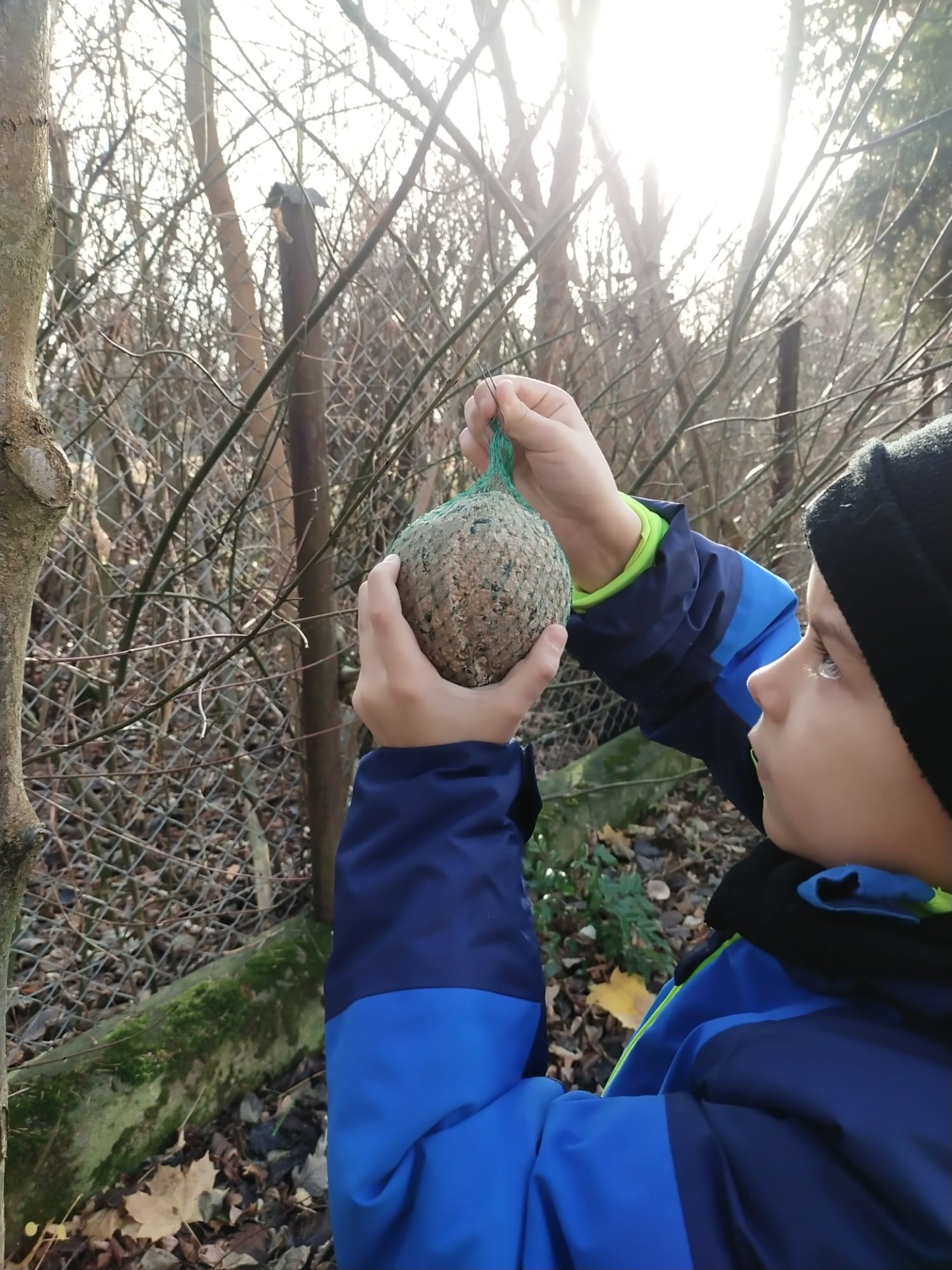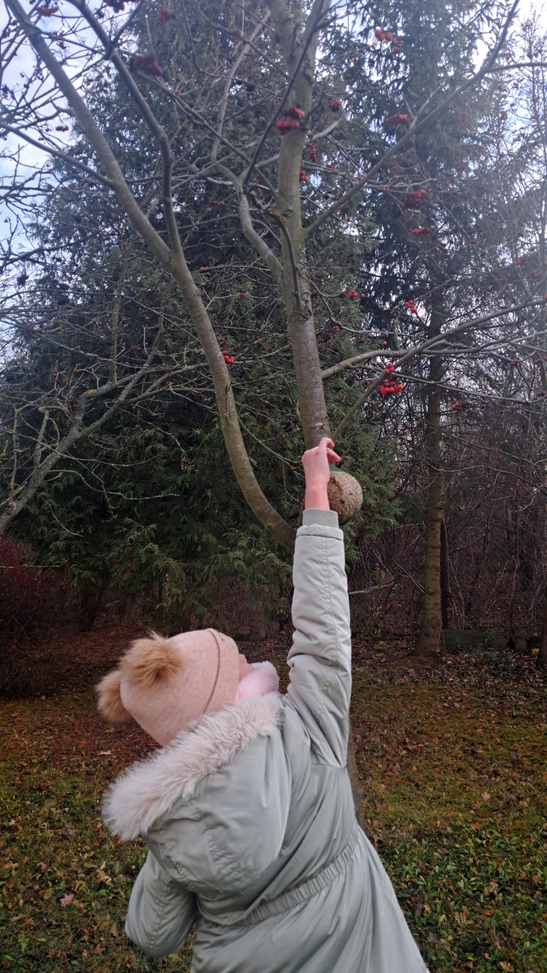 Nasi uczniowie z radością wybrali miejsca umieszczenia pokarmu dla ptaków i mogą je teraz obserwować podczas posiłku z okien swoich klas.