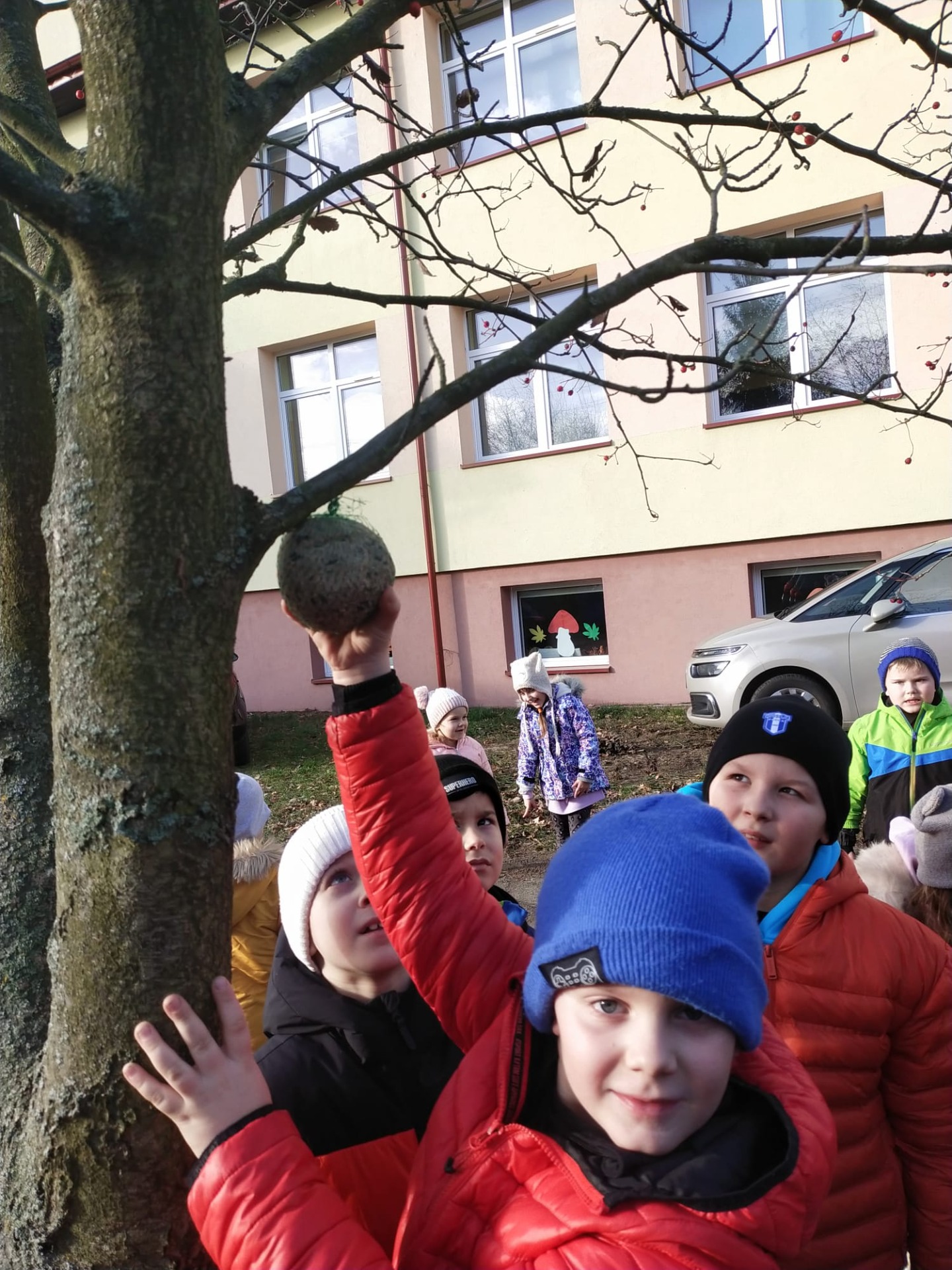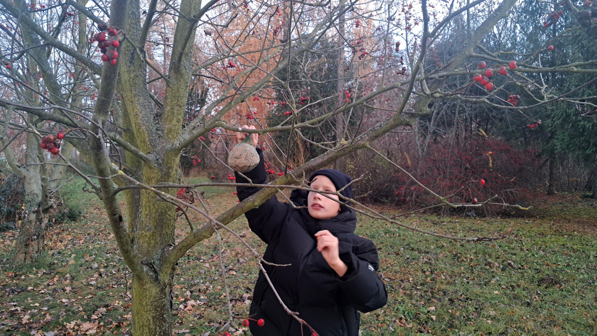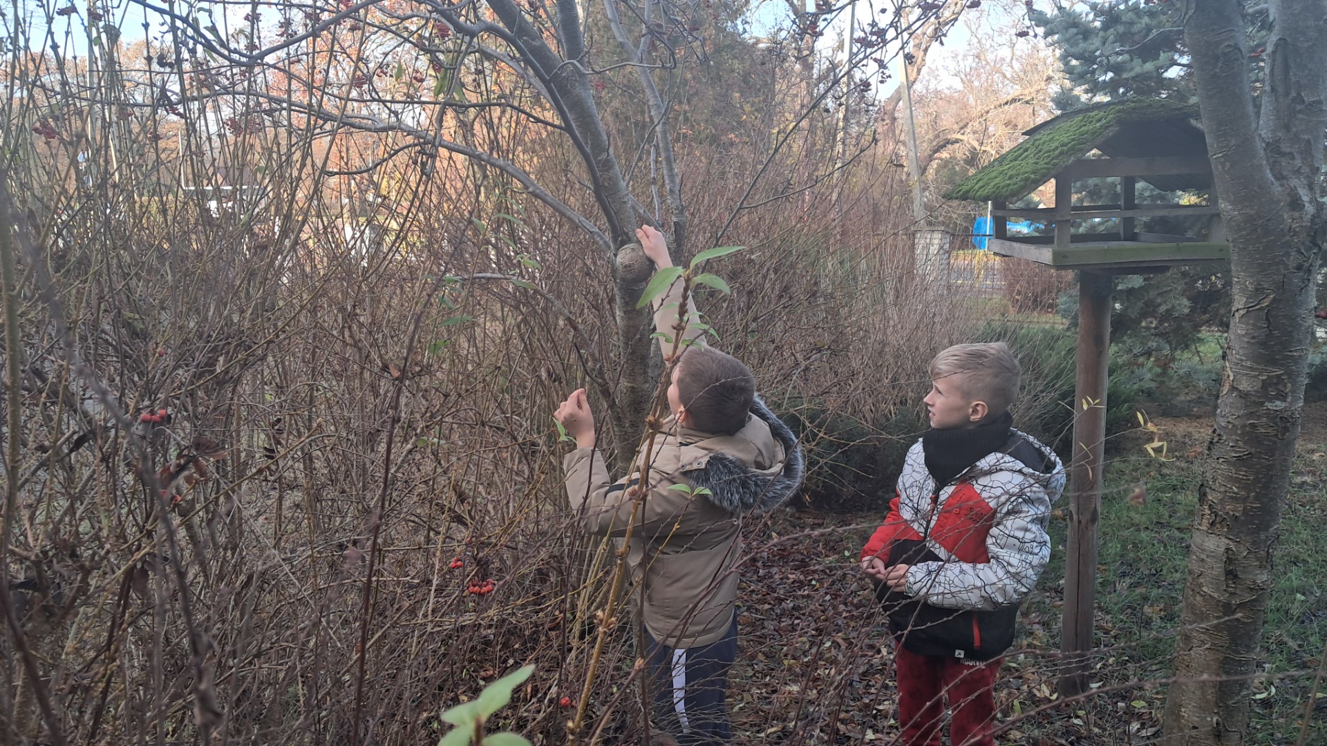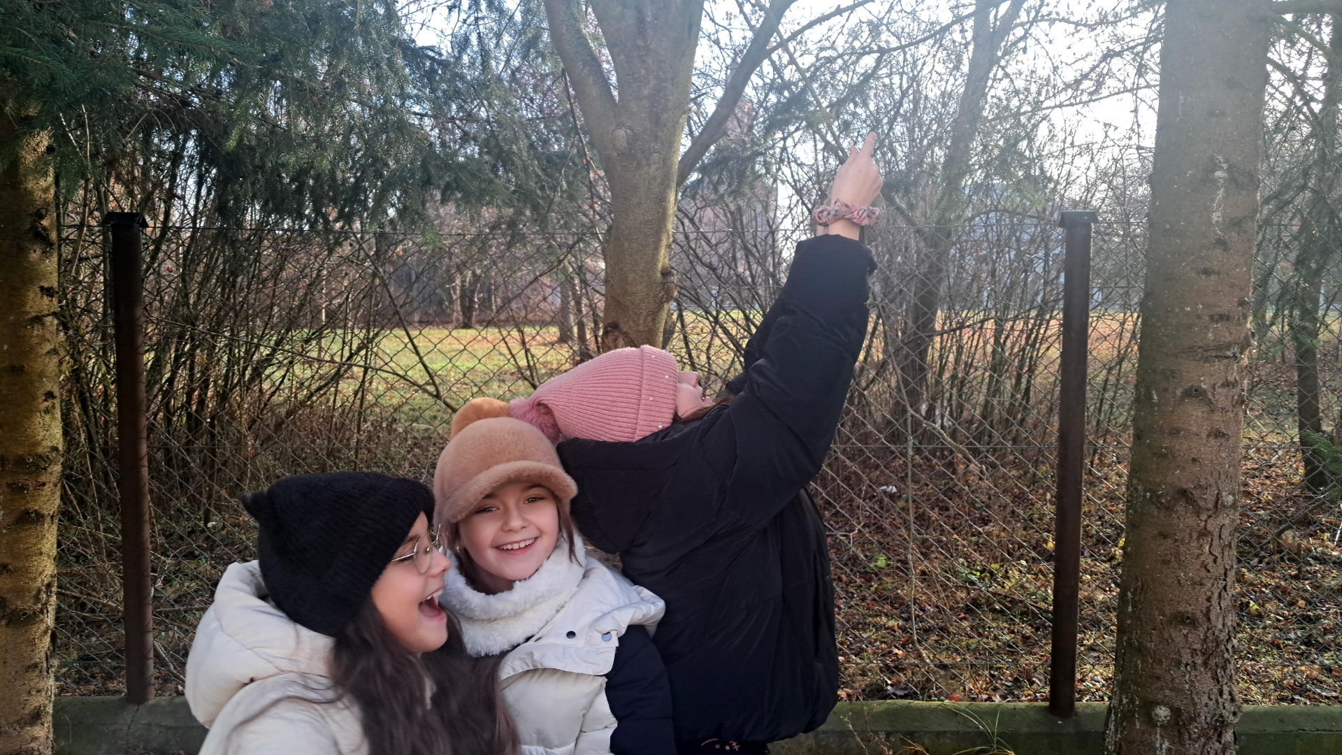 Nasi uczniowie z radością wybrali miejsca umieszczenia pokarmu dla ptaków i mogą je teraz obserwować podczas posiłku z okien swoich klas.