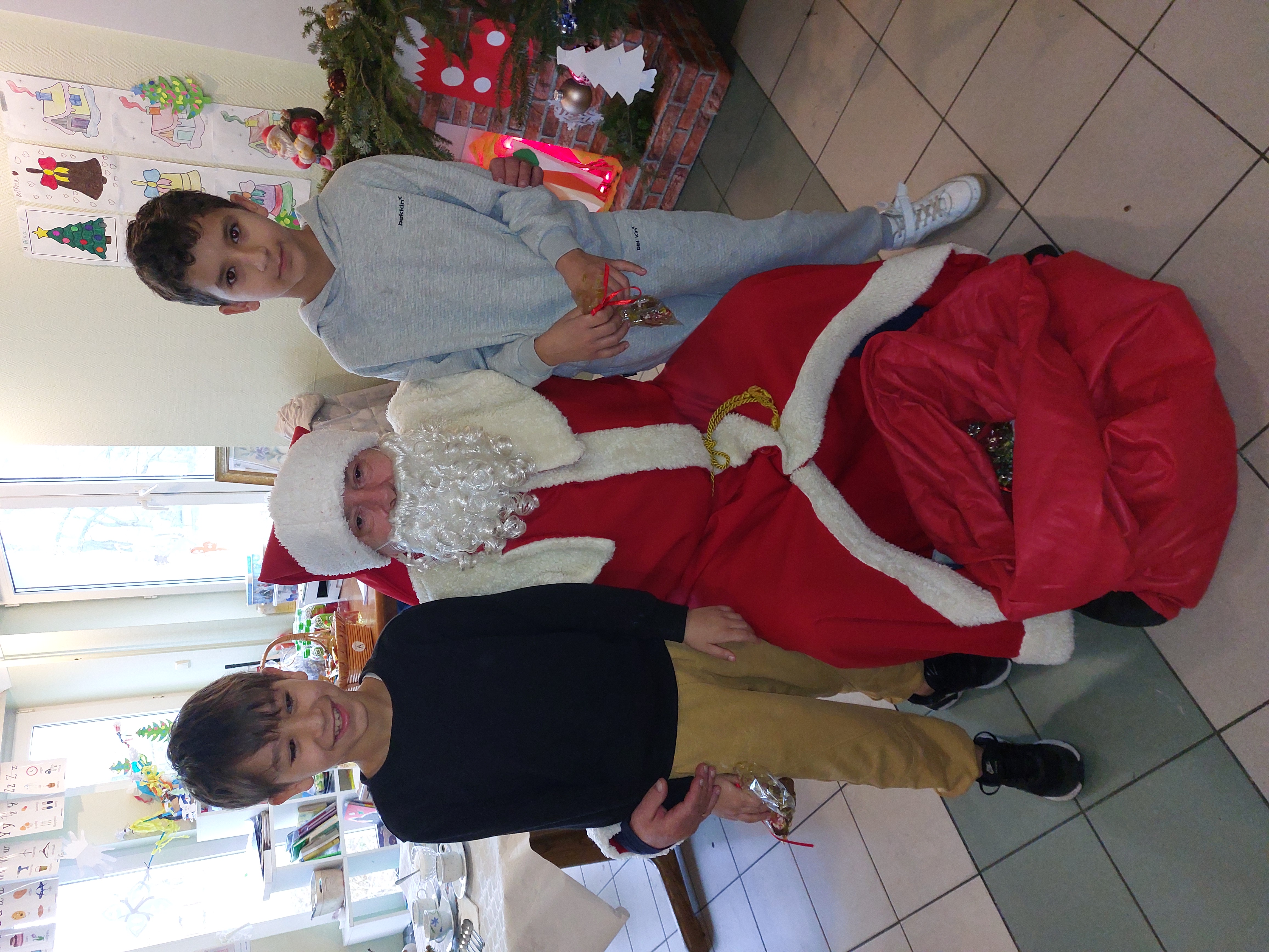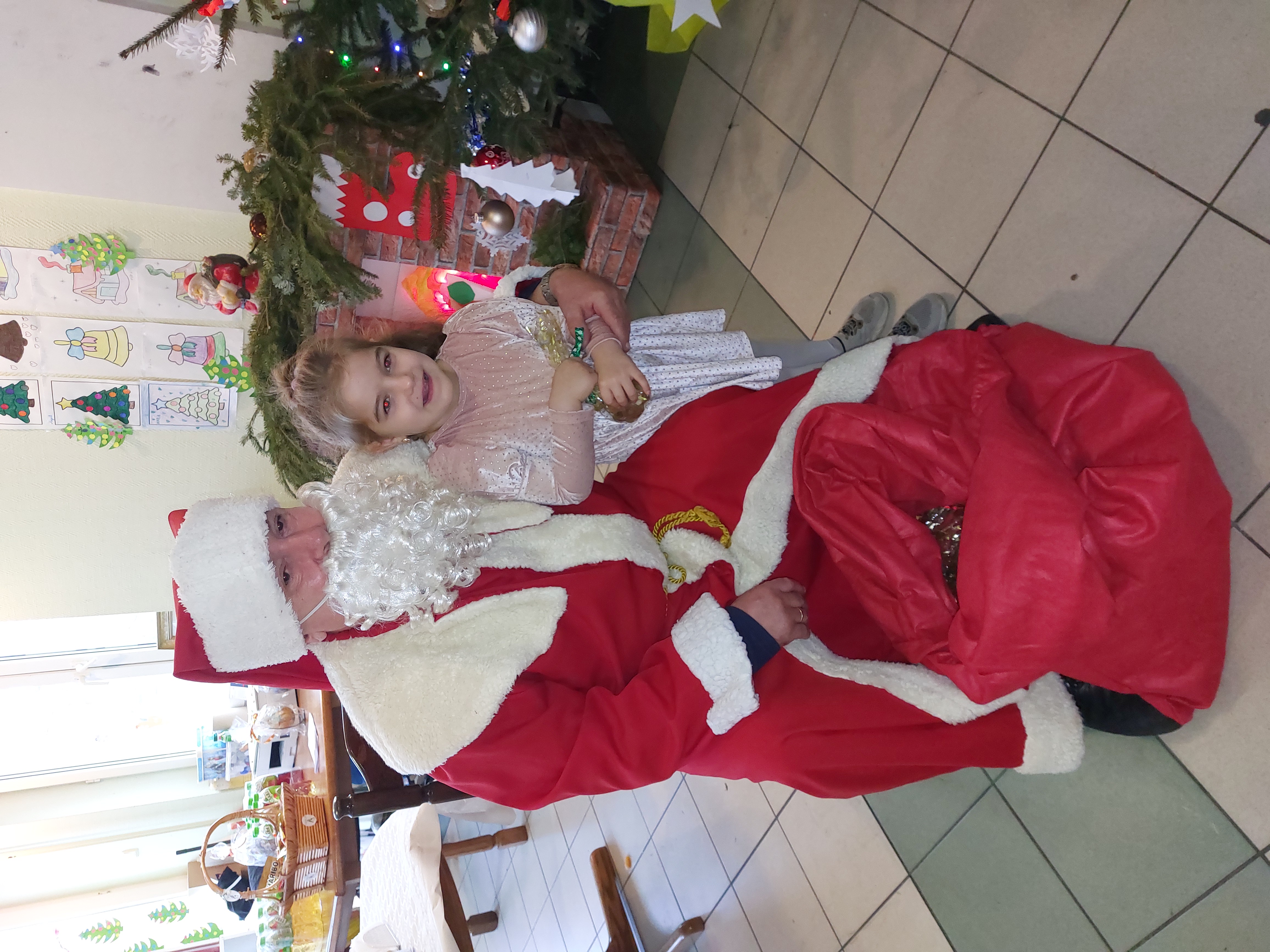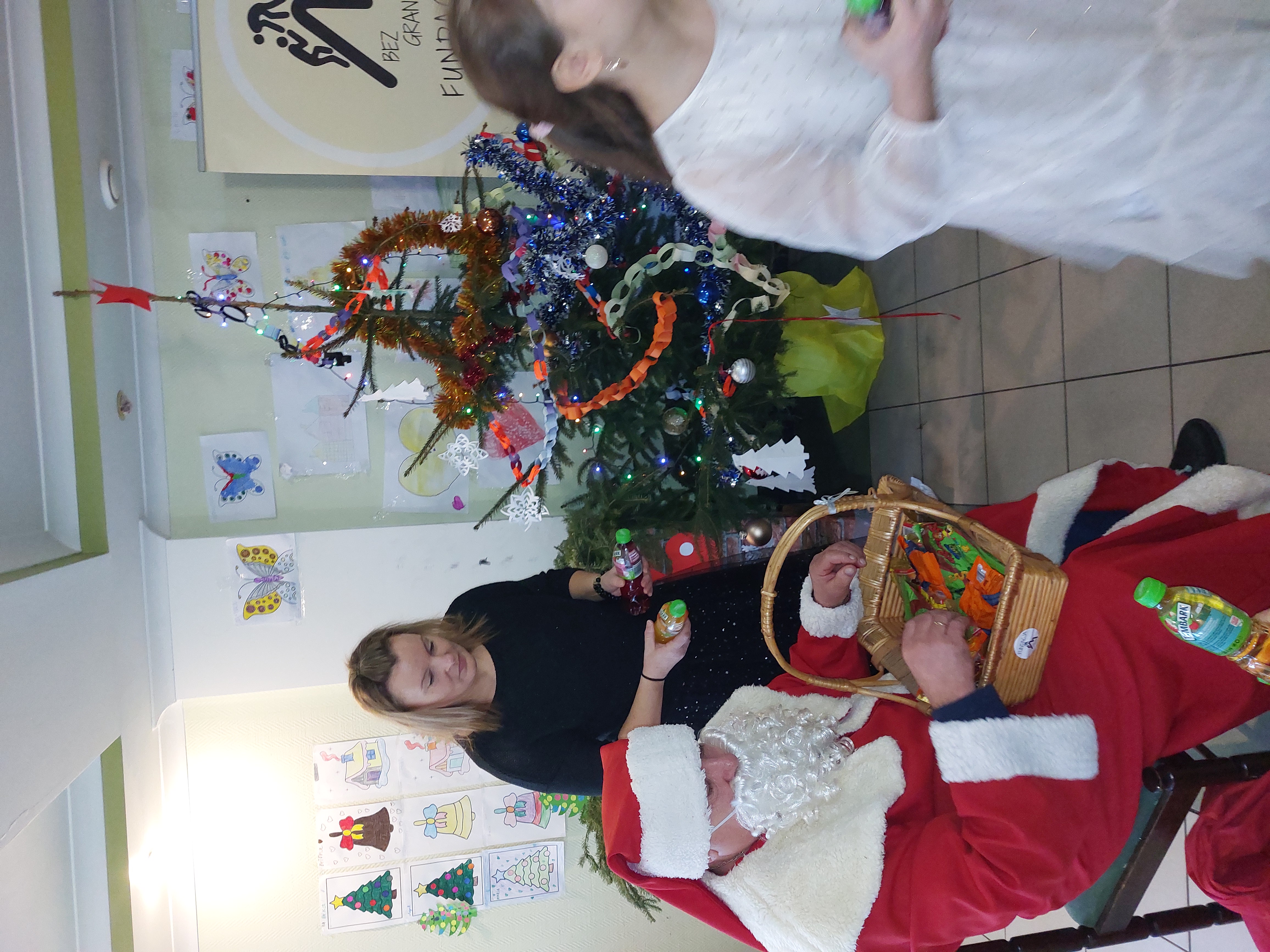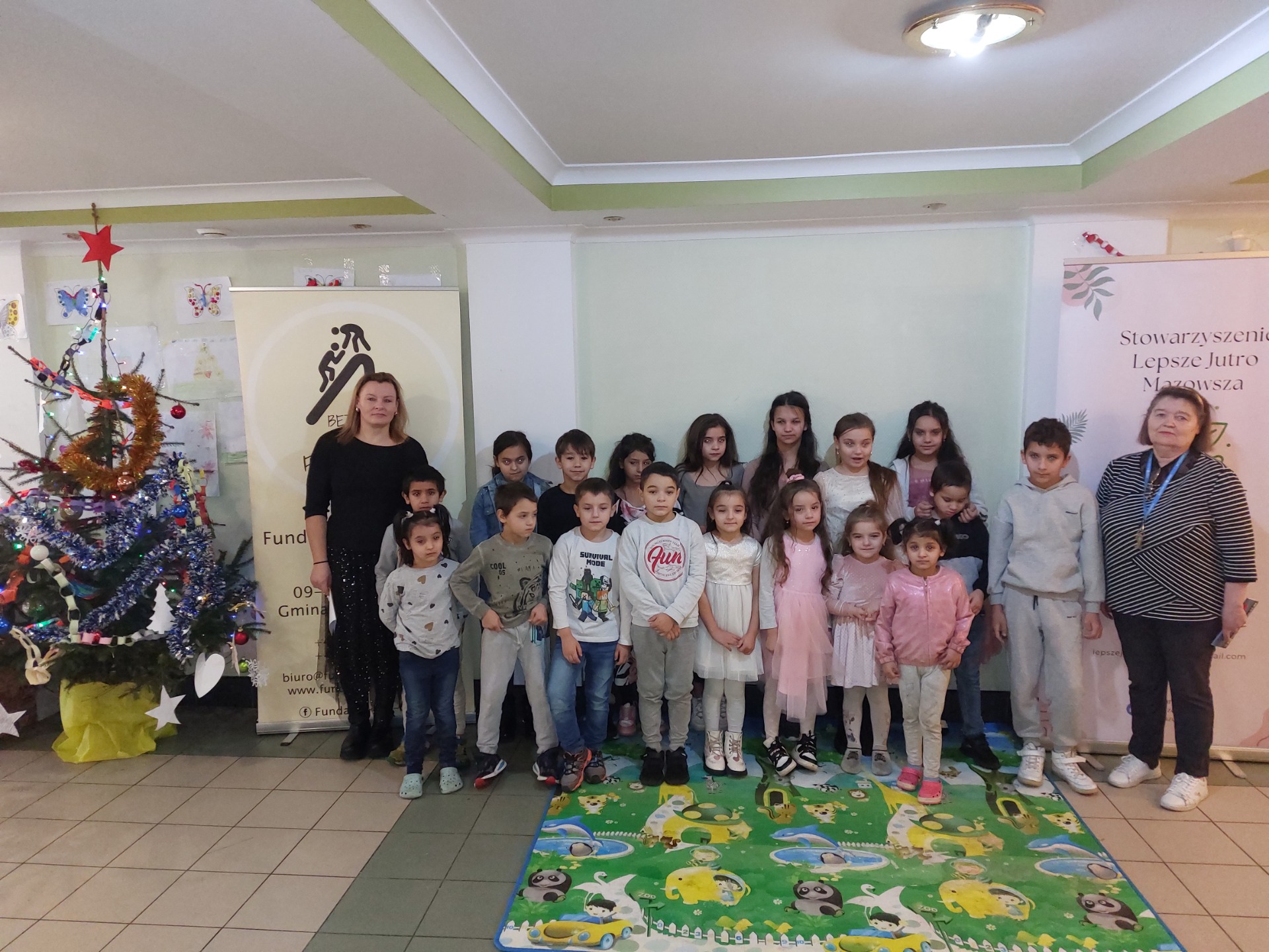 Po występie do uczniów przyjechał Mikołaj ze słodkimi upominkami ufundowanymi przez Gminny Ośrodek Kultury w Nowym Duninowie, Fundację Bez Granic, Stowarzyszenie Lepsze Jutro Mazowsza.