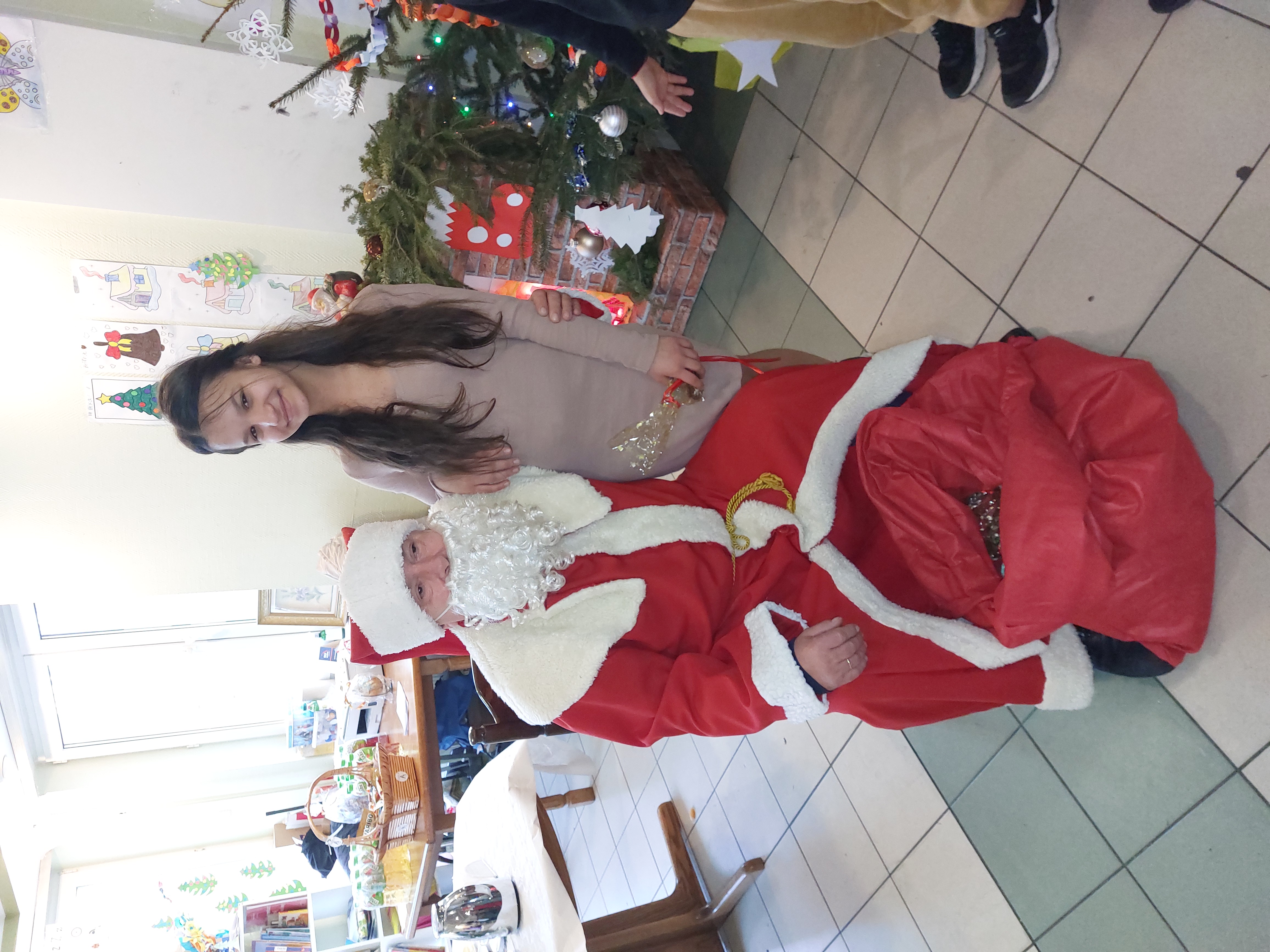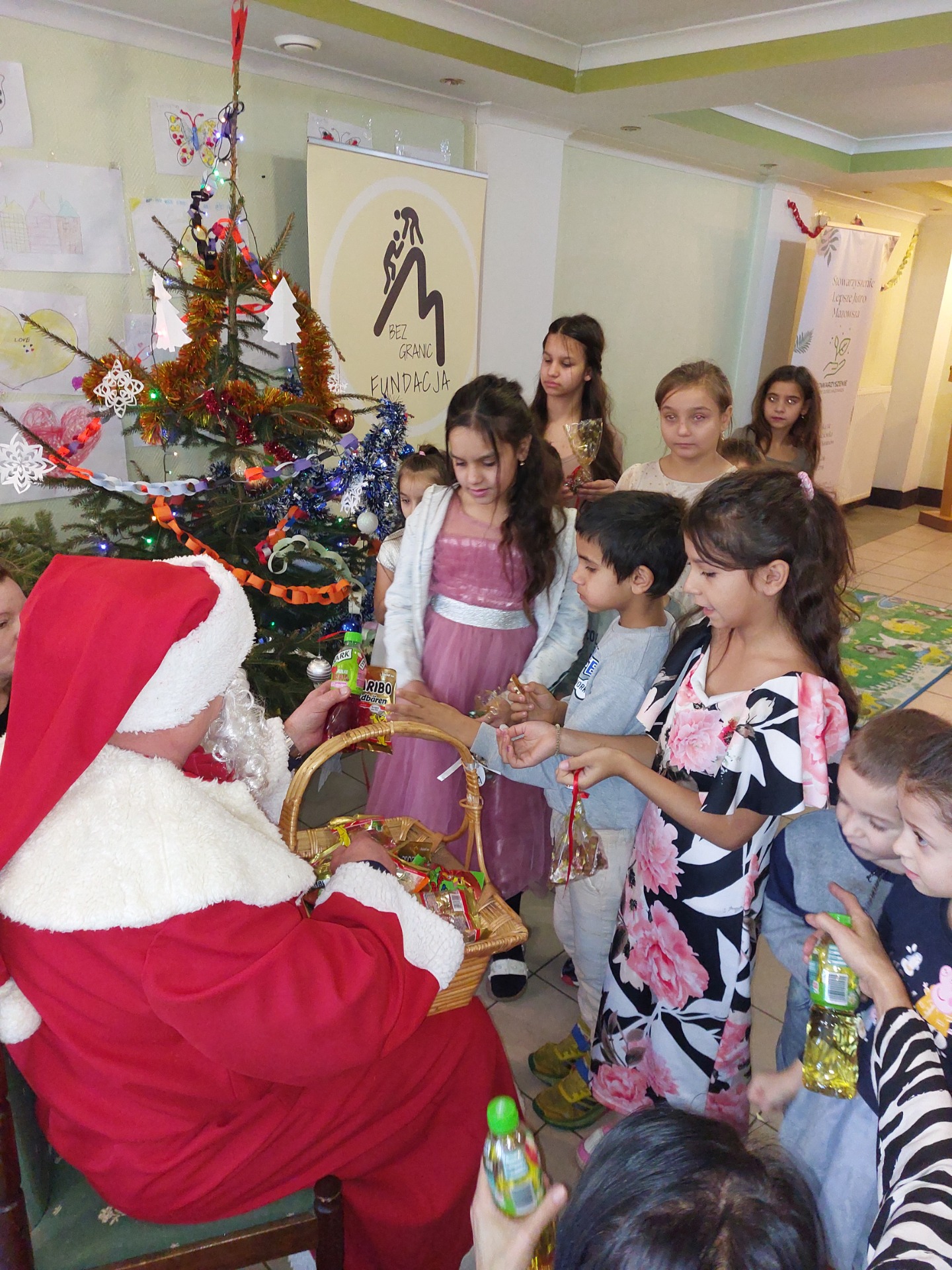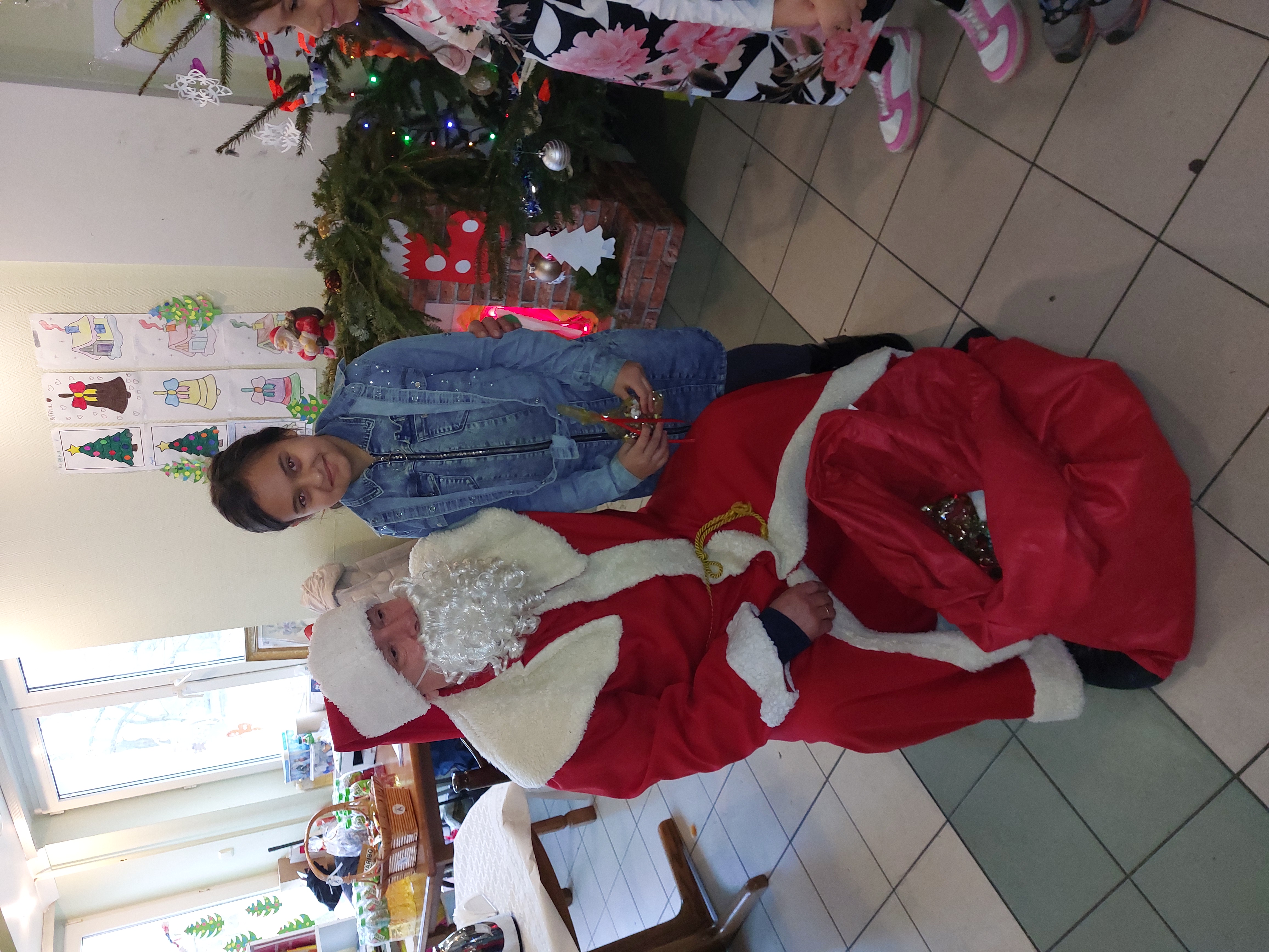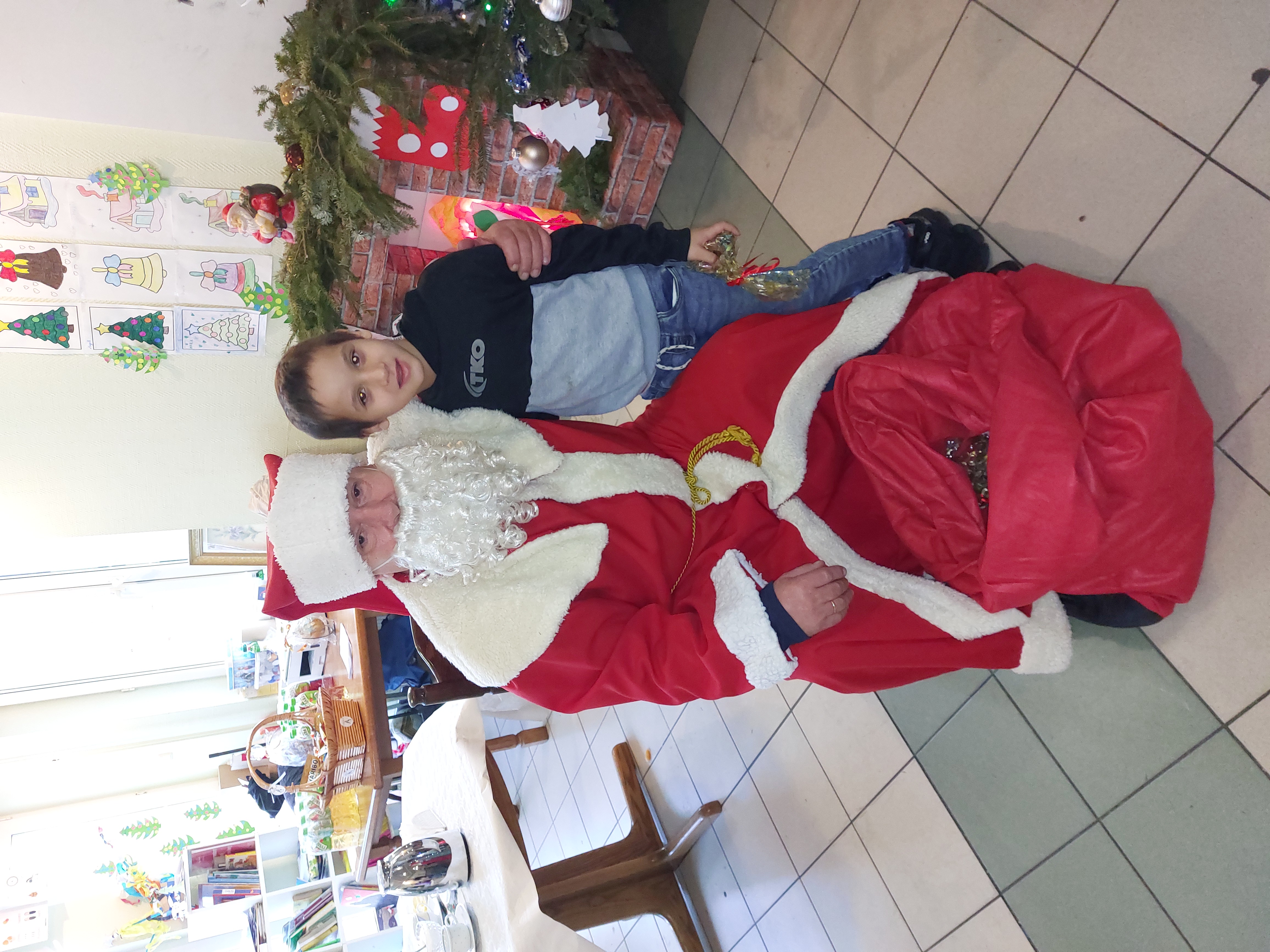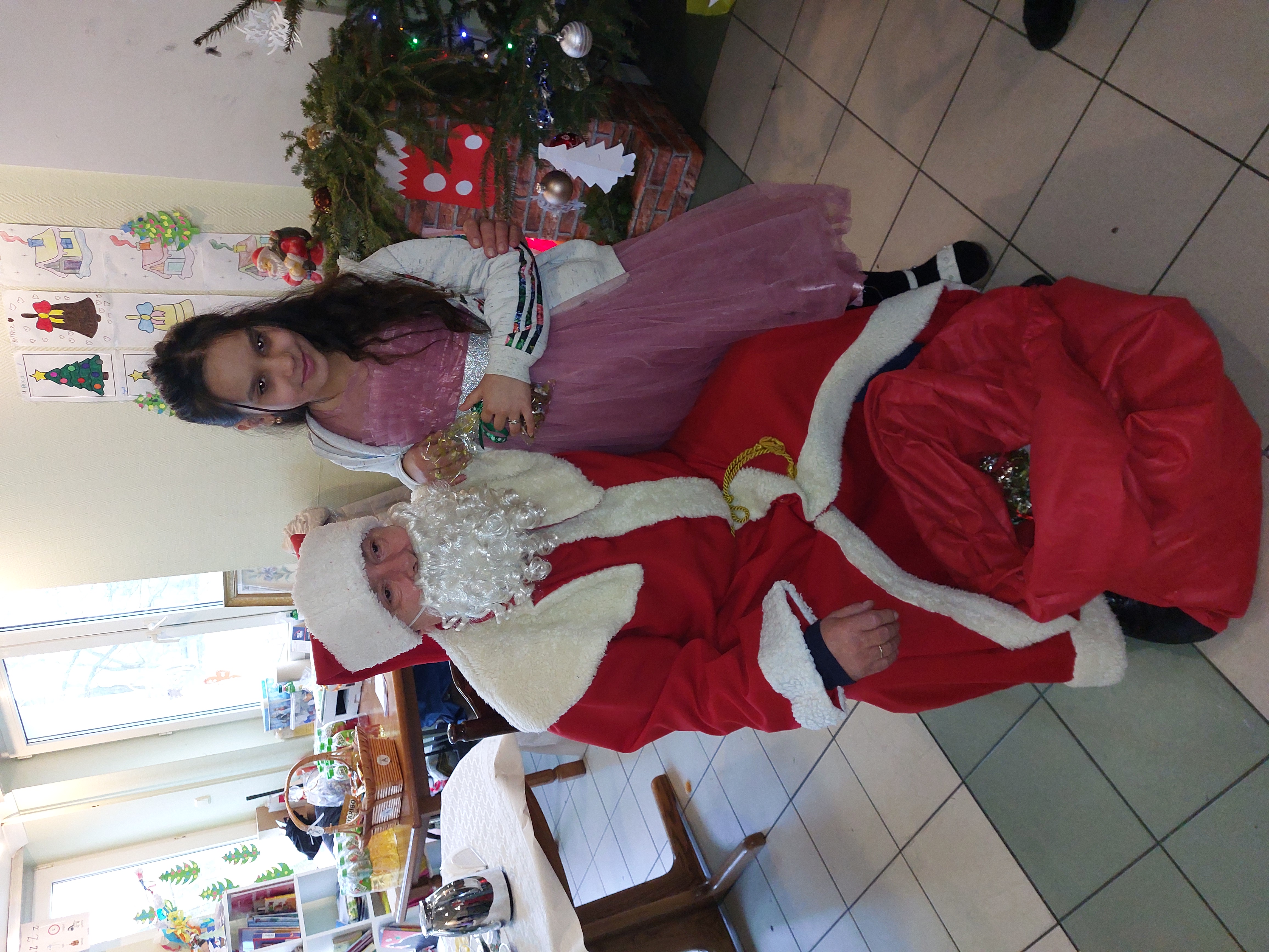 Po występie do uczniów przyjechał Mikołaj ze słodkimi upominkami ufundowanymi przez Gminny Ośrodek Kultury w Nowym Duninowie, Fundację Bez Granic, Stowarzyszenie Lepsze Jutro Mazowsza.