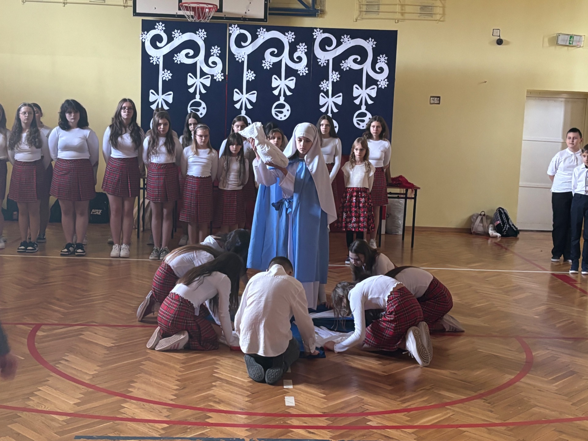 Uczniowie wykazali się świetną grą aktorską, a śpiew chóru dopełnił całość przedstawienia.