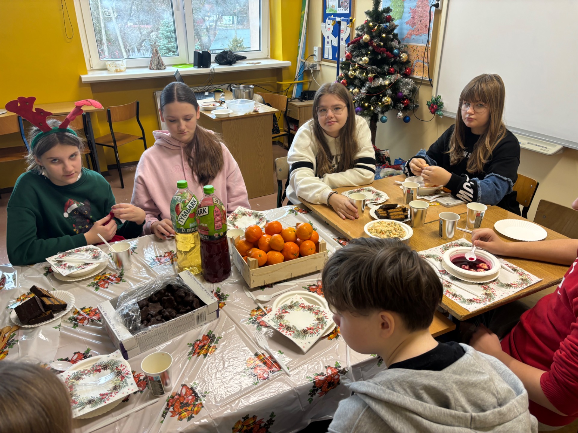 W przedświątecznym nastroju klasa VII B spędziła wspólny czas podczas Wigilii klasowej.