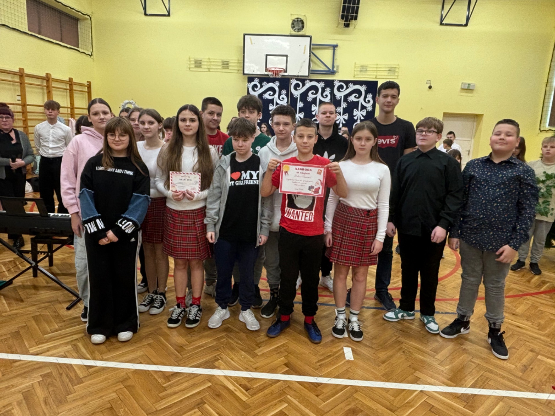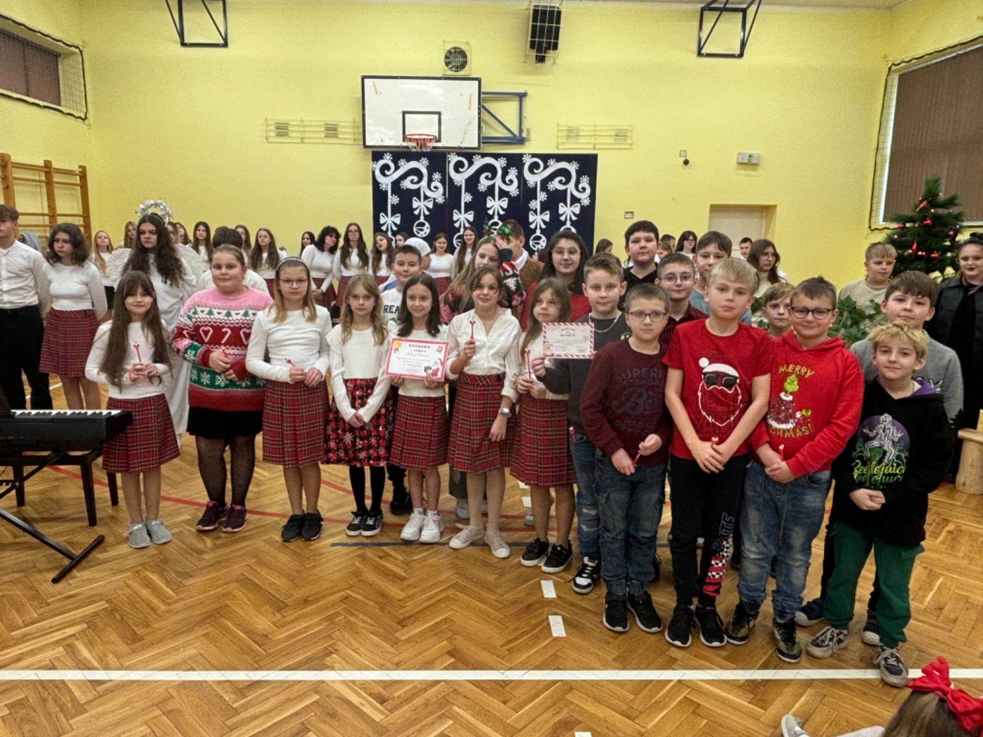 20.12. 2024 r. po Jasełkach nastapiło rozstrzygnięcie konursu mikołajkowego na świąteczną dekorację klas.