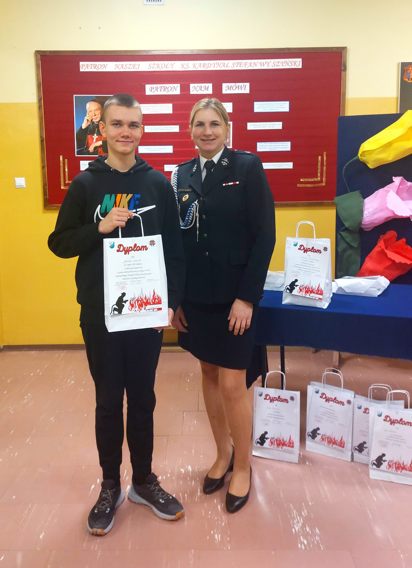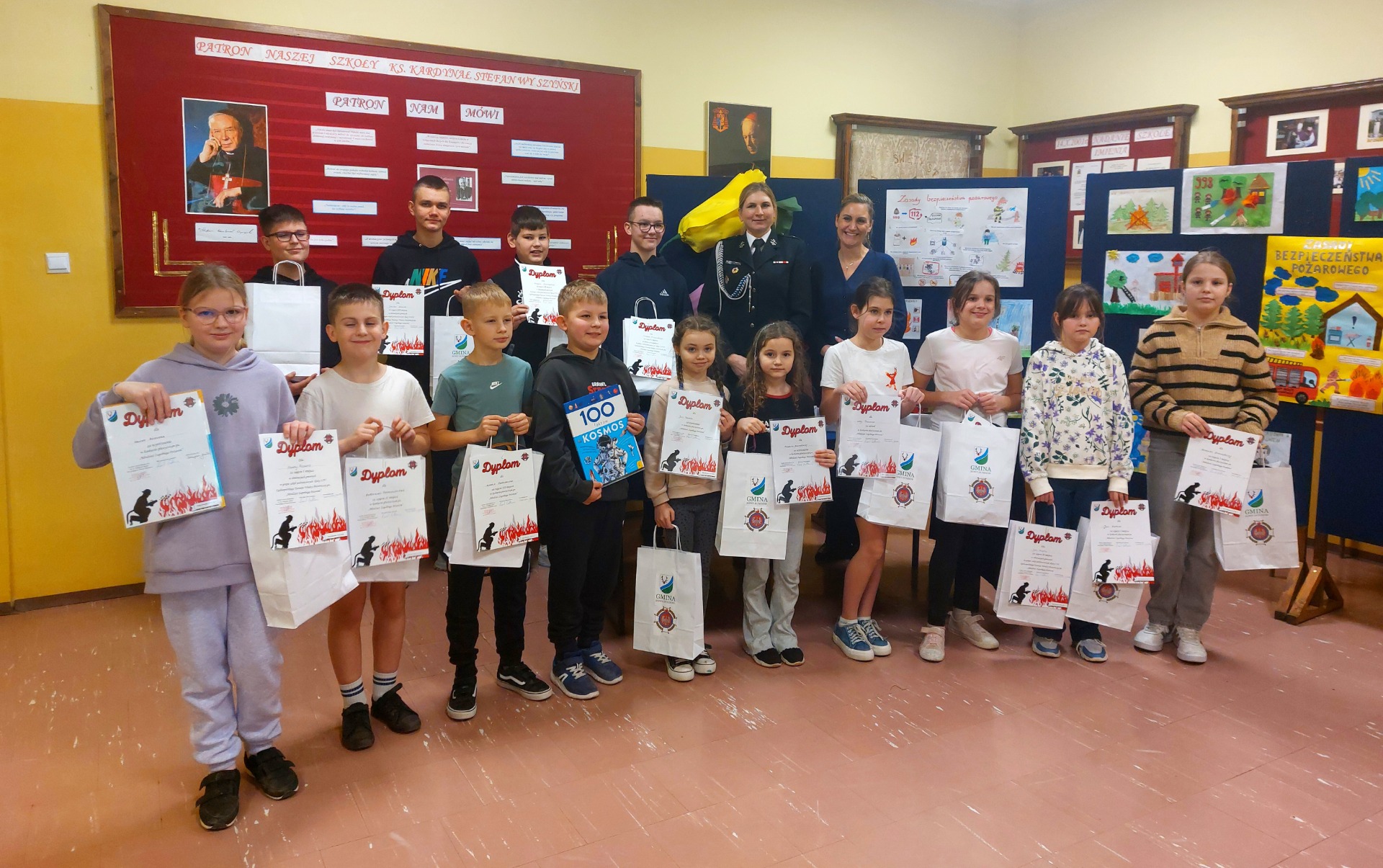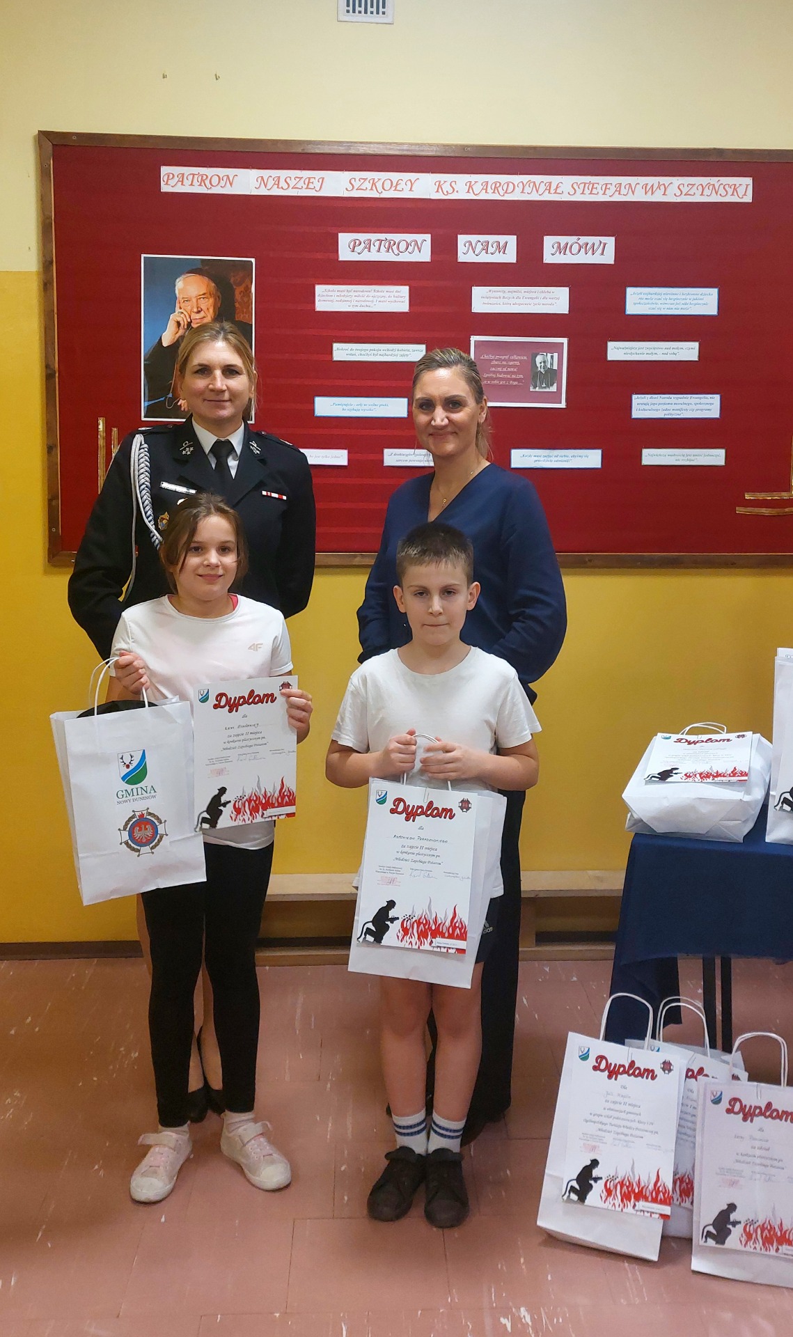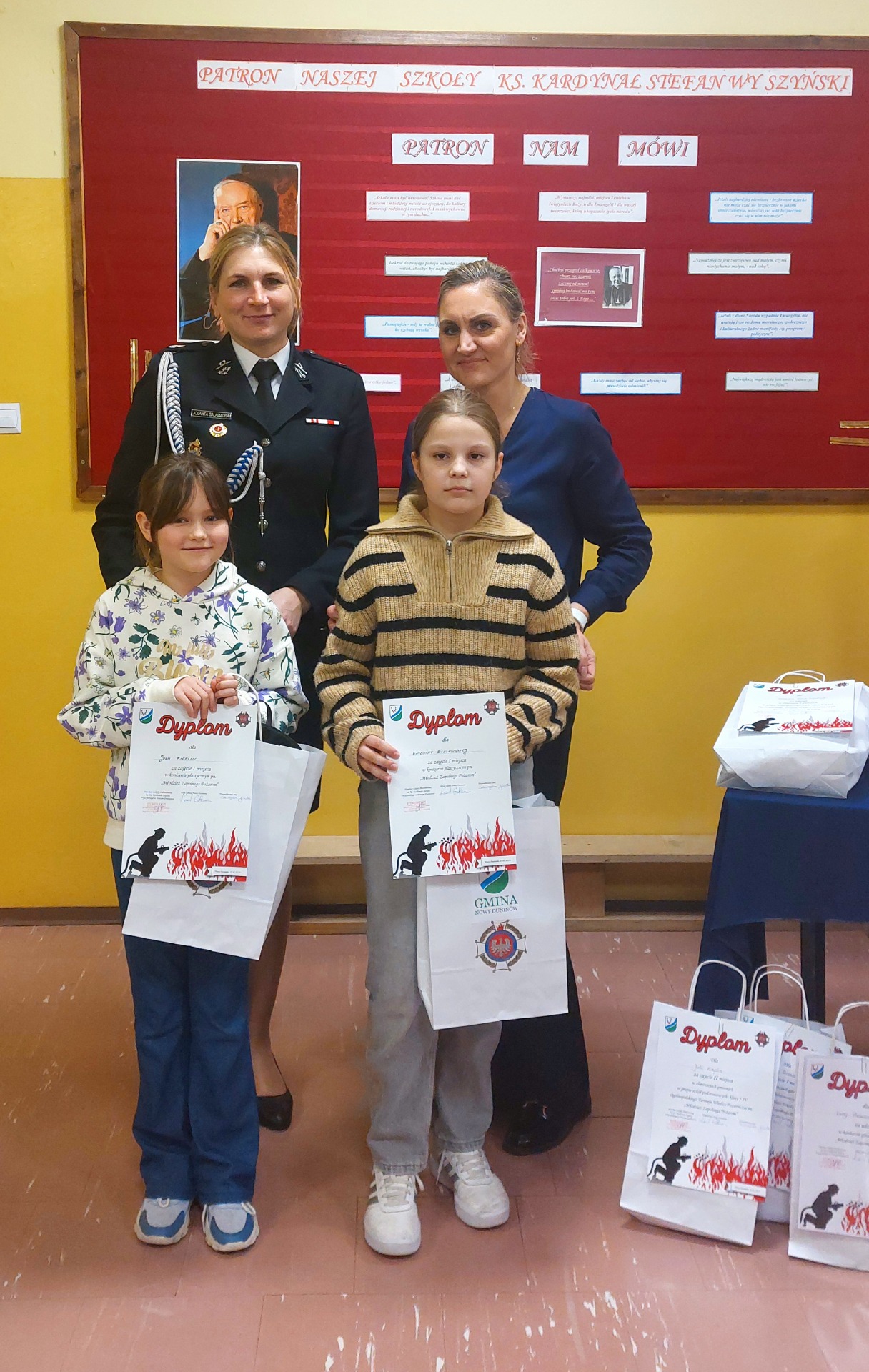 Dnia 27.01.2025r odbył się konkurs wiedzy pożarniczej Młodzież Zapobiega Pozarom, któremu przewodniczyła p. Jolanta Salamądra - Prezes OSP w Lipiankach, przedstawiciel Urzędu Gminy p. Kinga Walecka oraz nauczyciele WF. Konkurs przebiegał w dwóch kategoriach wiekowych klas I-IV oraz klas V-VIII. Grupa młodsza rywalizowała w zakresie wiedzy oraz umiejętności plastycznnych pn. "Zasady bezpieczeństwa pożarowego".