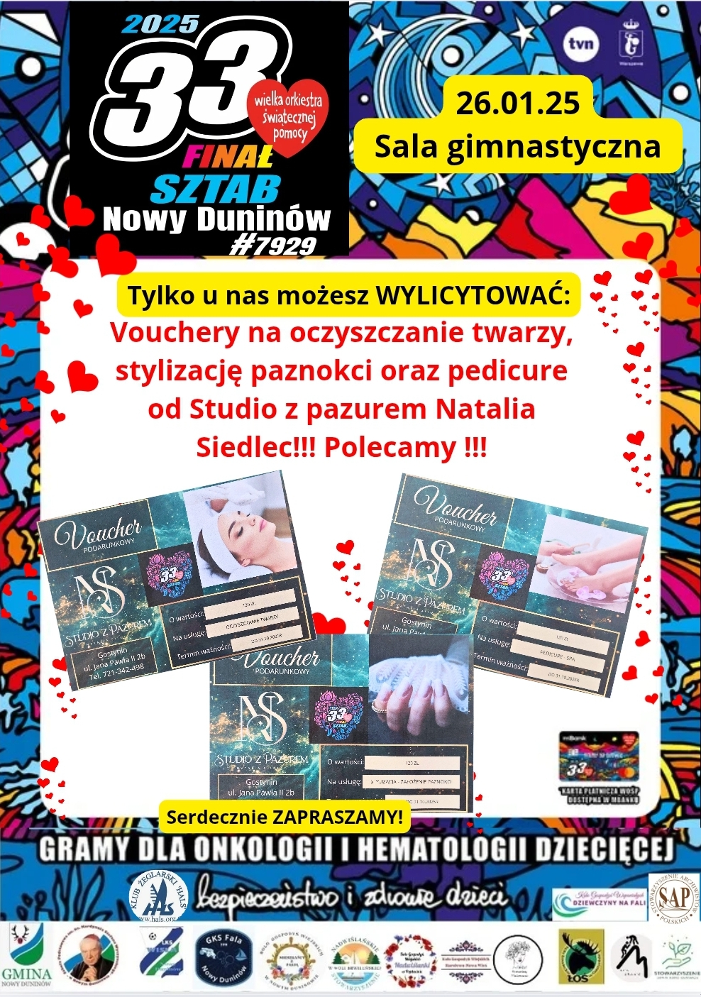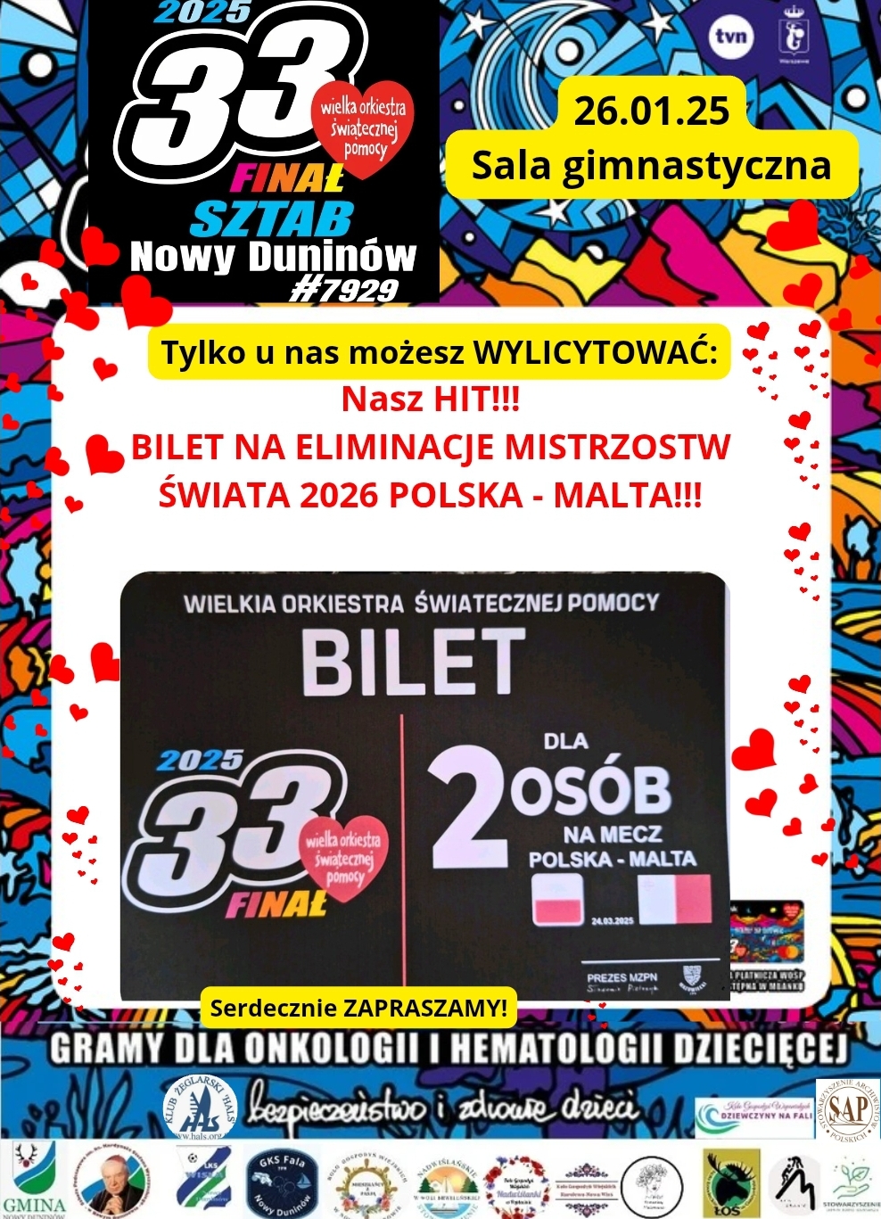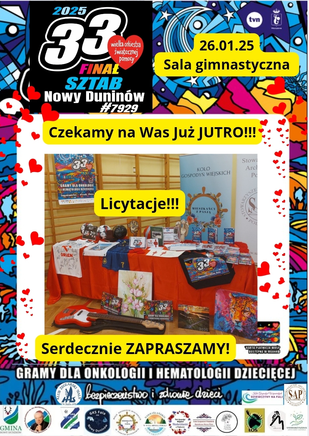 To był już 33. Finał WOŚP na świecie, ale pierwszy u nas, w naszej gminie, w naszej szkole! Szefem sztabu 7929 w Nowym Duninowie była nasza Pani Dyrektor Agnieszka Paradowska. Dzięki wsparciu wielu organizacji gminnych, 26 stycznia 2025 roku razem działaliśmy w słusznej sprawie. Wspólnie zbieraliśmy fundusze, by wspierać rozwój nowoczesnych technologii w służbie zdrowia!