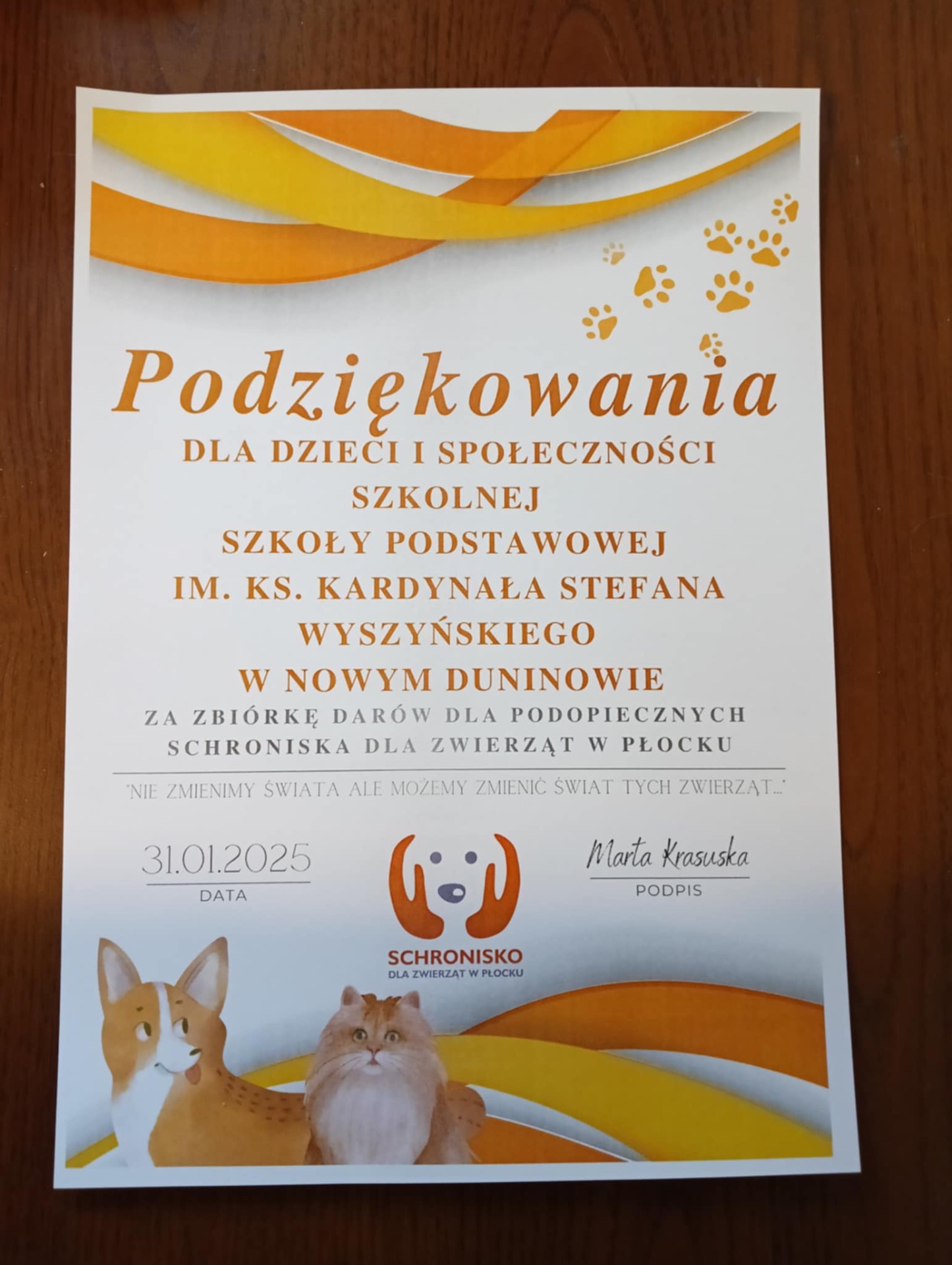 Bezdomne zwierzęta często nie mają szans na normalne życie bez wsparcia ludzi. Schroniska, mimo ogromnej pracy i zaangażowania pracowników oraz wolontariuszy, często borykają się z brakami w zaopatrzeniu. Dlatego nasza szkoła, by wesprzeć schronisko w Płocku, zorganizowała zbiórkę karmy, przysmaków, zabawek i innych potrzebnych rzeczy dla psów i kotów.