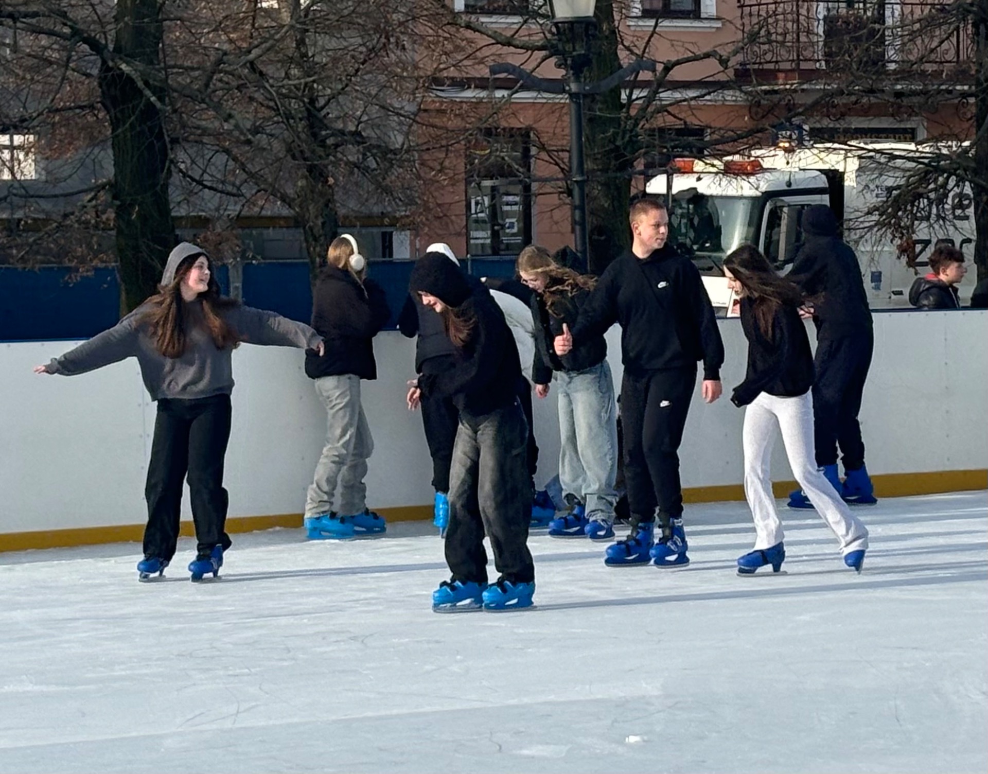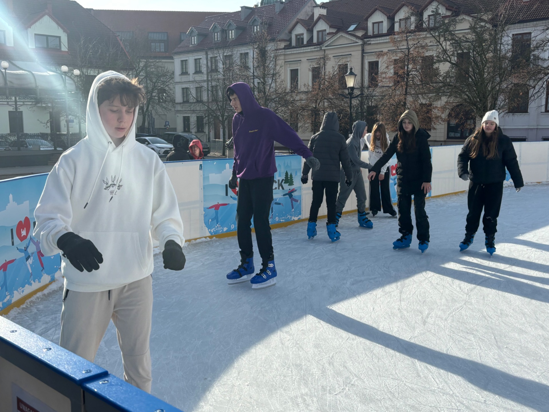 Uczniowie klas 7 mieli możliwość doskonalenia swoich umiejętności łyżwiarskich i aktywnego spędzania czasu.