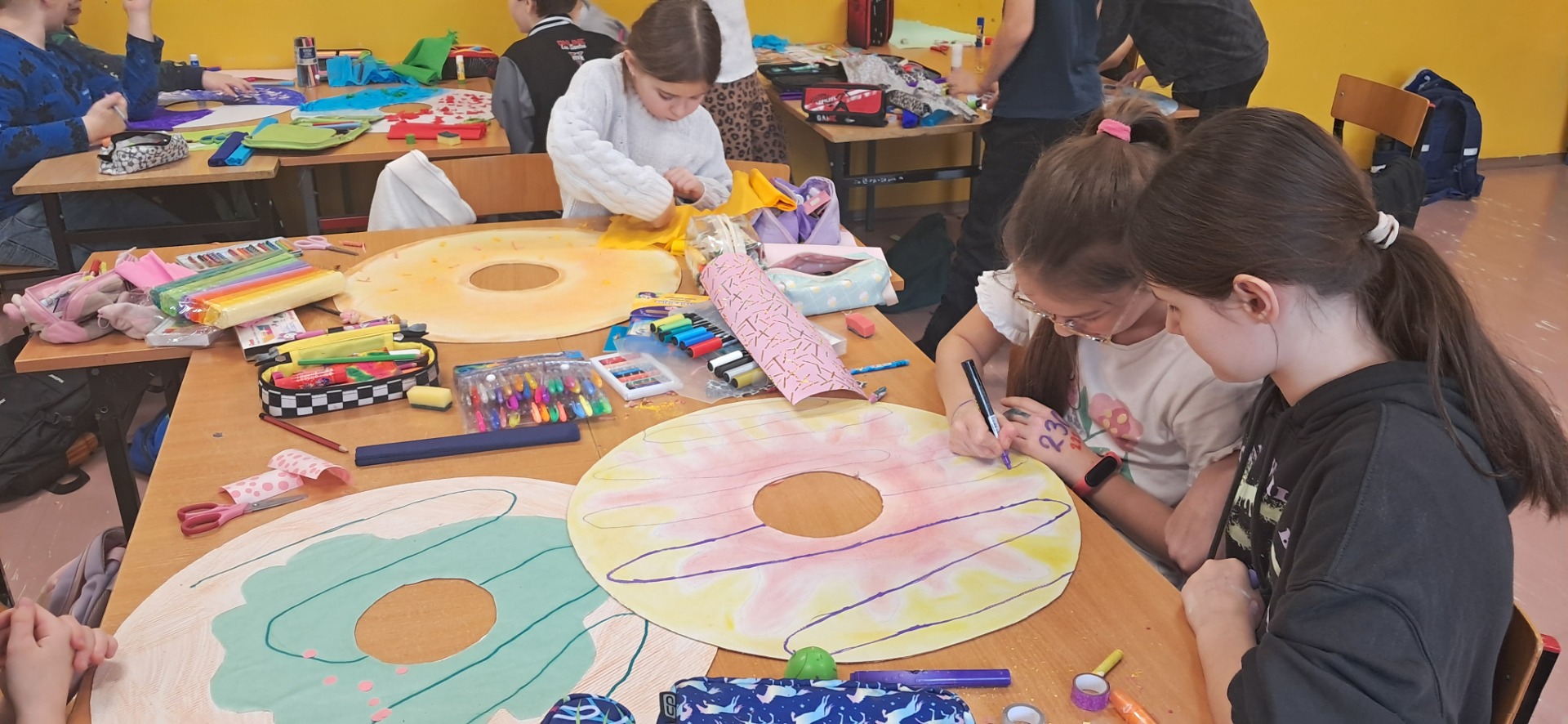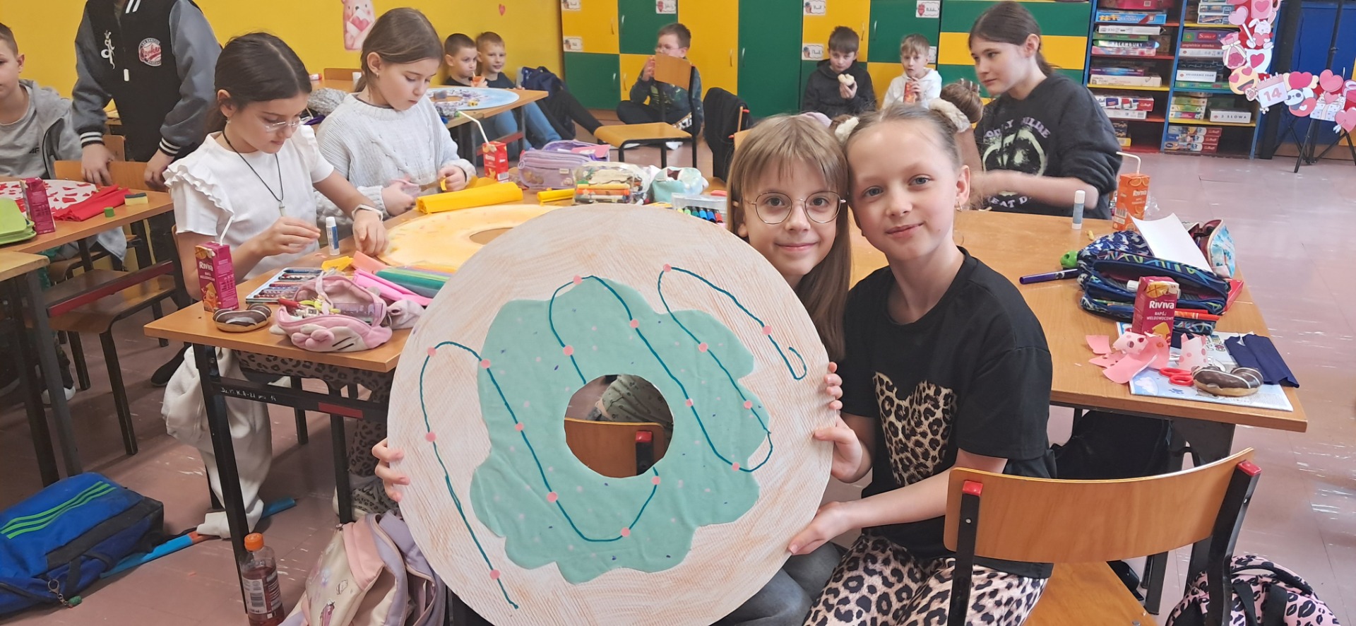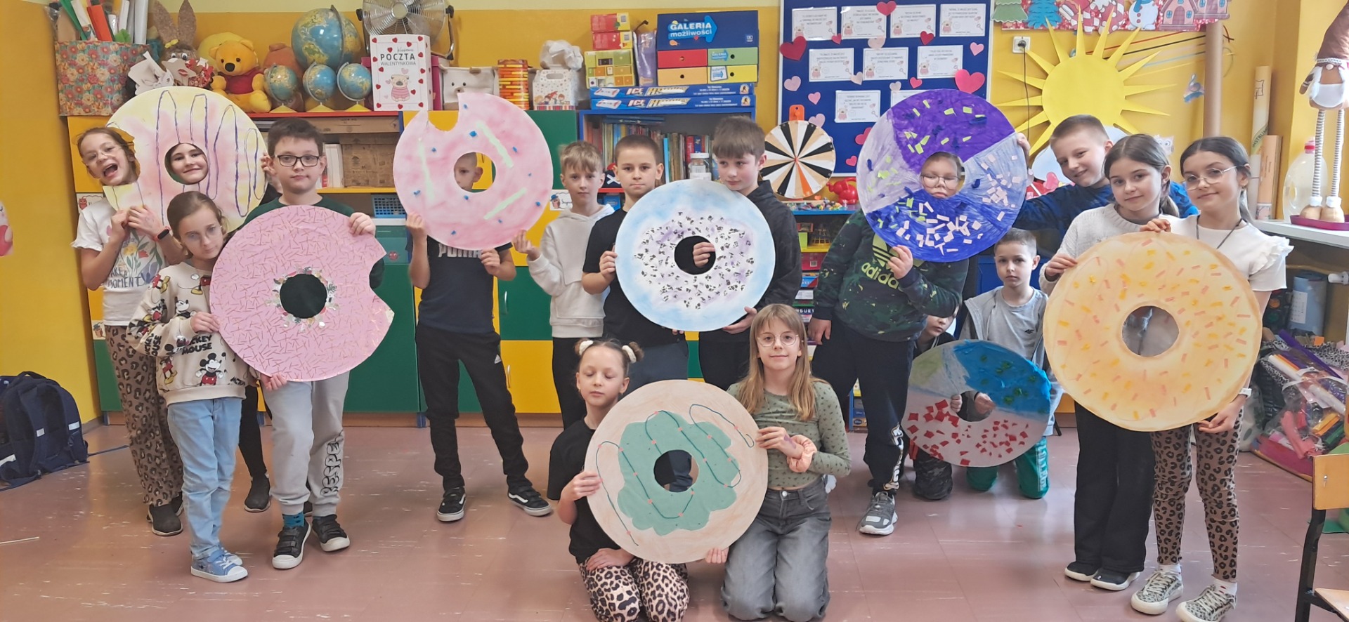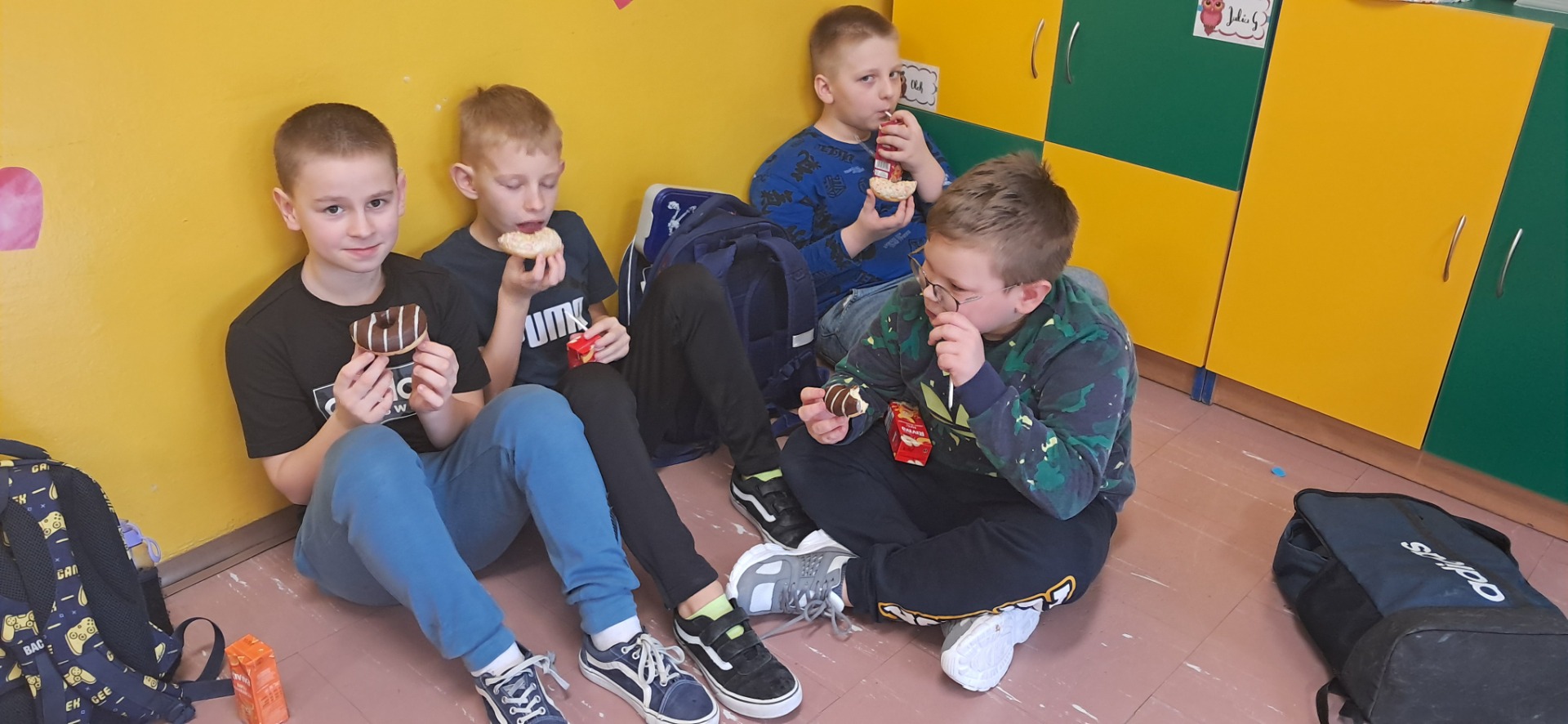 Dzisiejszy dzień wykorzystaliśmy bardzo kreatywnie i pracowicie. Uczniowie III klasy wykonali własne pączki/donuty, z ulubioną polewą czy posypką. Przekąski są piękne.