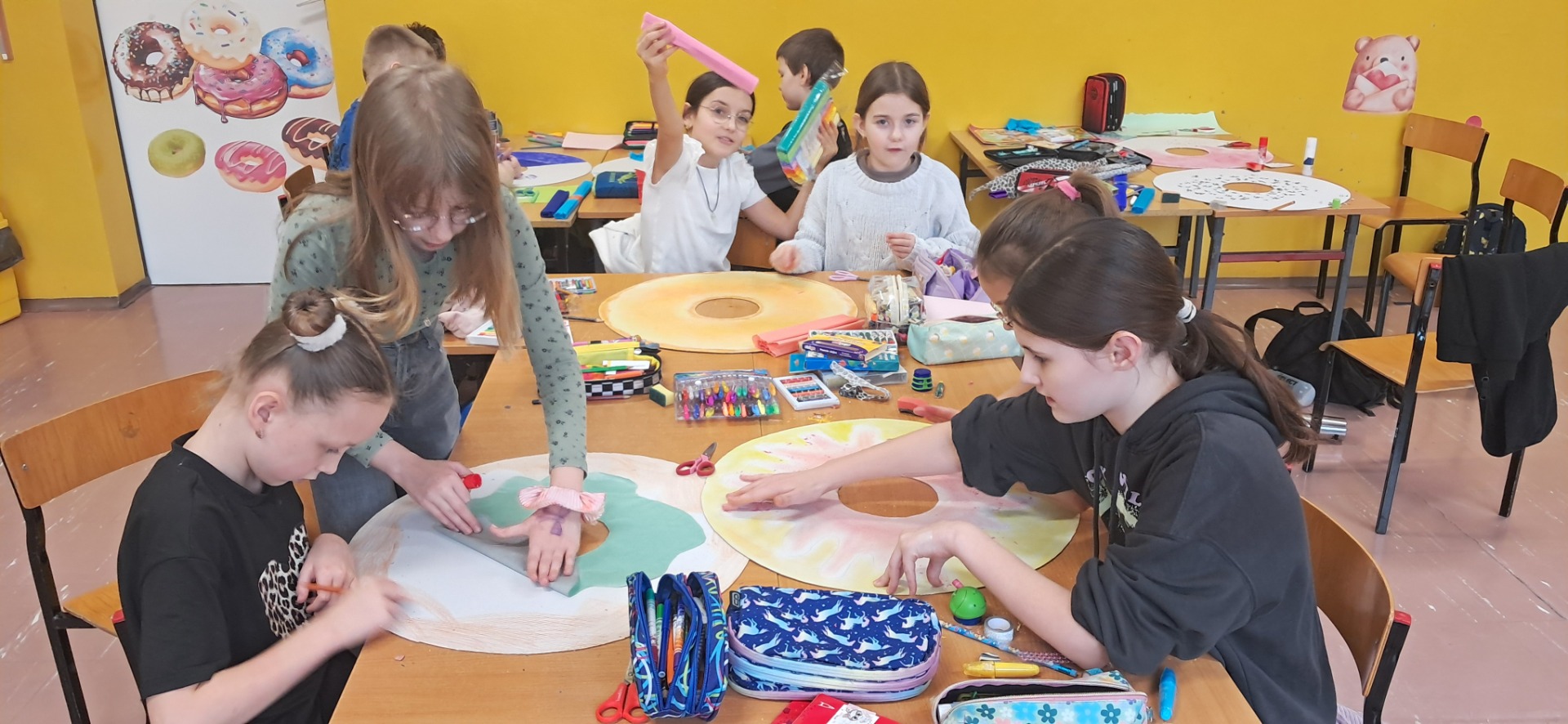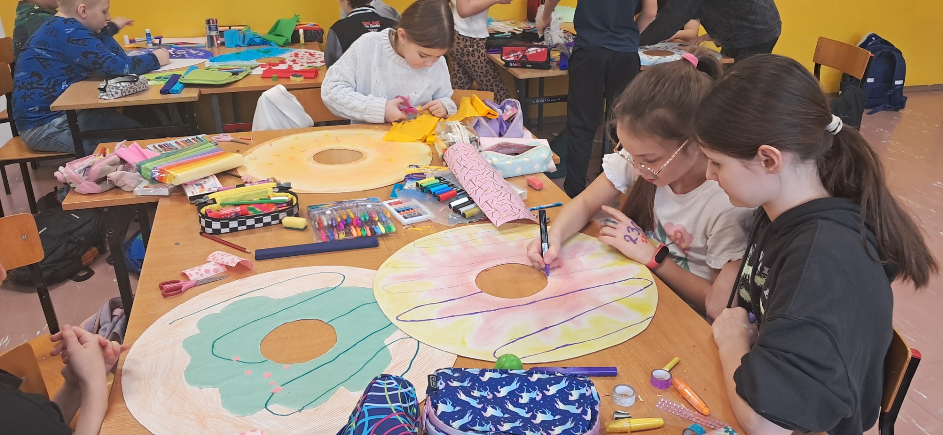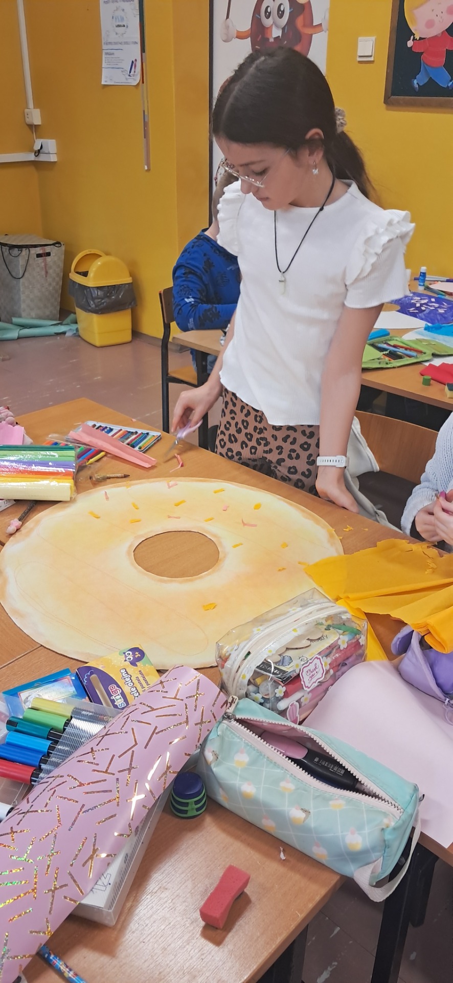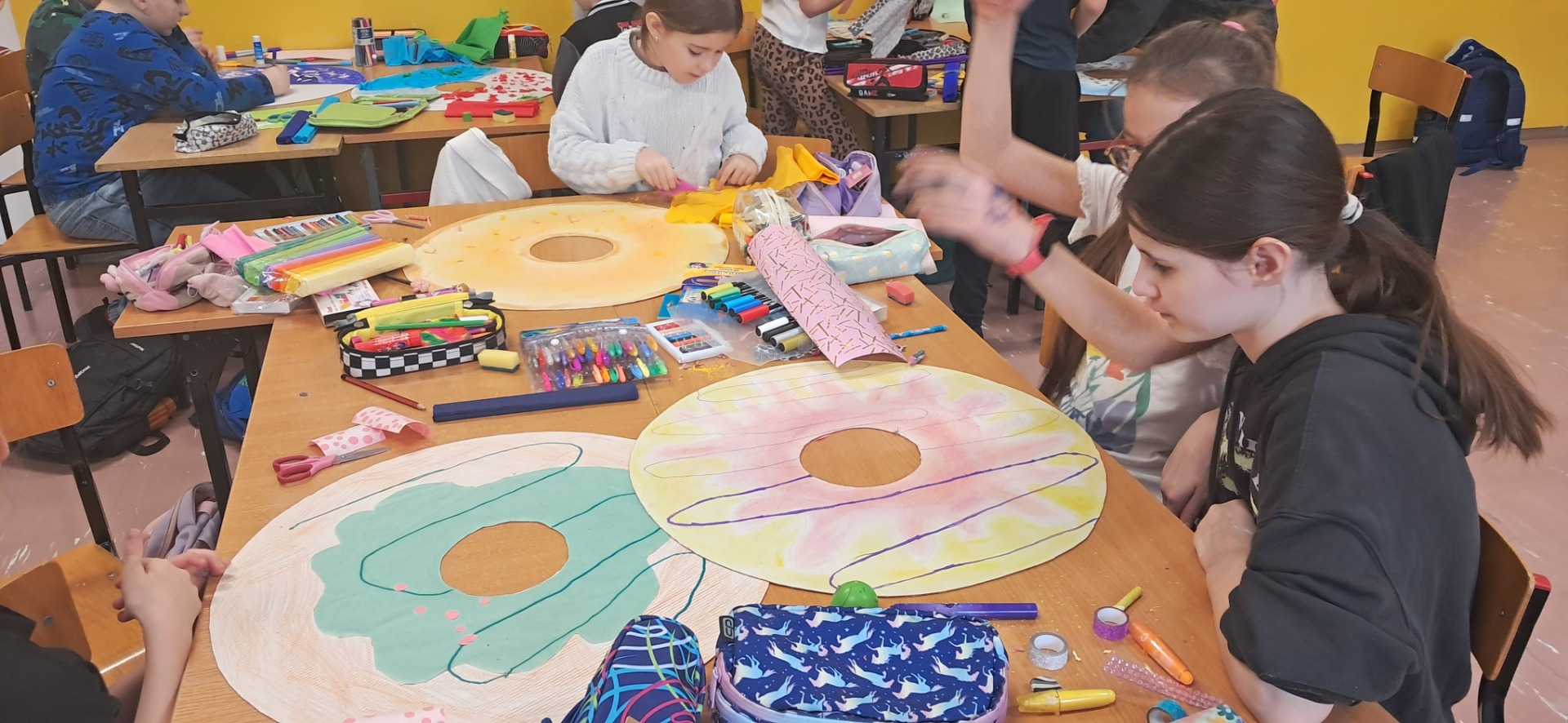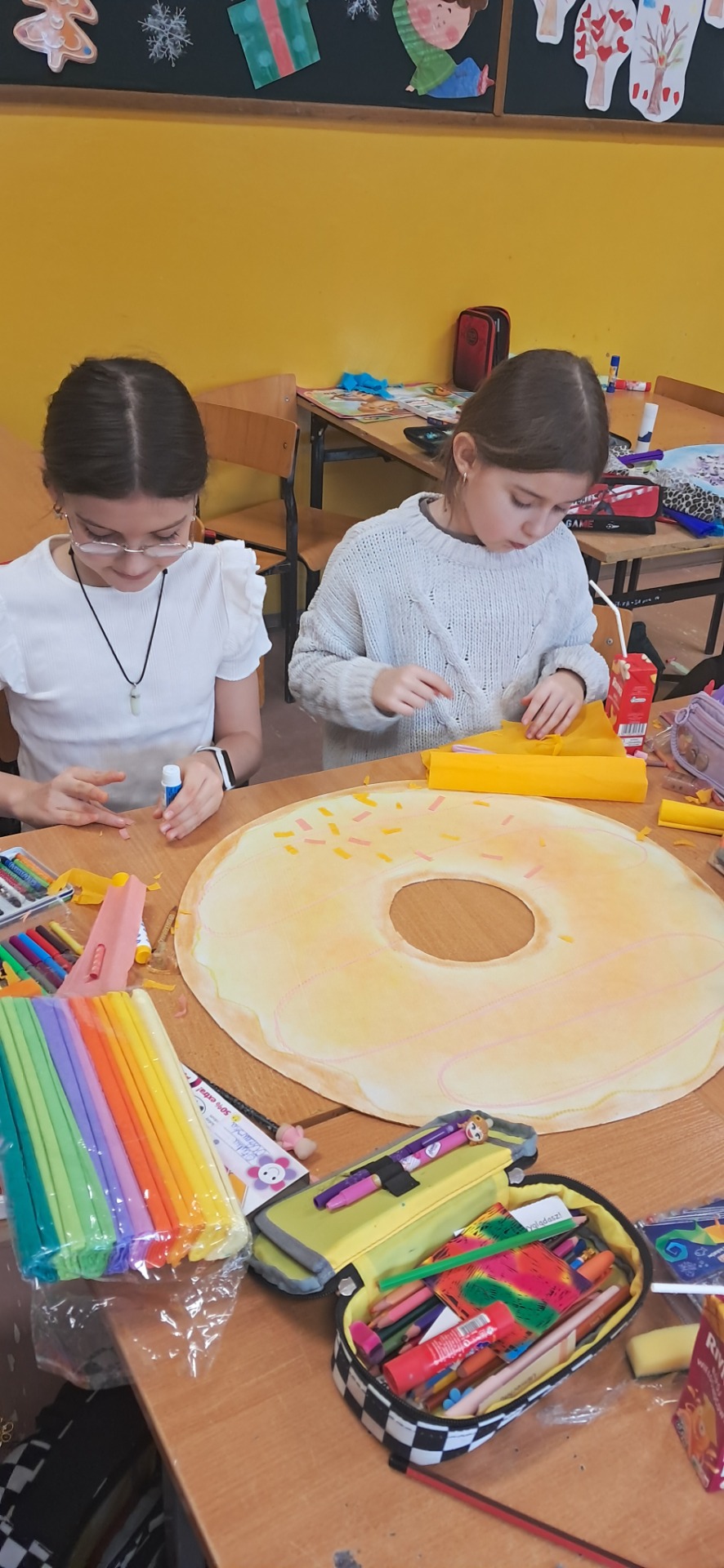 Dzisiejszy dzień wykorzystaliśmy bardzo kreatywnie i pracowicie. Uczniowie III klasy wykonali własne pączki/donuty, z ulubioną polewą czy posypką. Przekąski są piękne.