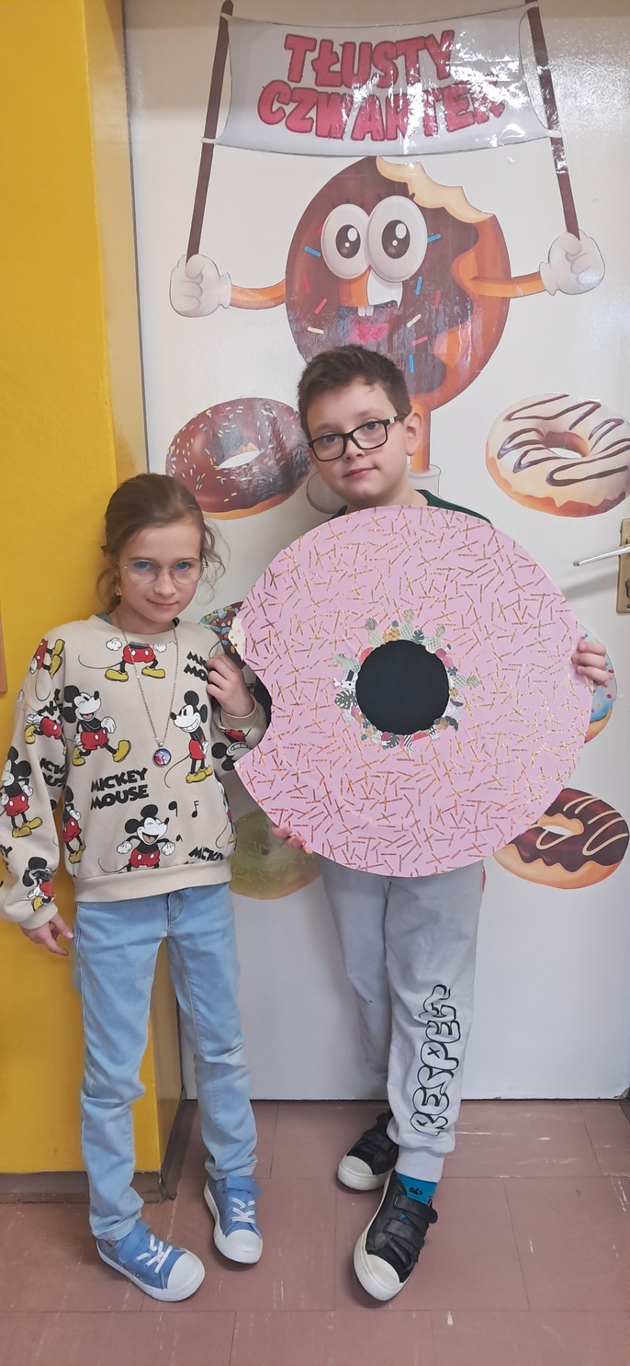 Podtrzymaliśmy też tradycję, każdy otrzymał po jednym pączku i soczek. Dziękujemy Rodzicom za organizację.