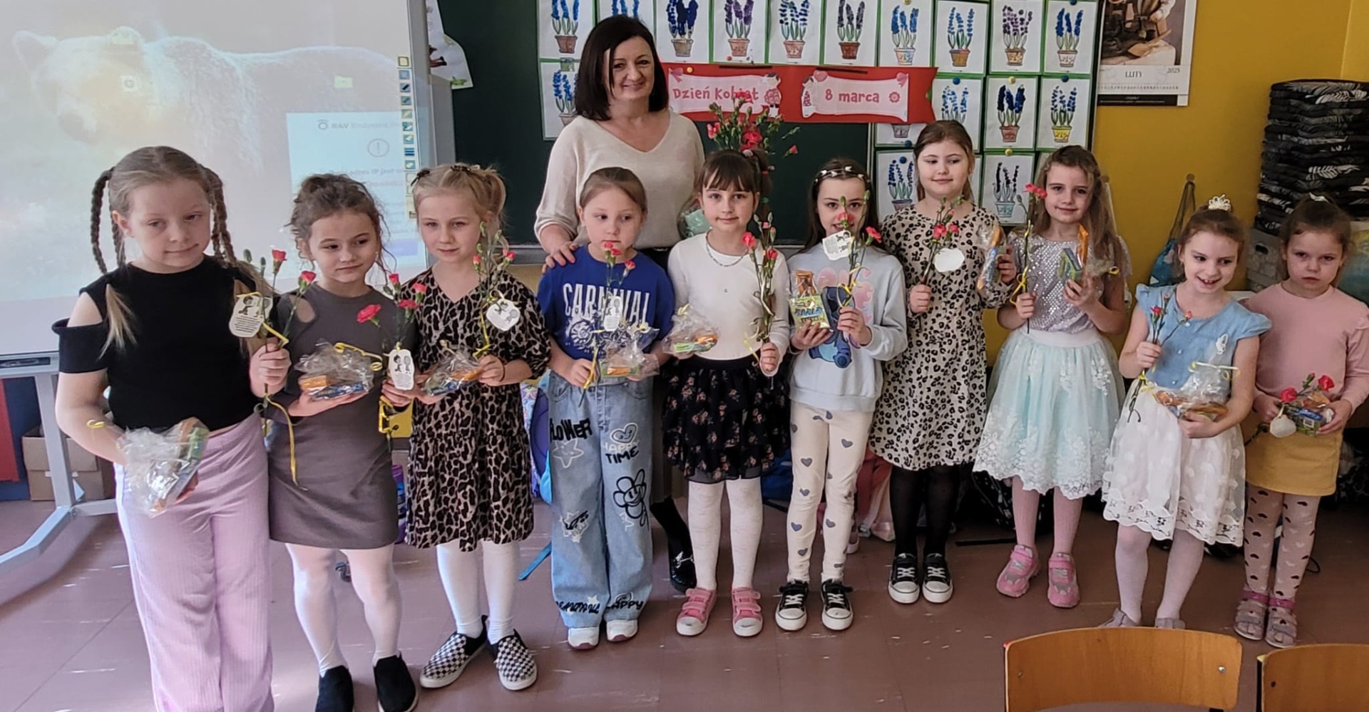 Jak co roku Dzień Kobiet świętowali najmłodsi uczniowie naszej szkoły. W przygotowanie klasowych uroczystości zaangażowali się wychowawcy i rodzice. Były życzenia , symboliczne upominki i słodkie poczęstunki. To wspólne świętowanie dało dzieciom dużo radości, a dziewczynki wyglądały dziś przepięknie w promieniach wiosennego słońca.