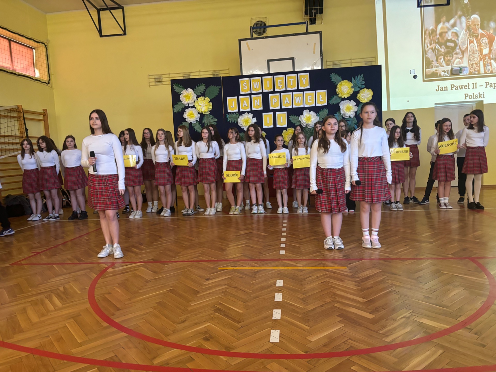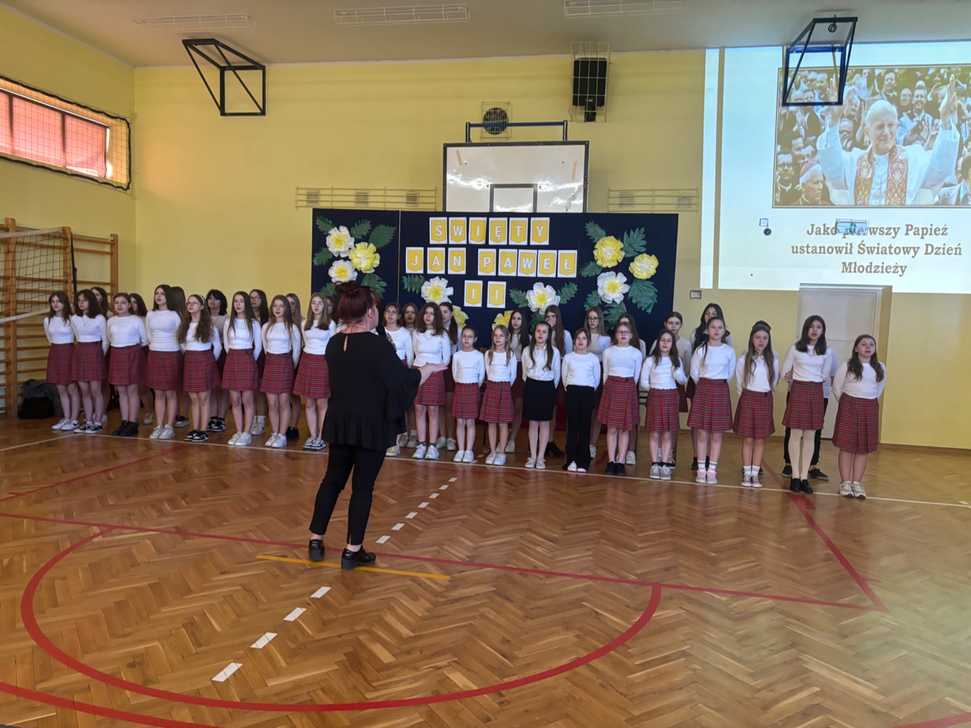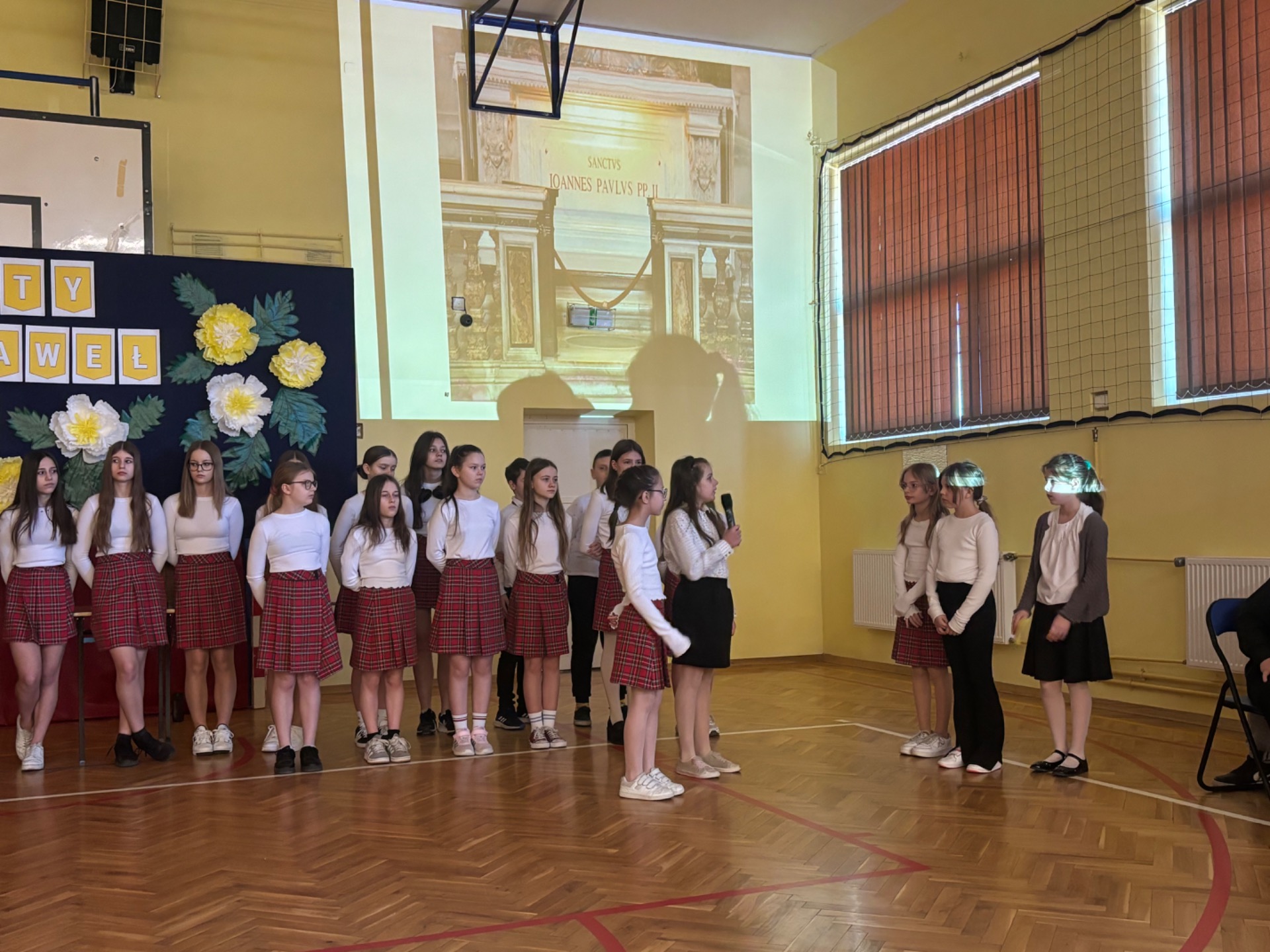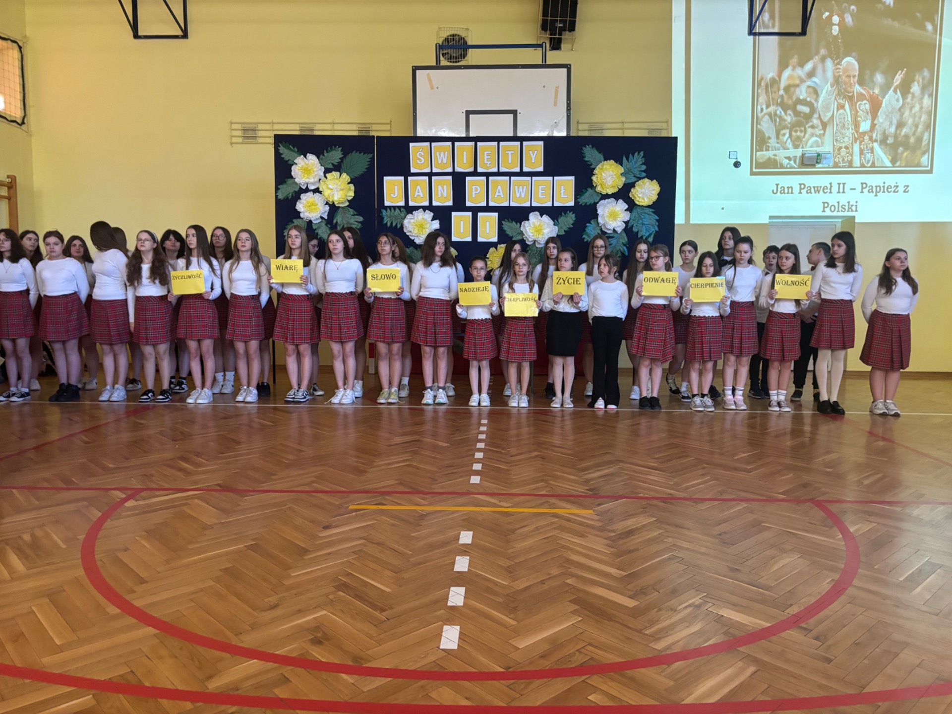 Dlatego postanowiliśmy w naszej szkole zainteresować uczniów Jego osobą, aby na nowo odkrywać – wspólnie z uczniami, rodzicami i wszystkimi chętnymi z naszej lokalnej , małej społeczności – nauczanie Jana Pawła II .